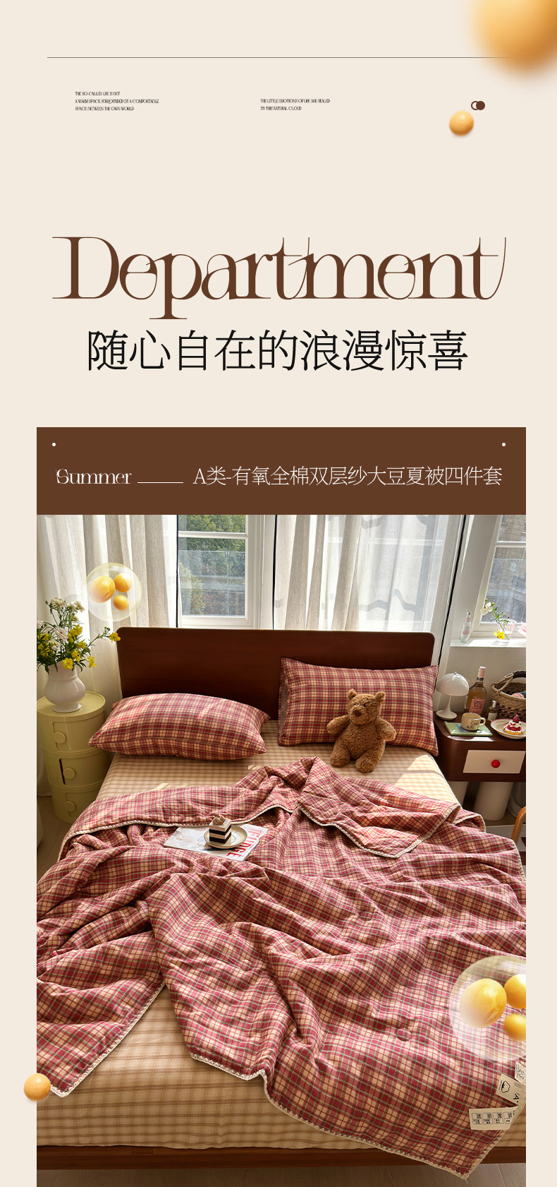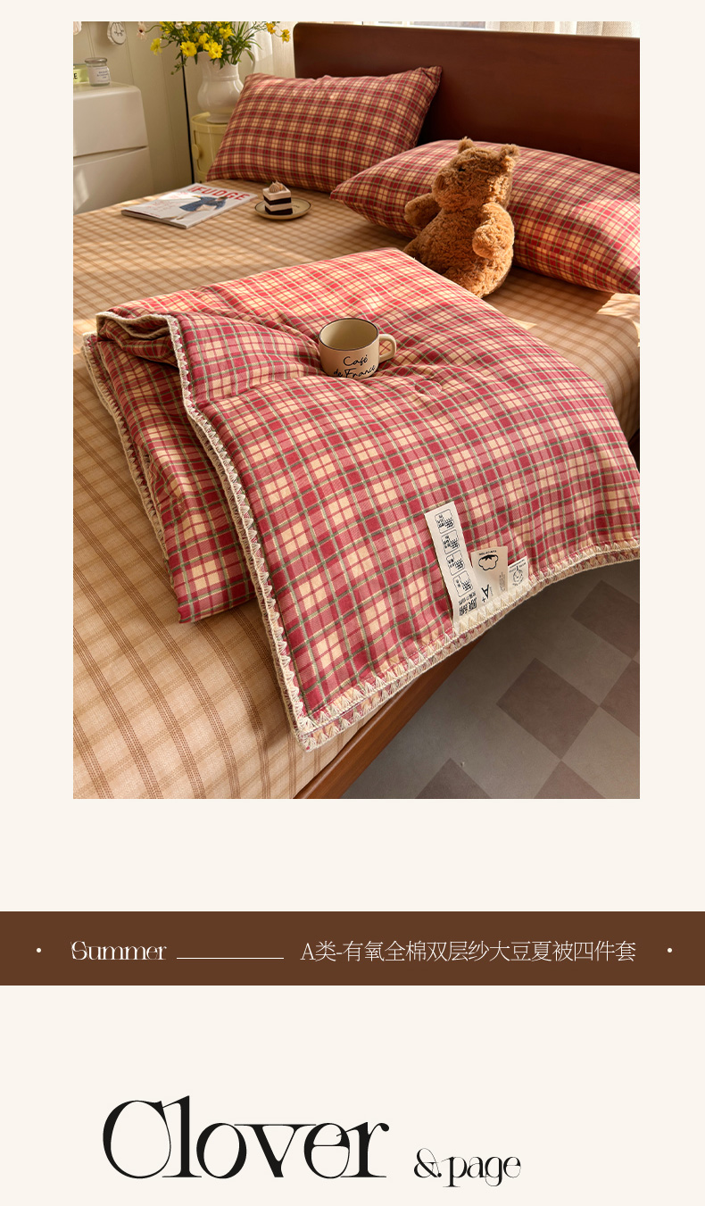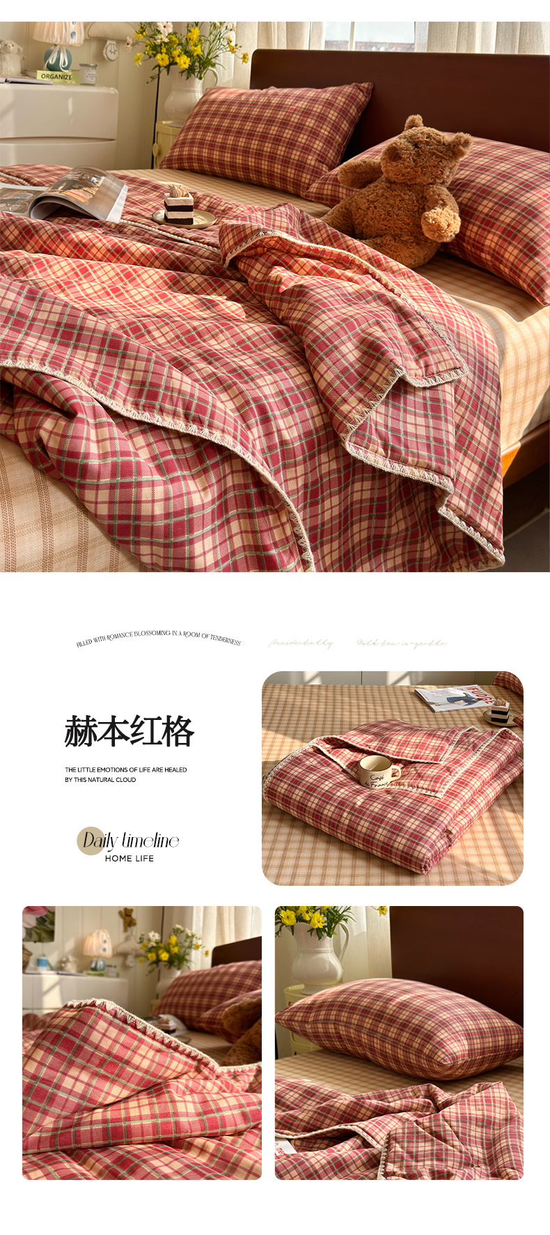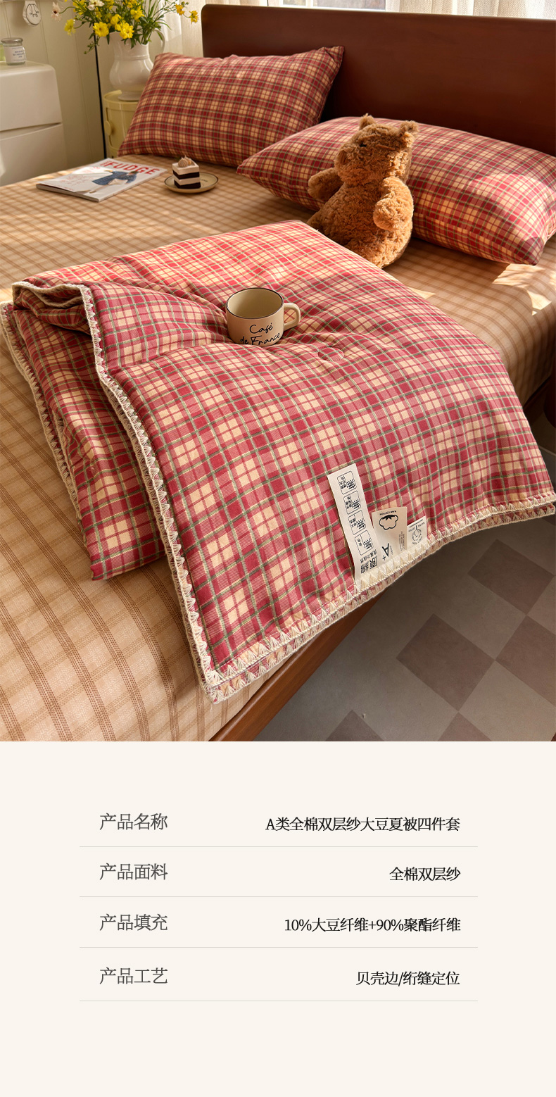 当前位置: 91家纺网 > 商品网购 > 床品套件 > 四件套 > 夏被四件套 > 一加一 2025新款A类母婴级有氧全棉双层纱大豆纯棉夏凉被空调被四件套 赫本红格