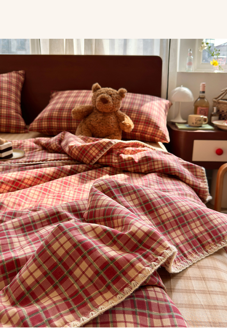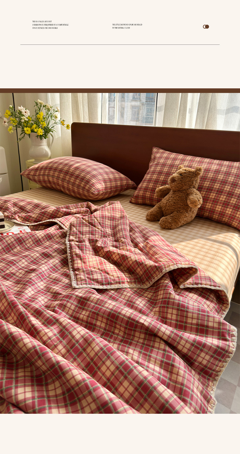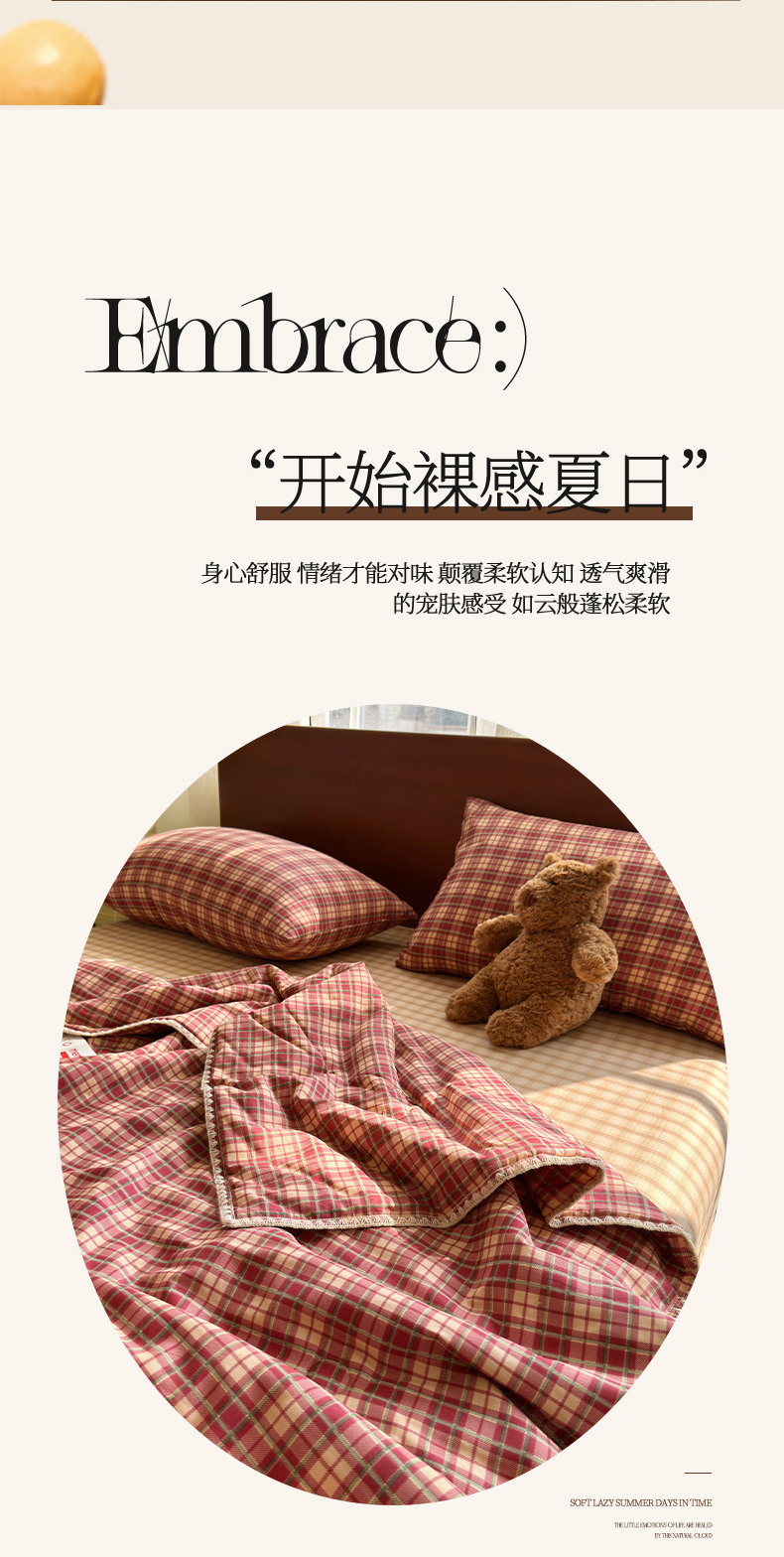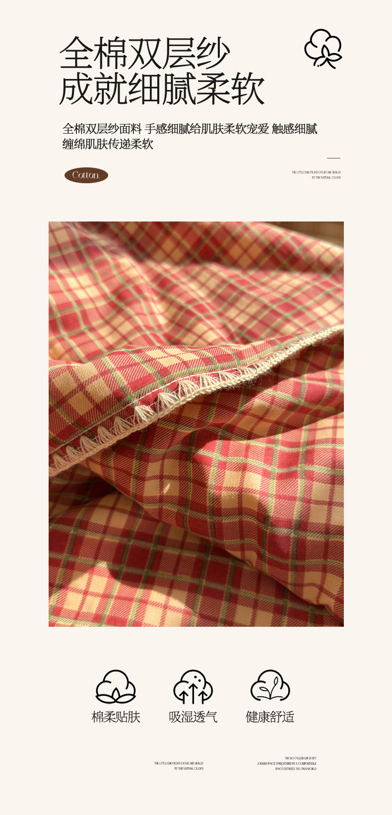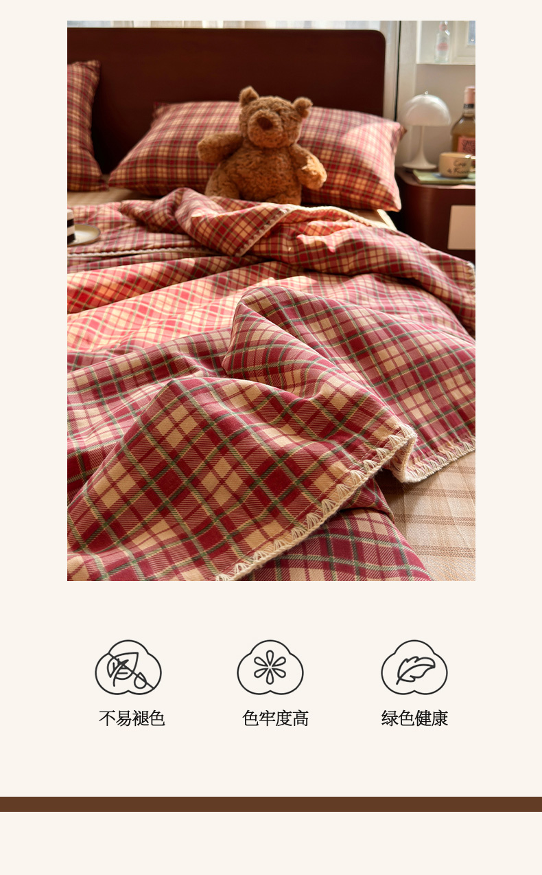 当前位置: 91家纺网 > 商品网购 > 床品套件 > 四件套 > 夏被四件套 > 一加一 2025新款A类母婴级有氧全棉双层纱大豆纯棉夏凉被空调被四件套 赫本红格