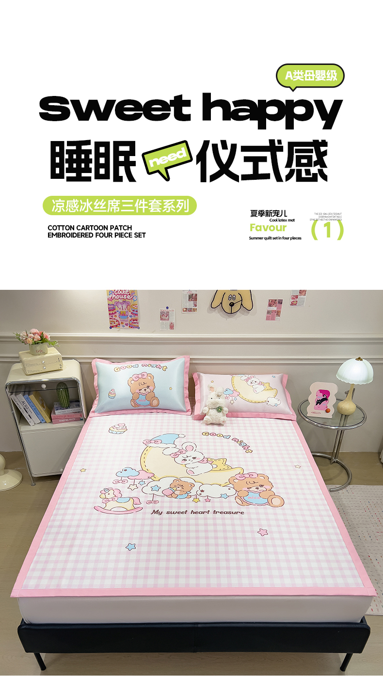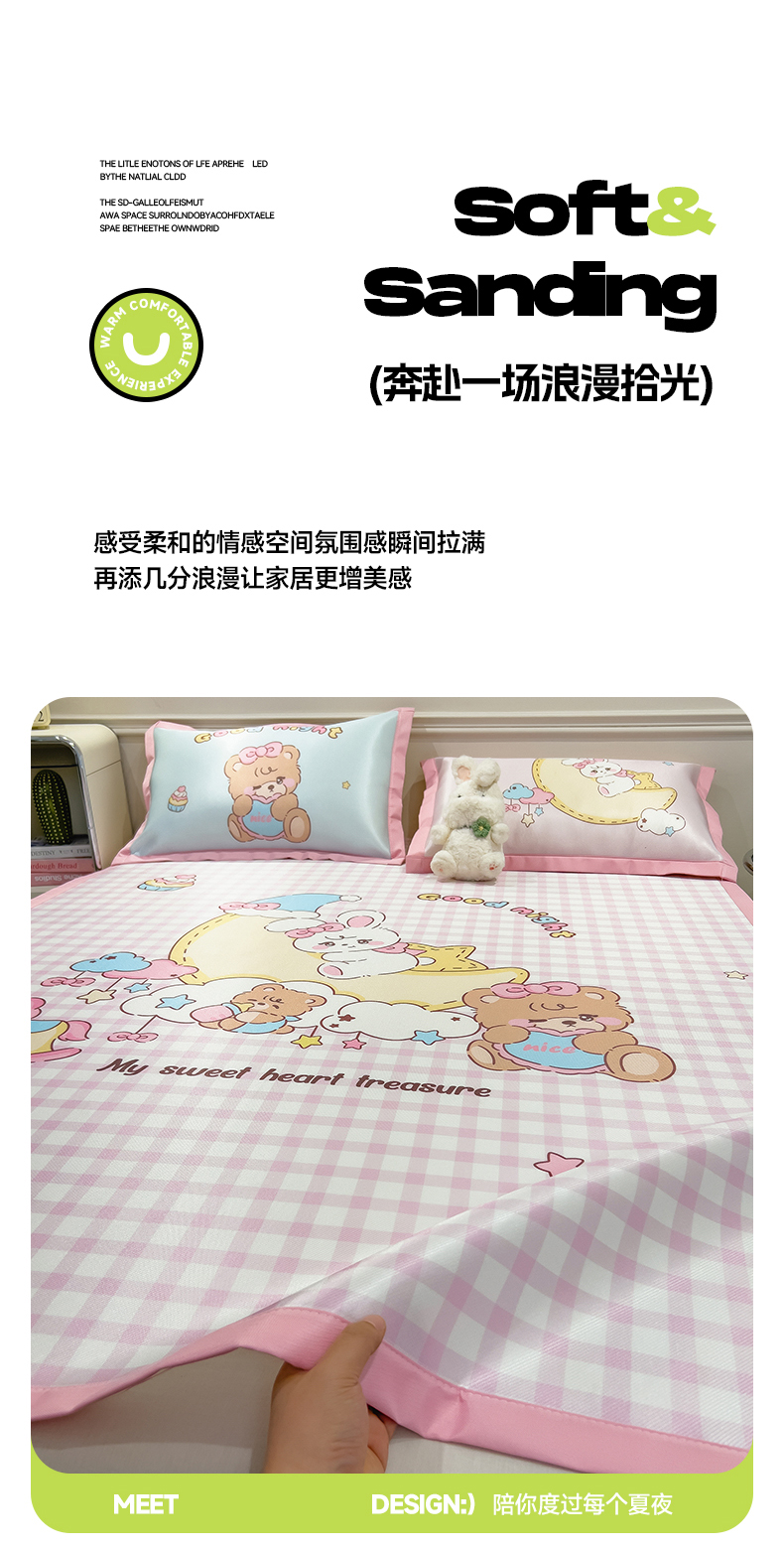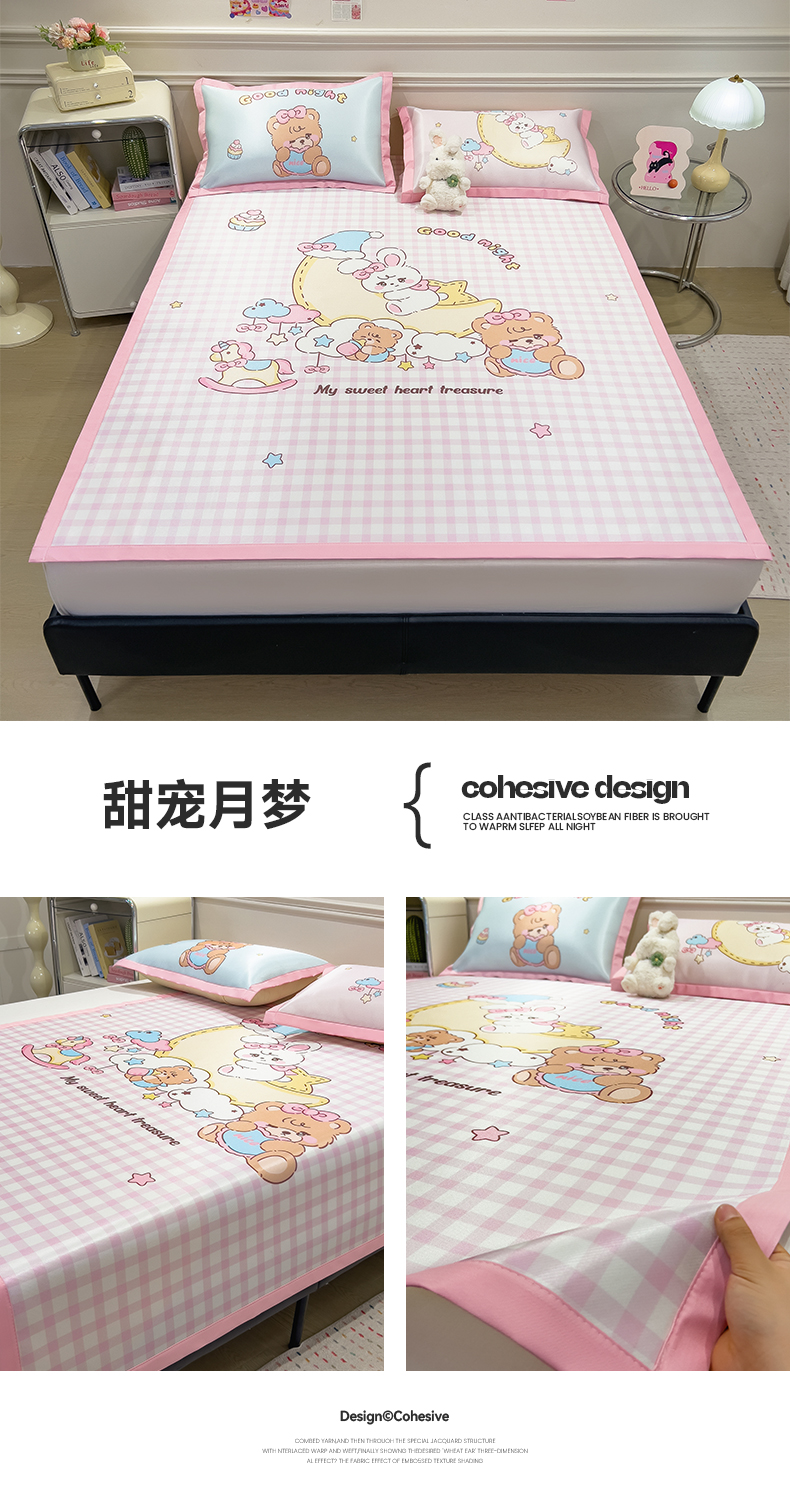 商品名称:摩妮卡 2025新款A类大版碳光冰丝席 三件套 甜宠月梦