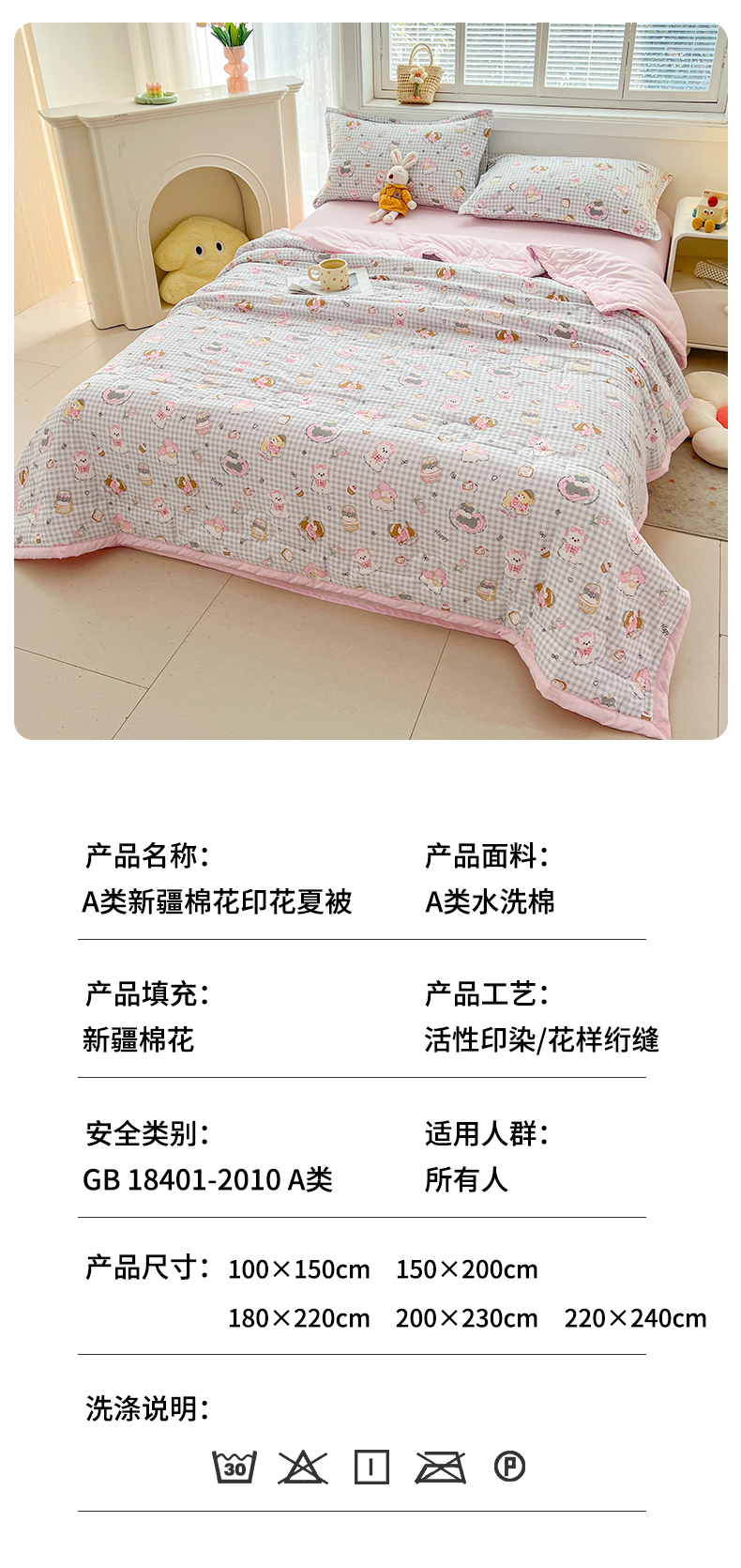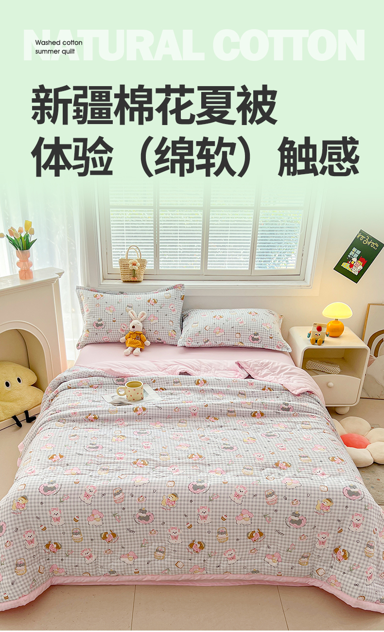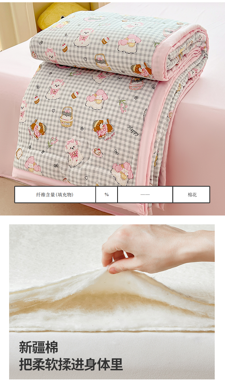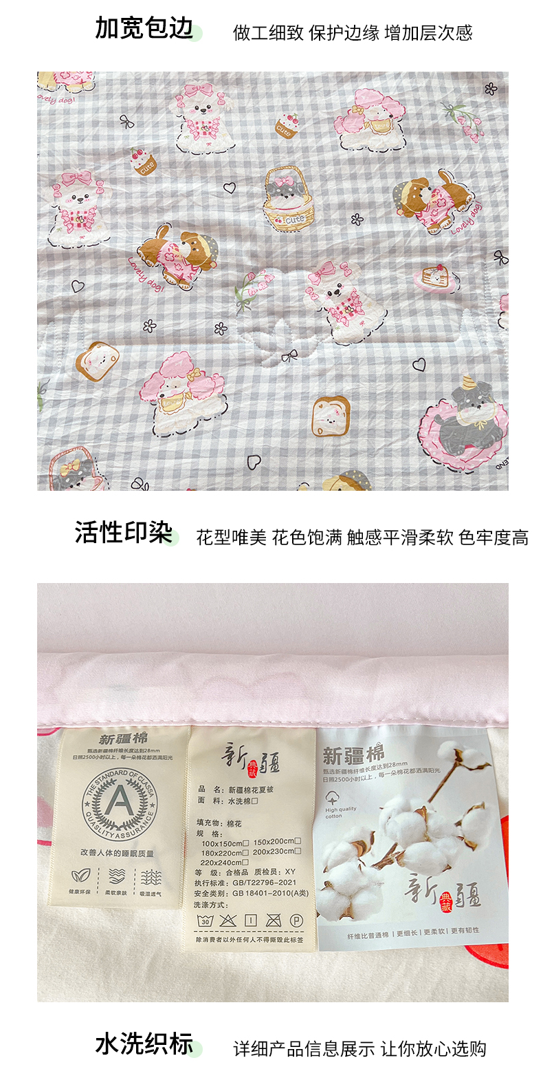商品名称:西域种棉人·千百笠 2025新款A类新疆棉花夏凉被加宽包边水洗棉卡通印花吸湿透气棉花夏被空调被 凌香 童趣