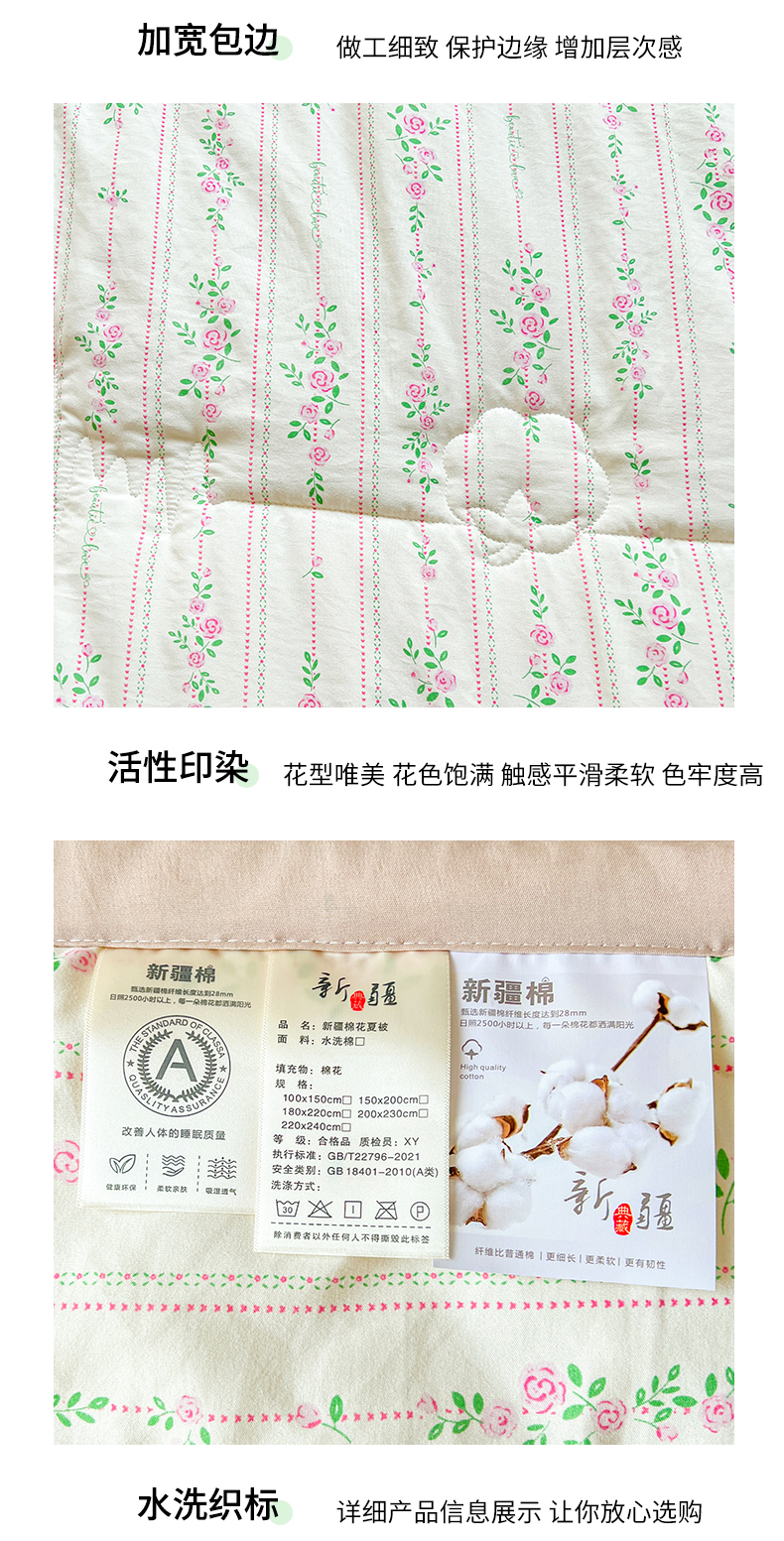 商品名称:西域种棉人·千百笠 2025新款A类新疆棉花夏凉被加宽包边水洗棉卡通印花吸湿透气棉花夏被空调被 凌香 紫藤花