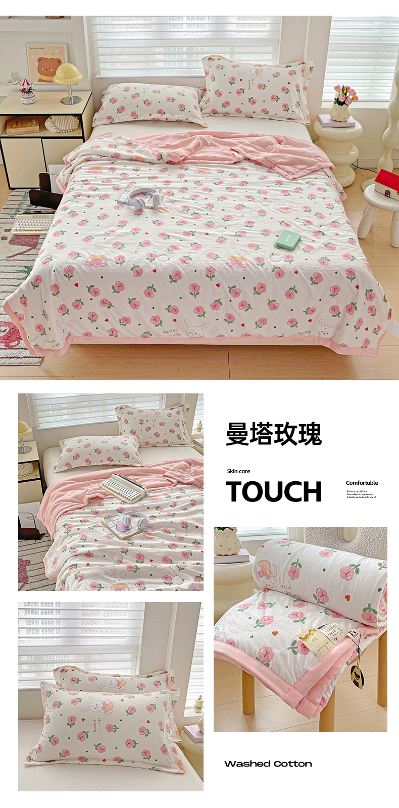 富艺隆 2025新款水洗棉印花夏被 曼塔玫瑰