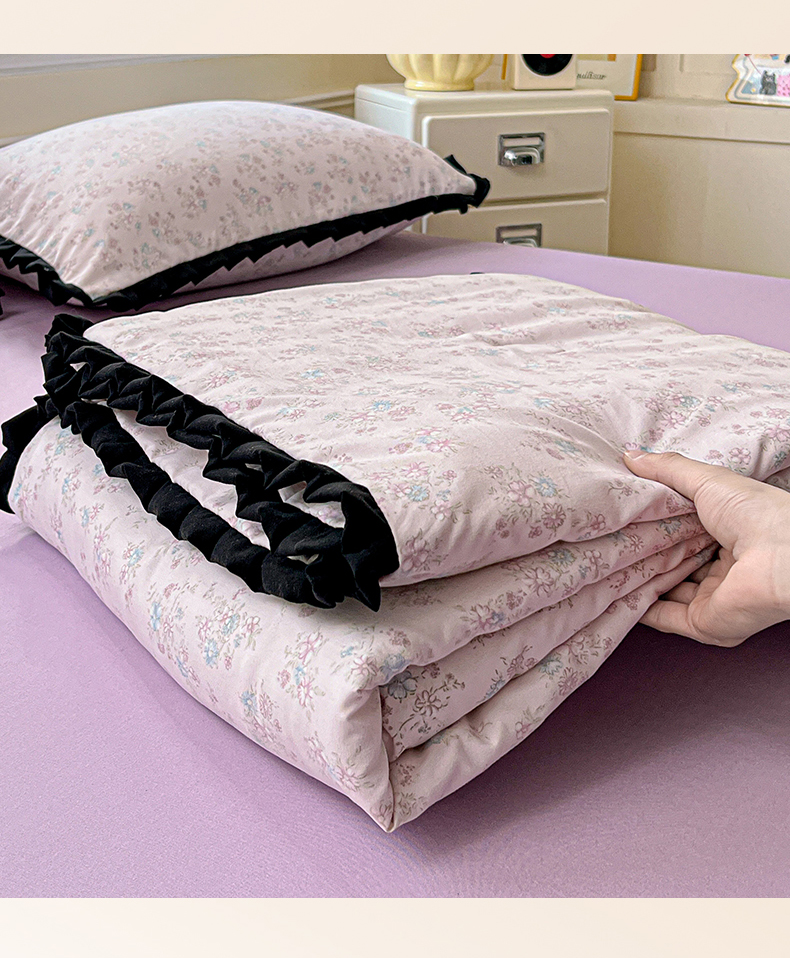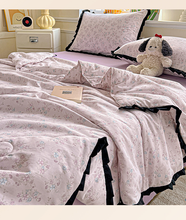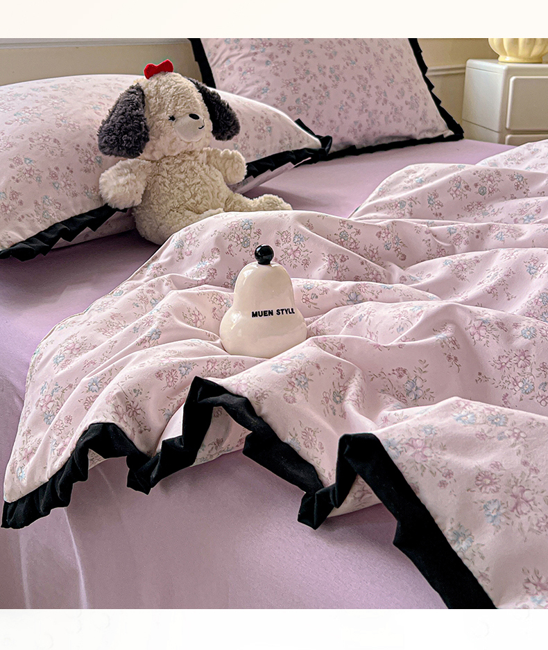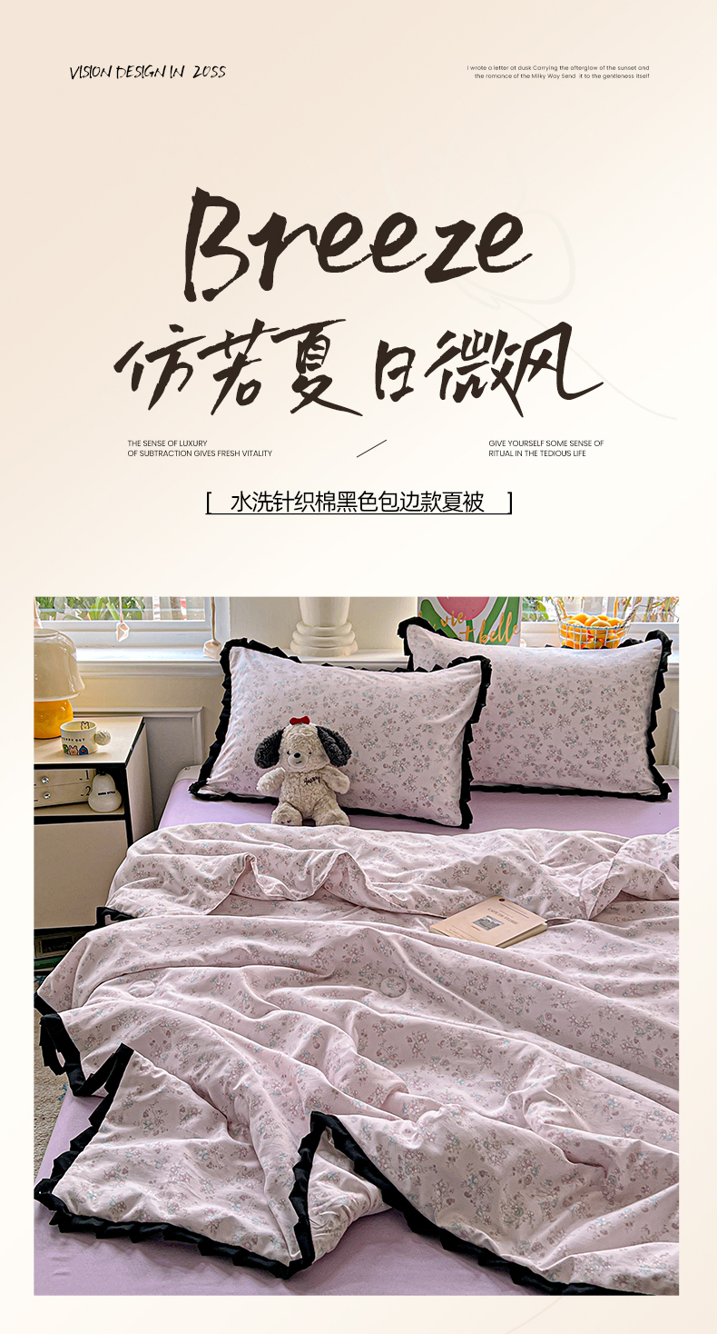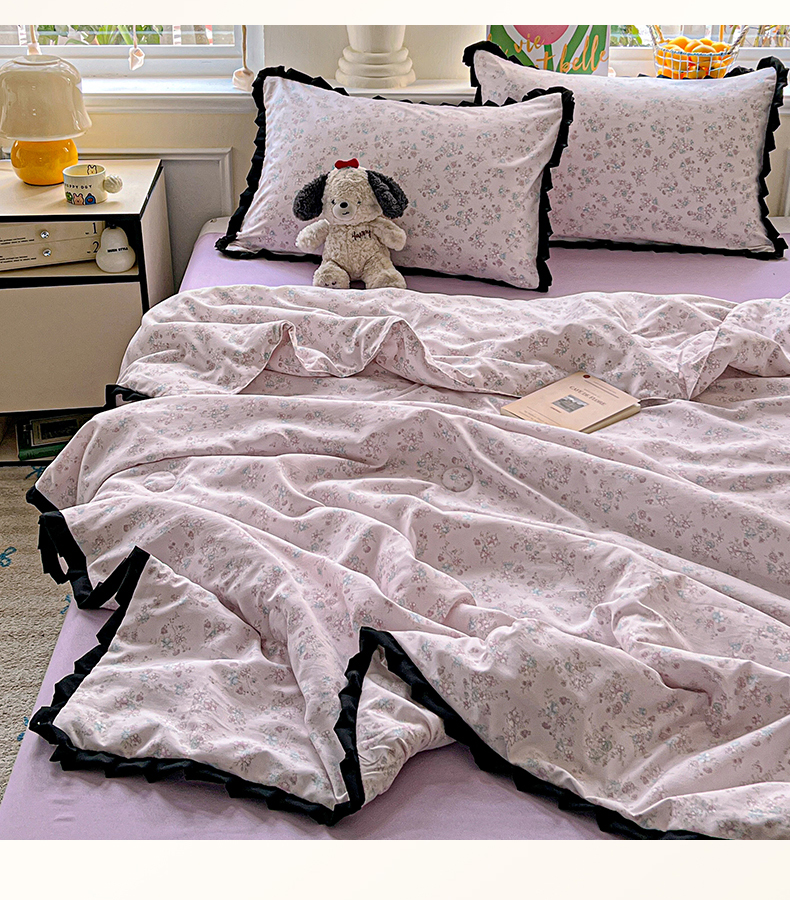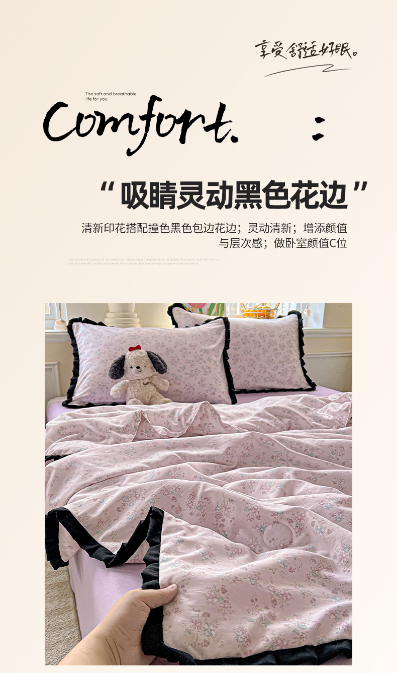 当前位置: 91家纺网 > 商品网购 > 床品套件 > 四件套 > 全棉普通四件套 > 妖妖家纺 2025新款有氧水洗糯糯公主风花边夏被四件套单夏被 花镜