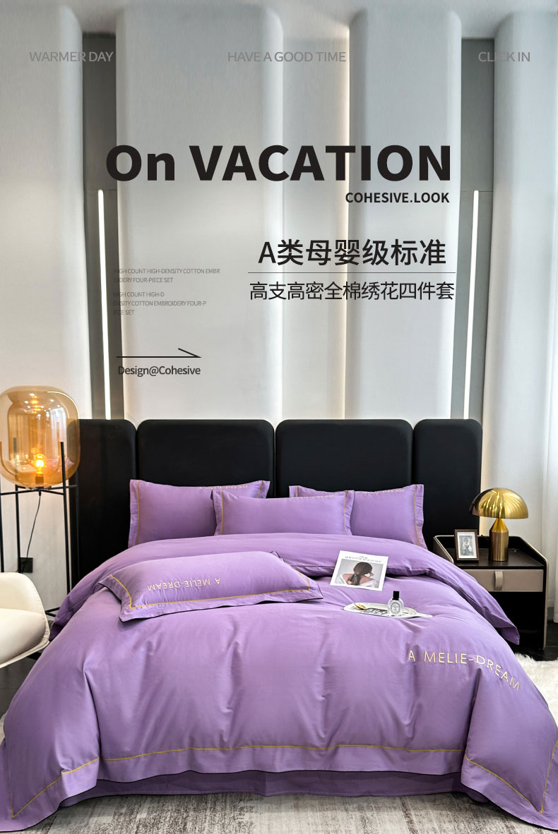 当前位置: 91家纺网 > 商品网购 > 床品套件 > 四件套 > 全棉普通四件套 > 宇彬家纺 2025新款直播热款13374全棉母婴级压线一字绣宽边枕套被套纯色滚边麻绳四件套贡缎新疆长绒缎新疆长绒 梦系列-曲雅紫