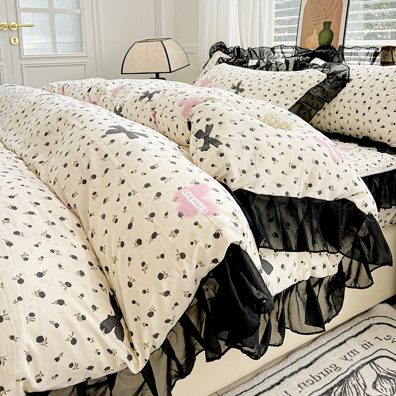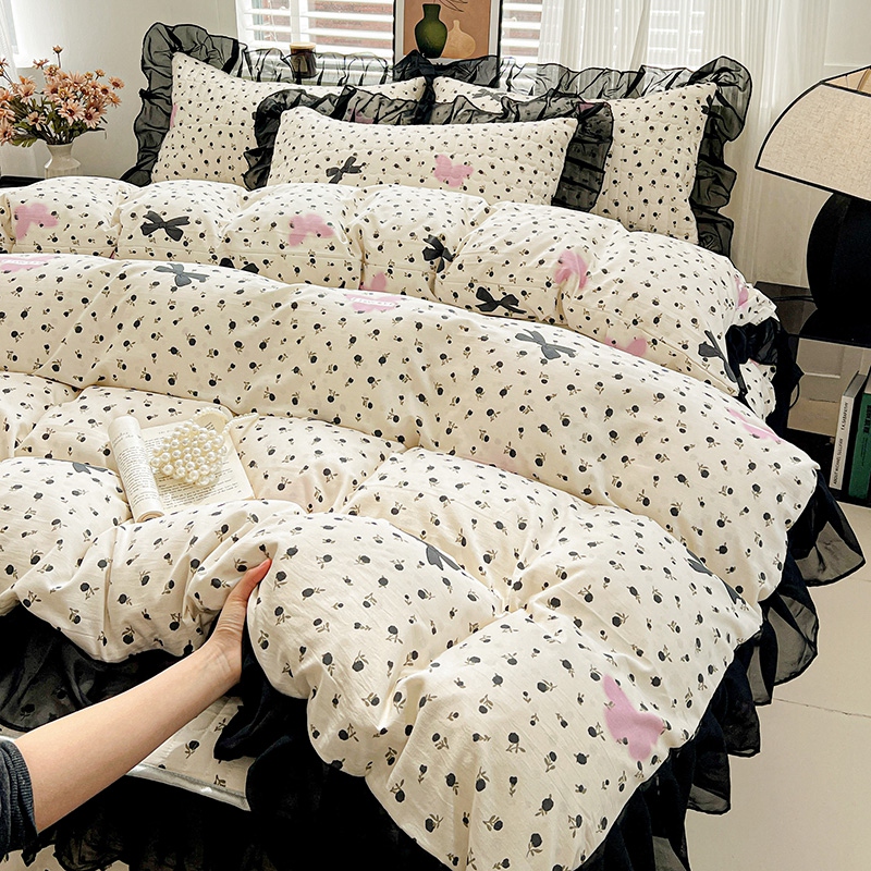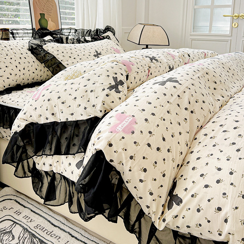 商品名称:艾橙家纺2025新款法式赫本风水洗棉印花雪纺花边单床笠 朵蔓花馨