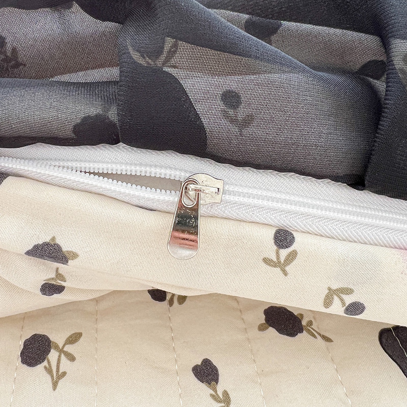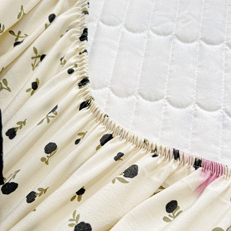 艾橙家纺2025新款法式赫本风水洗棉印花雪纺花边单床笠 朵蔓花馨