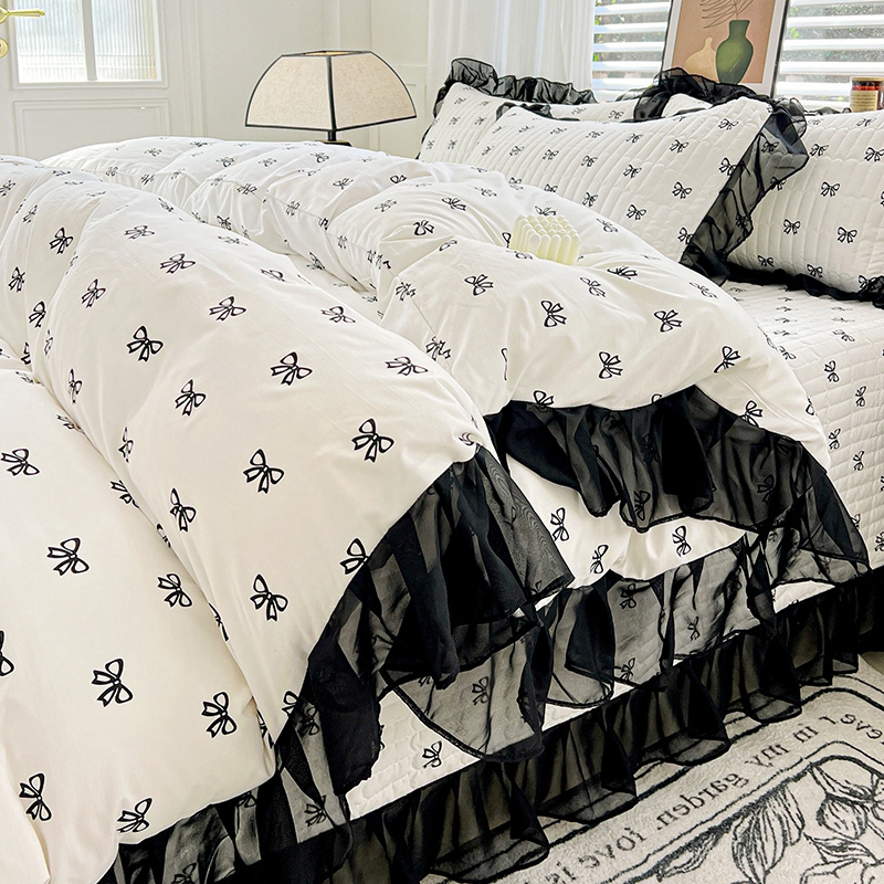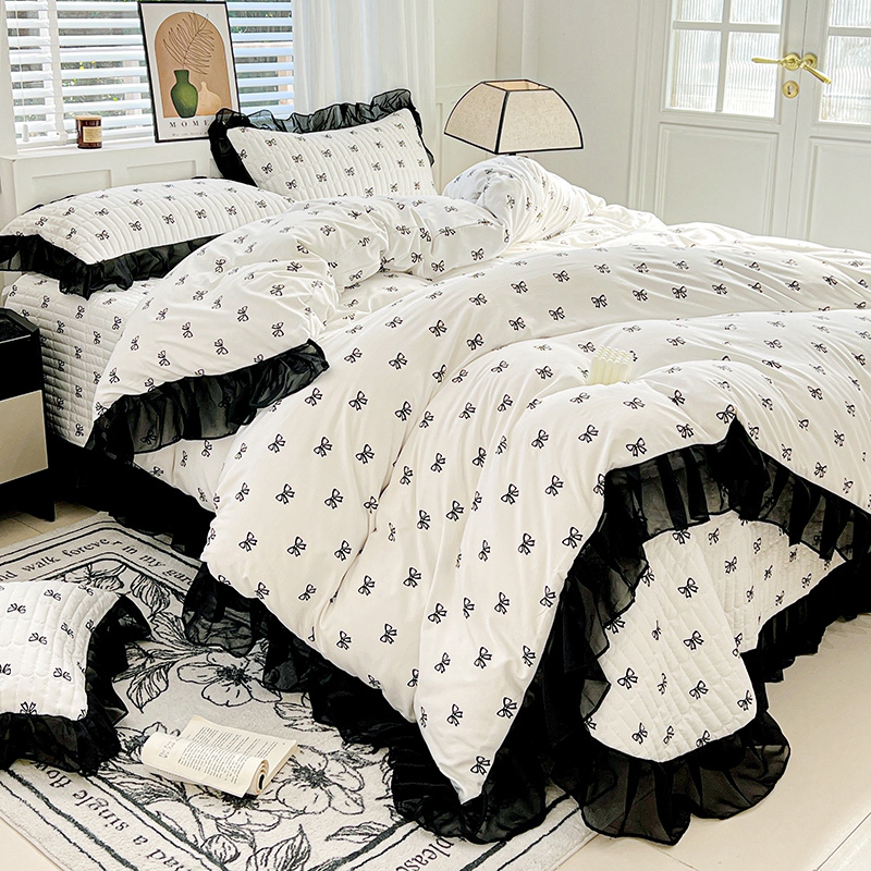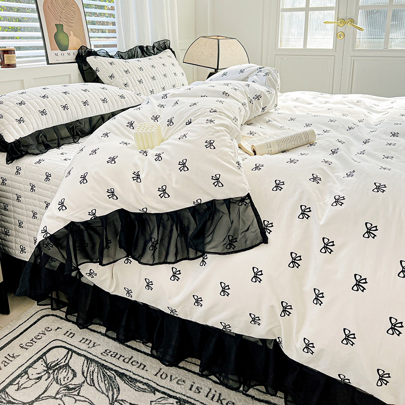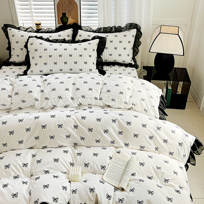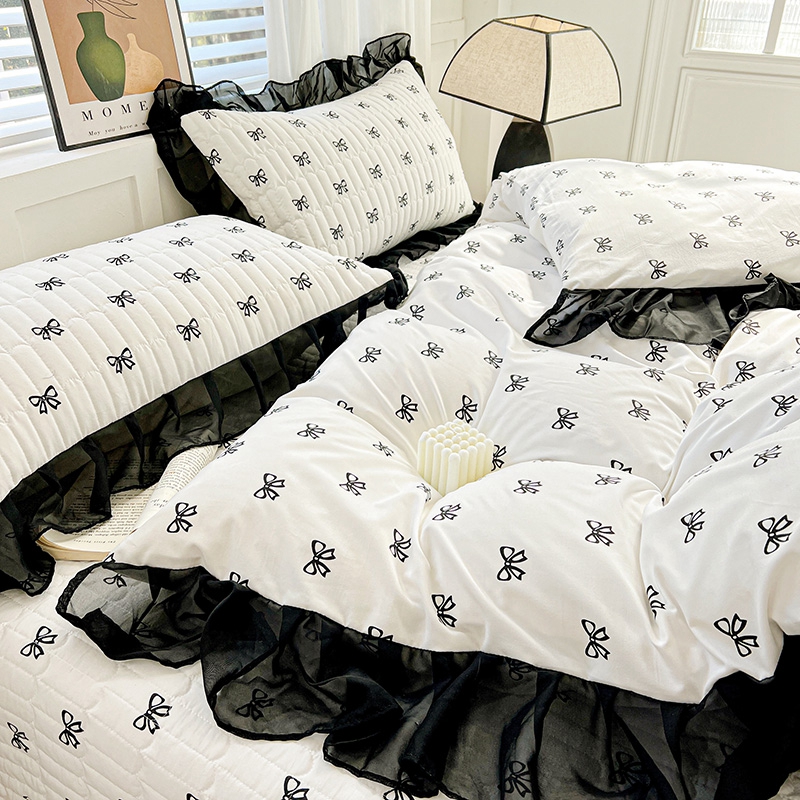 当前位置: 91家纺网 > 商品网购 > 床品套件 > 四件套 > 其它四件套 > 艾橙家纺2025新款法式赫本风水洗棉印花雪纺花边四件套 黑色蝴蝶结