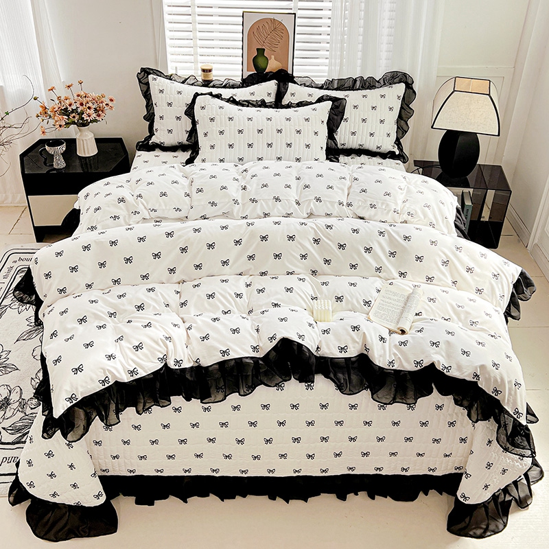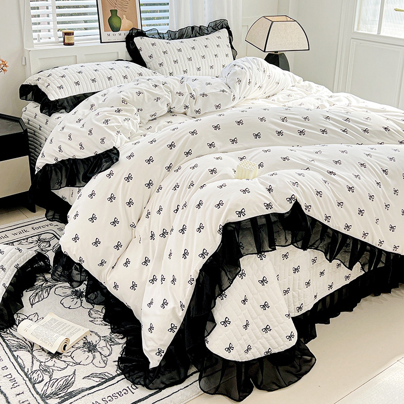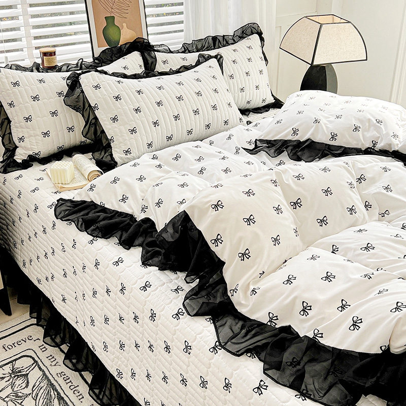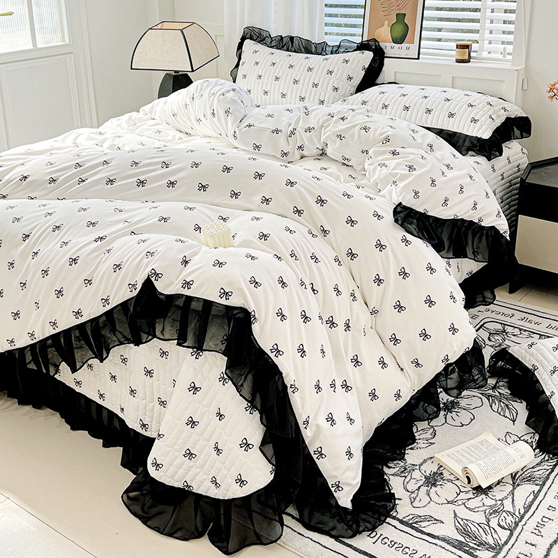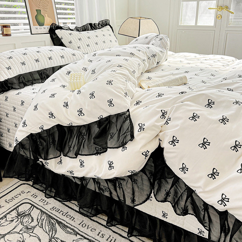 当前位置: 91家纺网 > 商品网购 > 床品套件 > 四件套 > 其它四件套 > 艾橙家纺2025新款法式赫本风水洗棉印花雪纺花边四件套 黑色蝴蝶结
