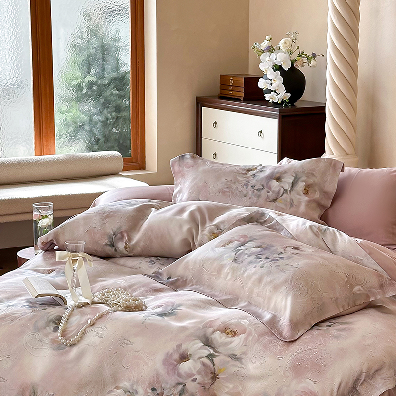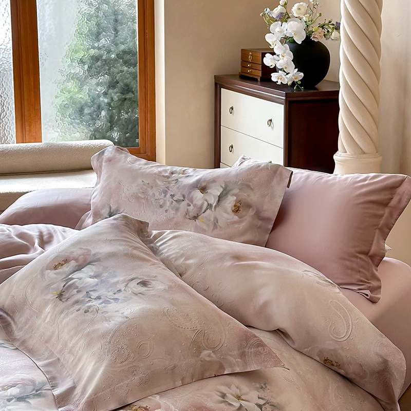 2025新款60S奥地利兰精天丝数码印花宽边压线系列四件套 奥菲娜-粉