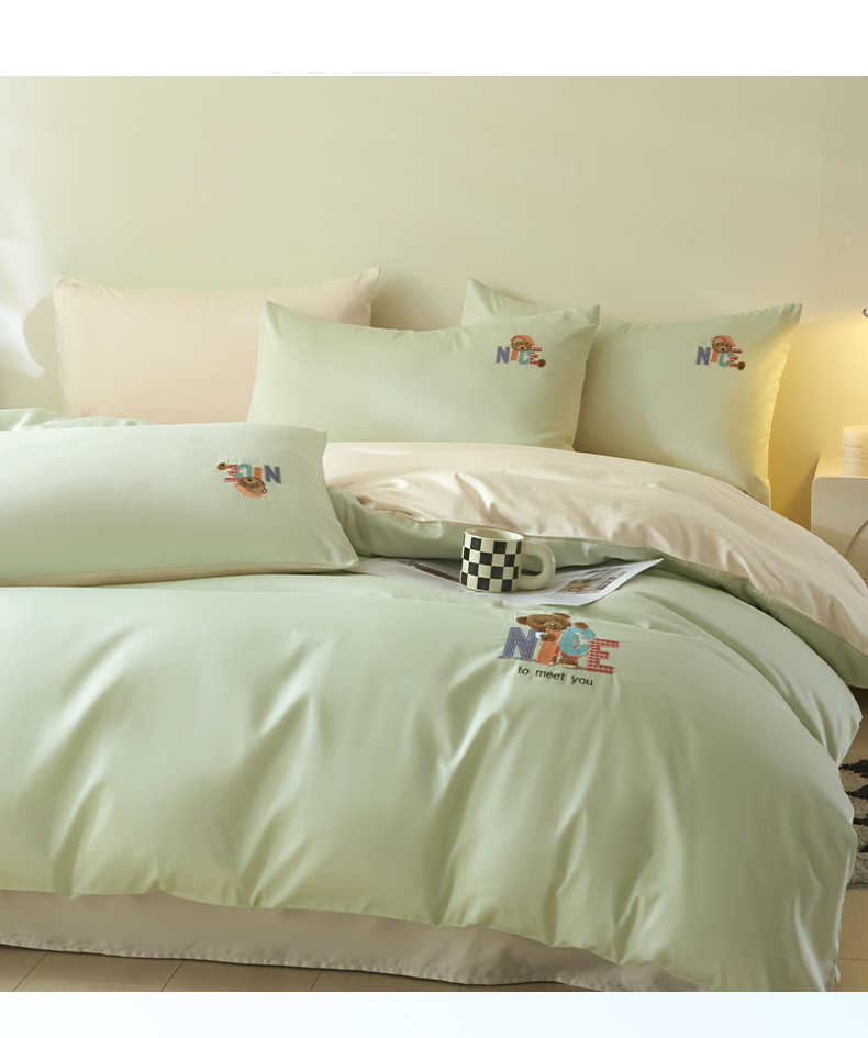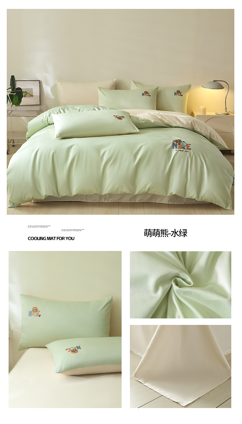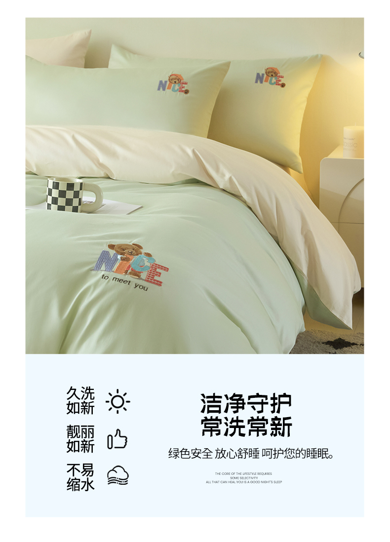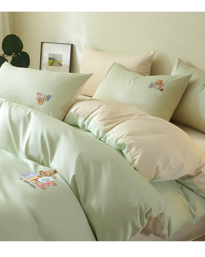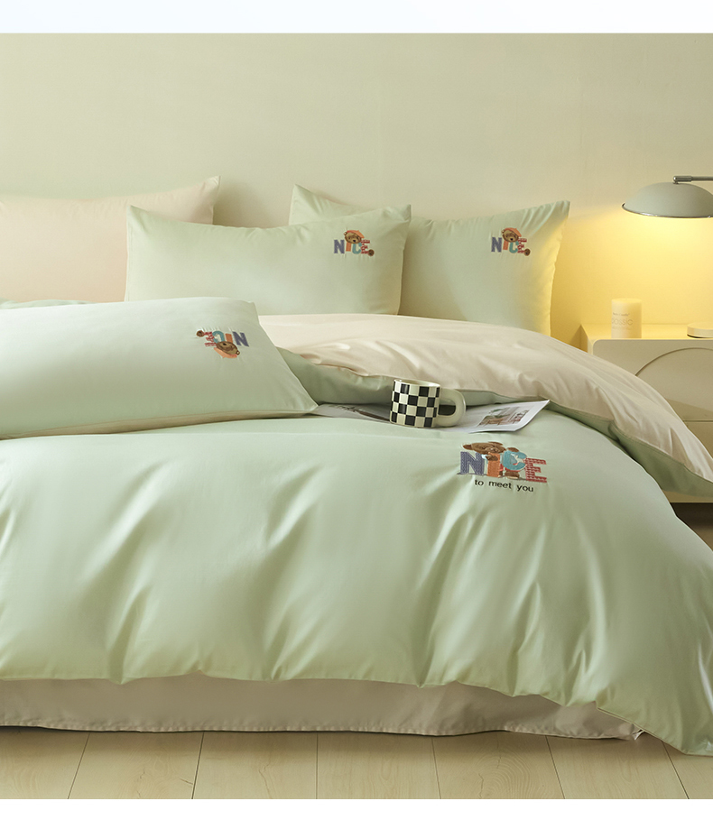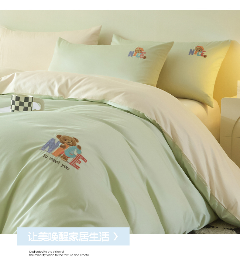 拼社家纺 2025新款全棉长绒棉四件套纯棉四件套小熊刺绣床上用品【提供买家秀】 萌萌熊-水绿