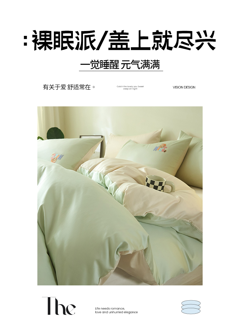 (总)拼社家纺 2025新款母婴及全棉水洗棉刺绣四件套纯棉床上用品,艾玛绿+卡其,繁星蓝+卡其,繁星蓝+玫瑰粉,红豆沙+雅灰,迷雾灰+玫瑰粉,蜜粉+雅灰,奶油白+卡其,奶油白+香橙,牛仔蓝+浅蓝,香橙+雅灰