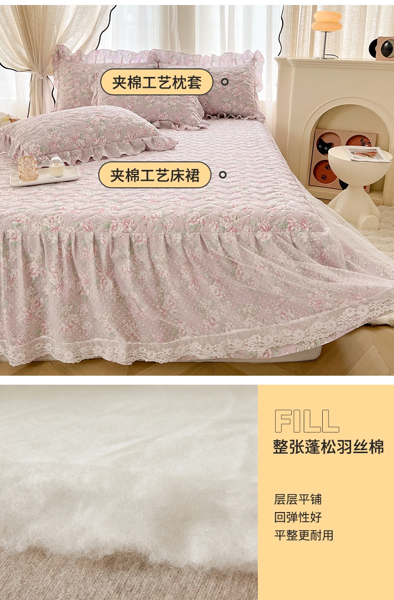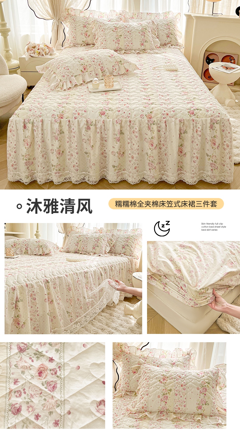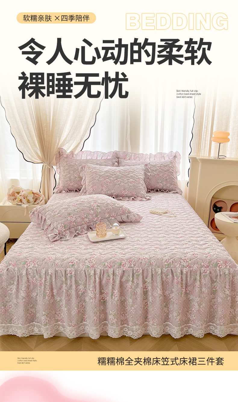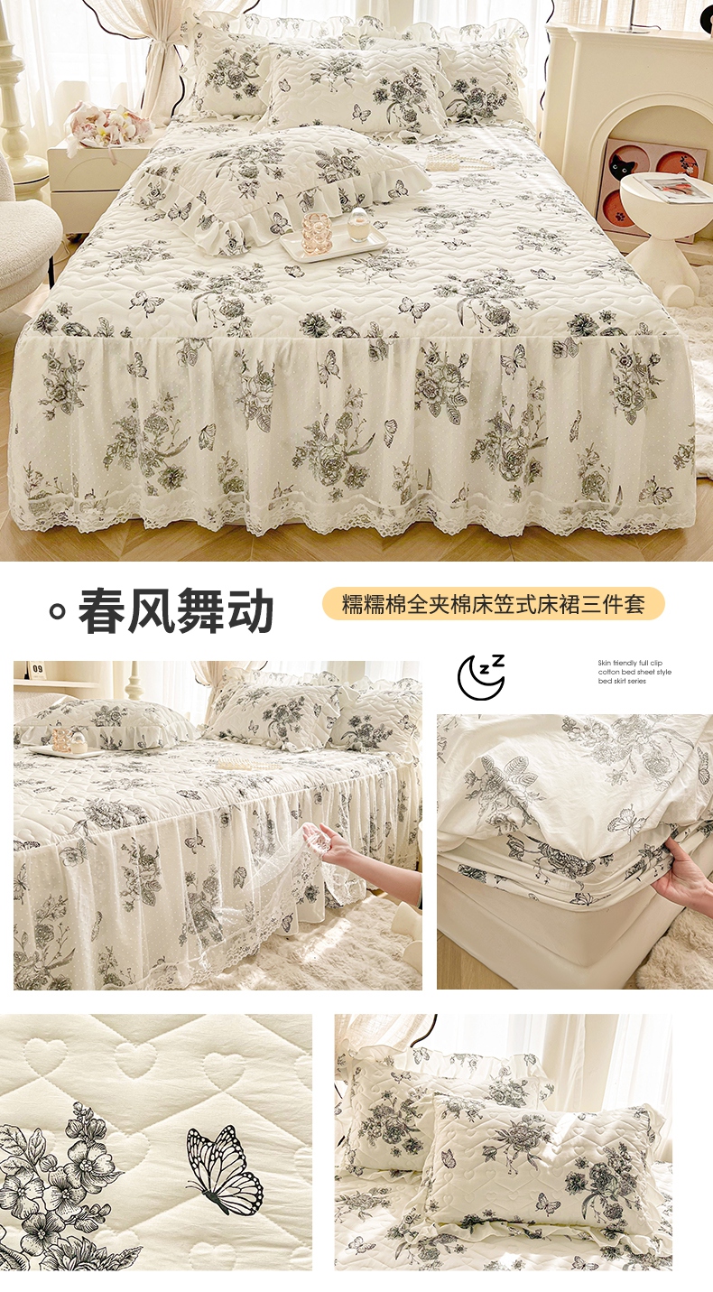 宜凡家纺 2025新款糯糯棉全夹棉床笠式床裙三件套 春风舞动
