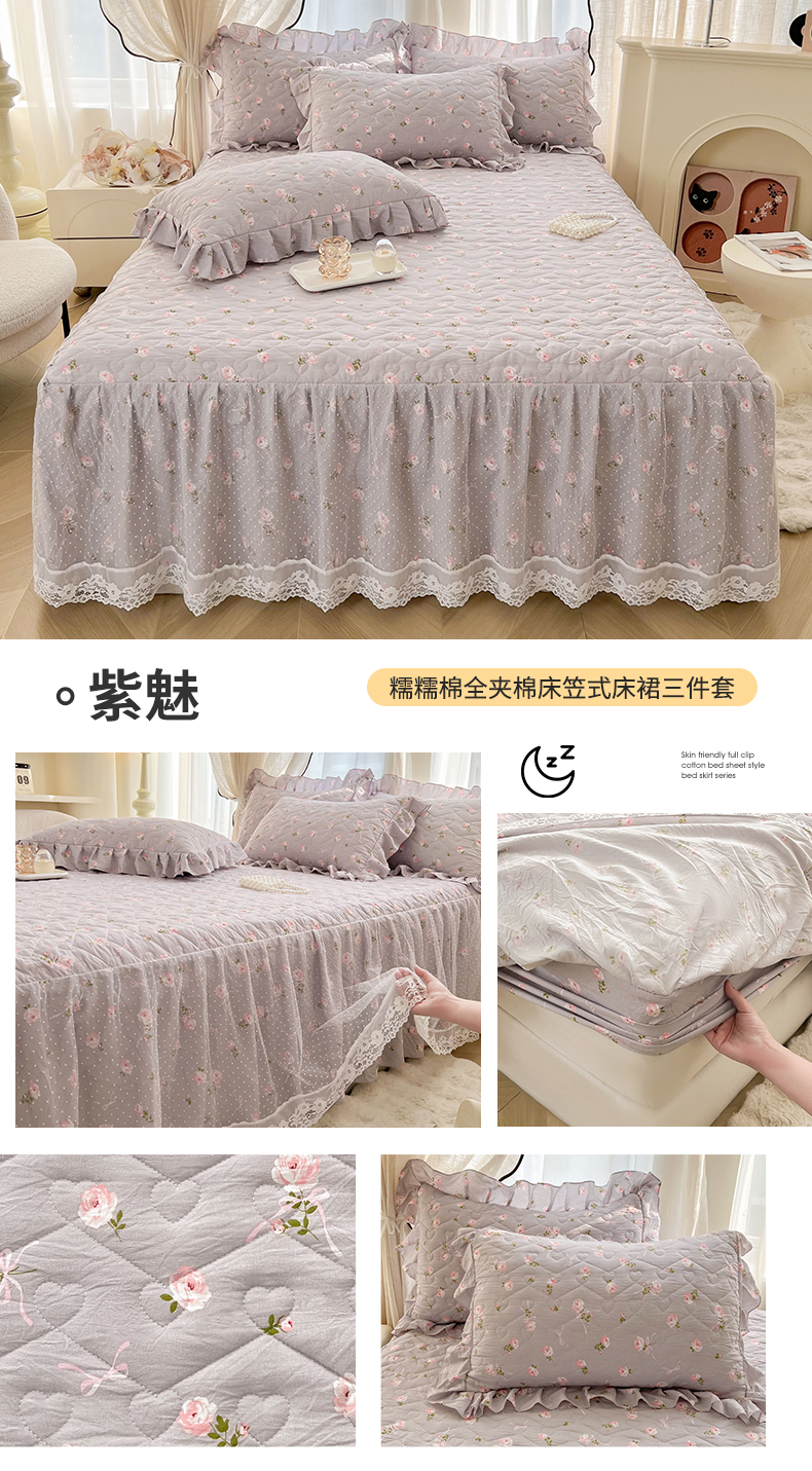 宜凡家纺 2025新款糯糯棉全夹棉床笠式床裙三件套 紫魅