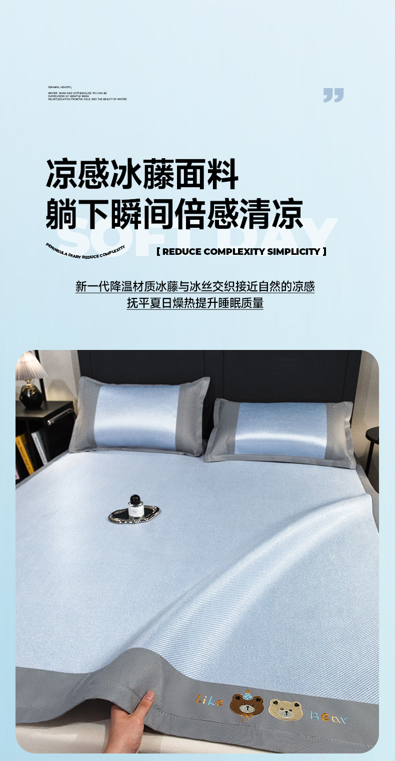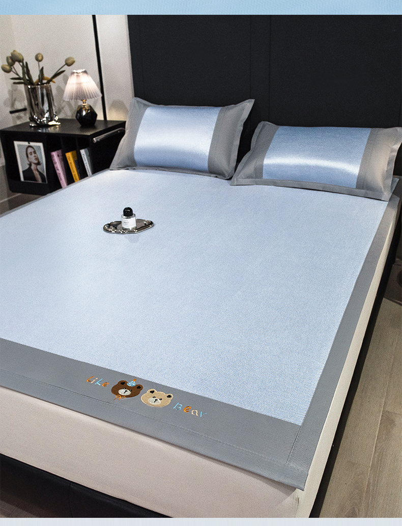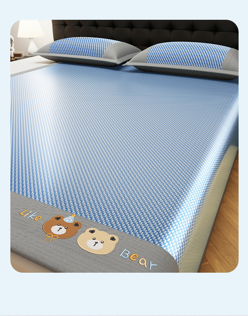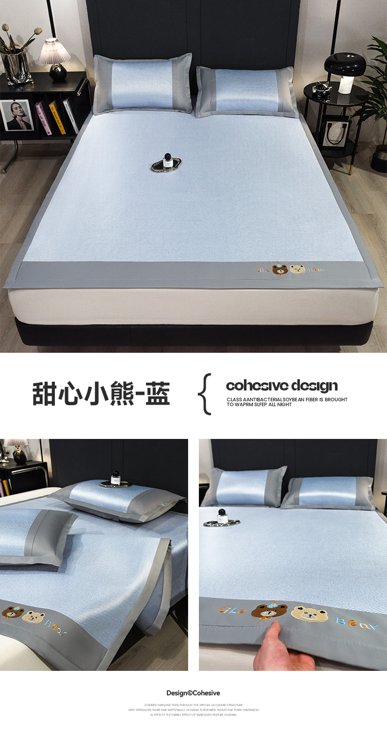 商品名称:摩妮卡 2025新款抗菌绣花冰藤席床席款 甜心小熊-蓝
