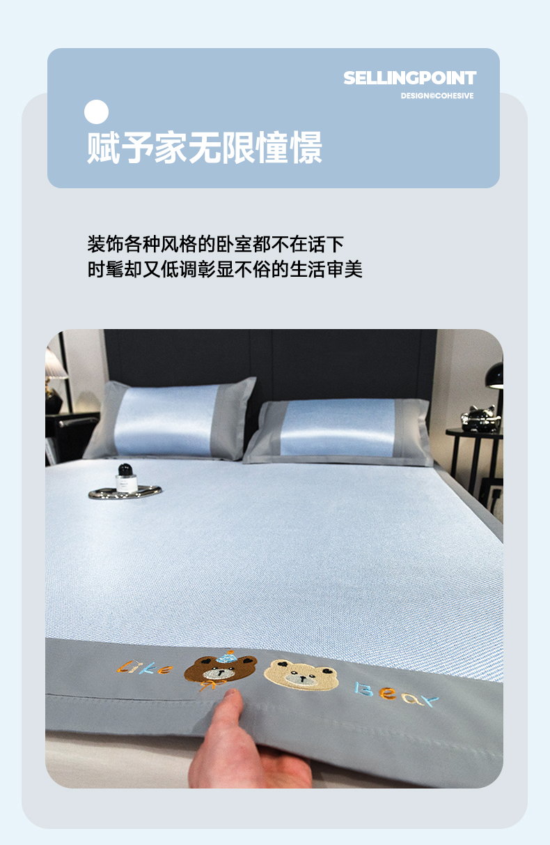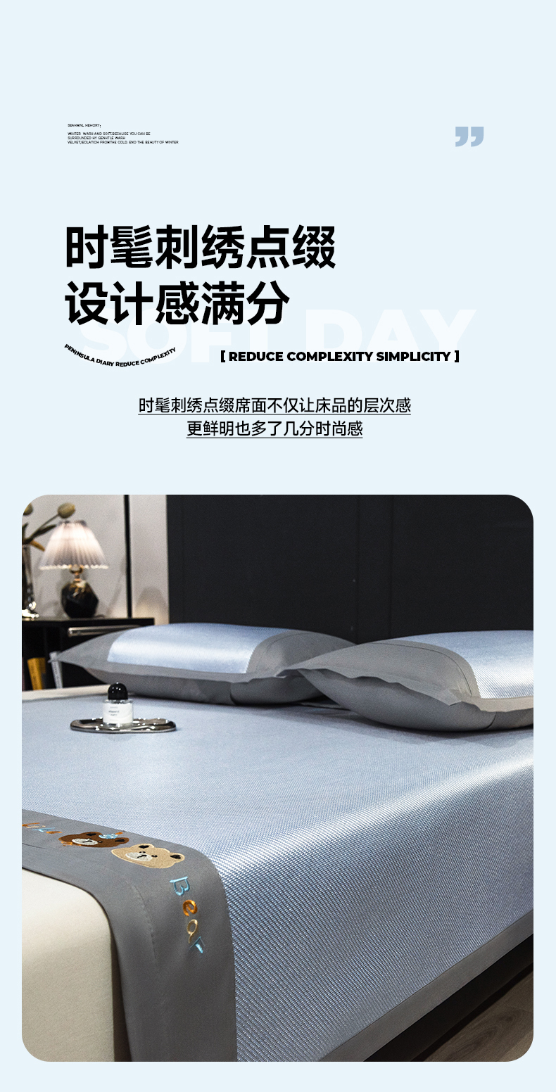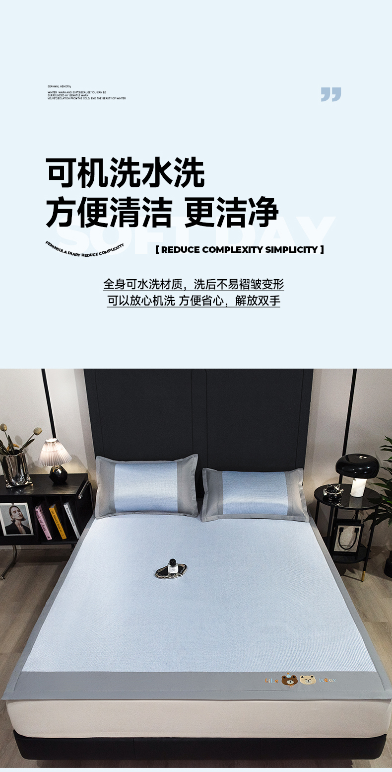 商品名称:摩妮卡 2025新款抗菌绣花冰藤席床席款 甜心小熊-蓝