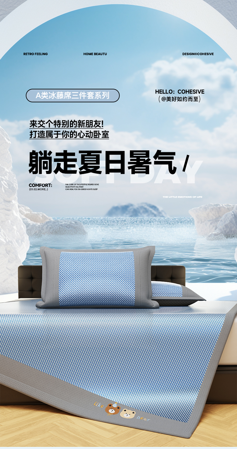 150*200cm凉席三件套