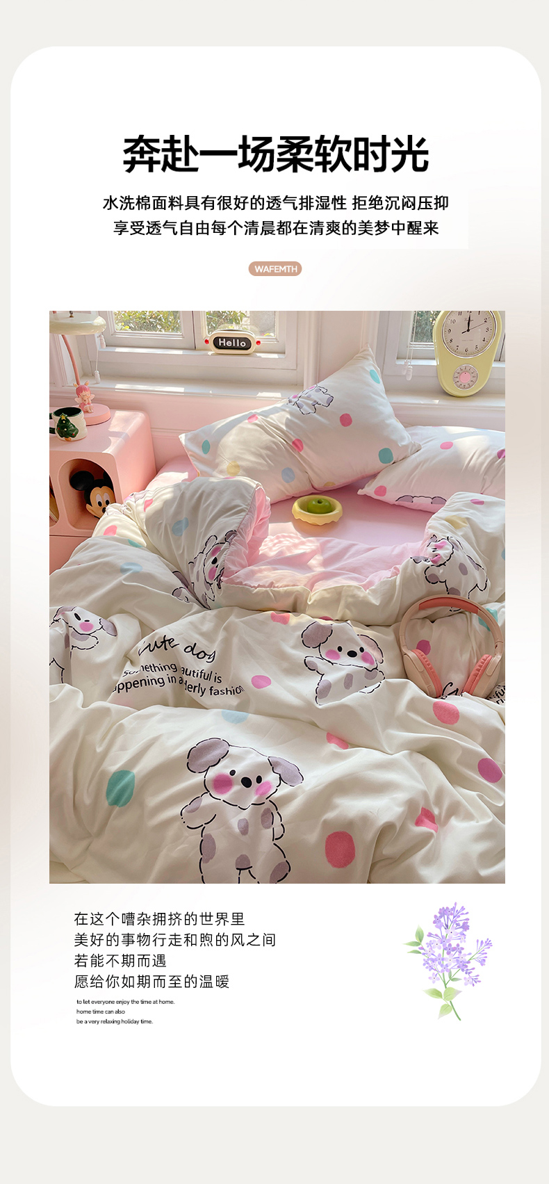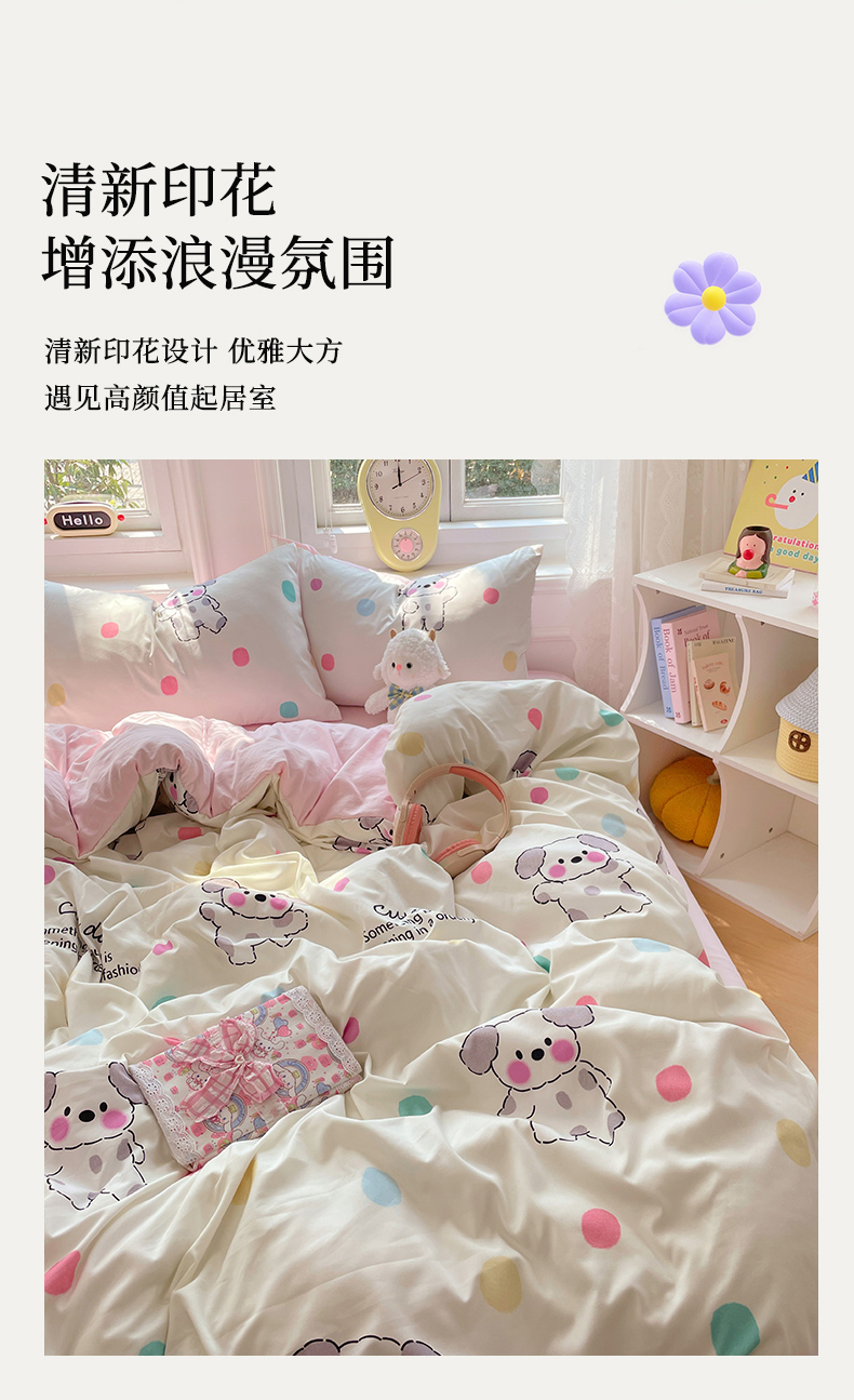 当前位置: 91家纺网 > 商品网购 > 床品套件 > 四件套 > 水洗棉四件套 > 思诺羽床笠 2025春夏新款小清新105克高克重水洗棉印花四件套 斑点狗