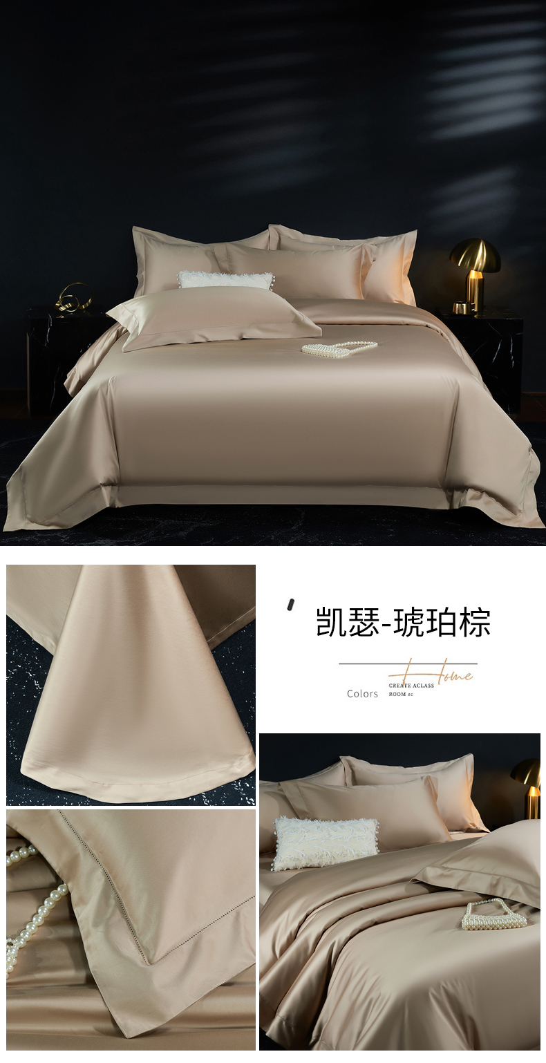 商品名称:淼铭家纺 2025新款双股长绒棉四件套-凯瑟系列 凯瑟-琥珀棕