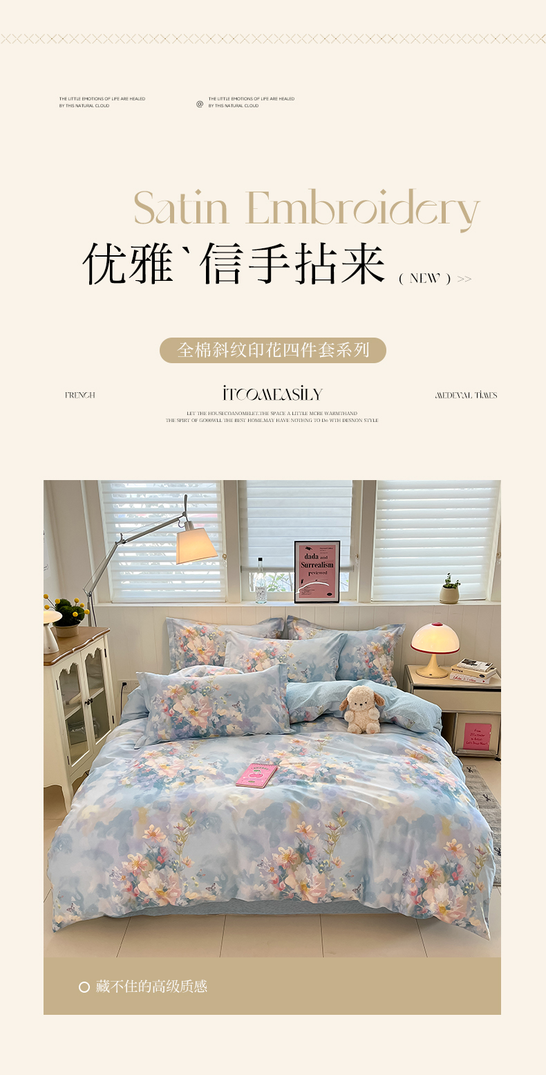 (总)绘萱2026新款100%全棉纯棉印花四件套4三件套3(喷气工艺高品质)【花型持续更新】,雾里寻花,蒂芙娜,花夏,幸福花儿,艾达拉-灰,艾茉莉-黄,爱莲娜-米,布偶熊猫,春天,狗狗联盟,极简主义,快乐草莓,米洛-米,摩卡条纹,魔法精灵,青花瓷,清茶小熊,探索星球,甜美蝴蝶结,香颂蝶舞,小橙子,心想事成,心意如初,悦动心妍,云裳花谷,艾洛琳,明竹疏影,花锦雅意,花蓉,花园兔,花枝漫舞,几何旋律-黄,花晨月汐,律动条纹,绿意暖阳,漫庭香,蒲公英约定,伊春,情怀,苏沐花谣,岁月如歌,唯美花彩,香榭,莫奈印象,罗兰花季,颜悦,叶叶丝语,花初梦,彩蝶,繁花,巴洛克暖阳,安曼,彩色小南瓜,安馨,爱枝花舍,爱的花环,渲染,周庄梦蝶