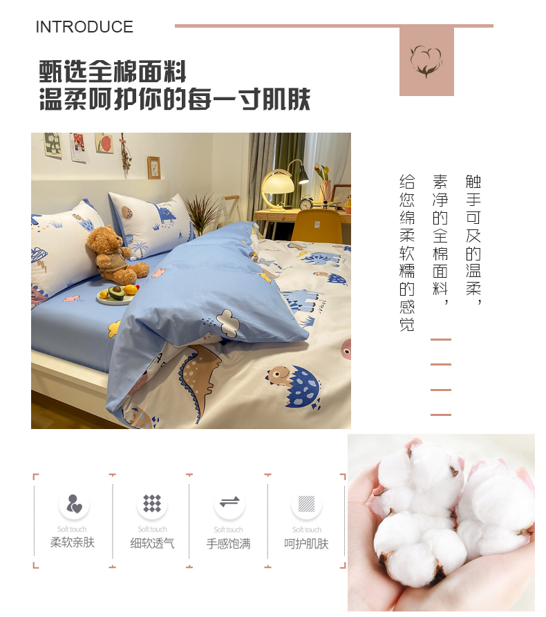 商品名称:吉象家纺13070全棉四件套纯棉四件套直播小清新男孩女趣味恐龙