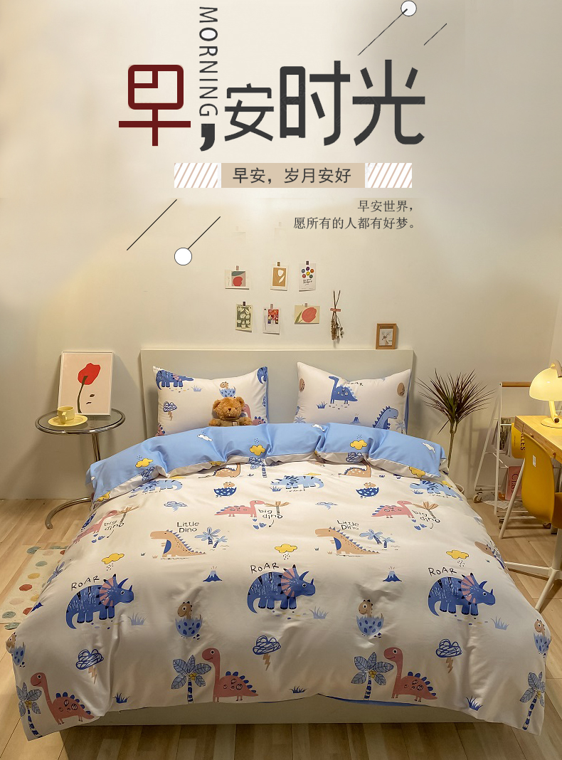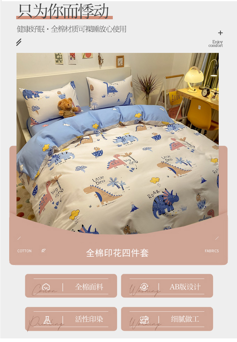 吉象家纺13070全棉四件套纯棉四件套直播小清新男孩女趣味恐龙