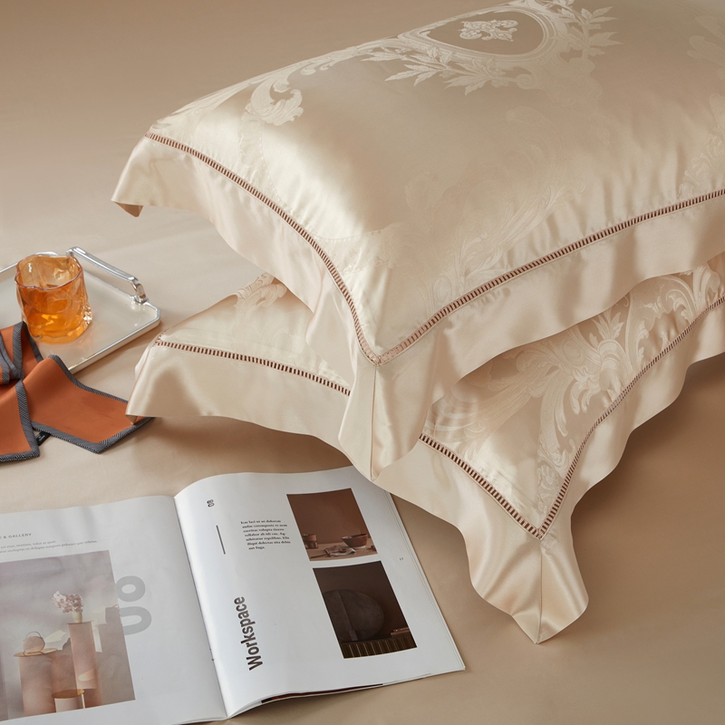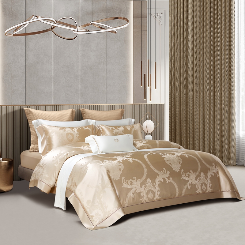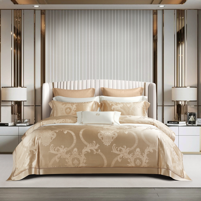 商品名称:赫本真丝馆(珍丝纺) 2025新款真丝提花系列四件套 卡诺尔-金