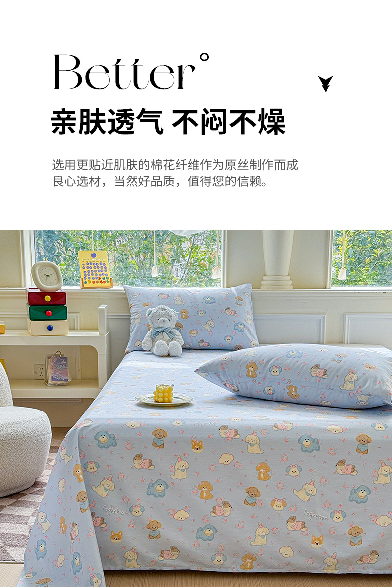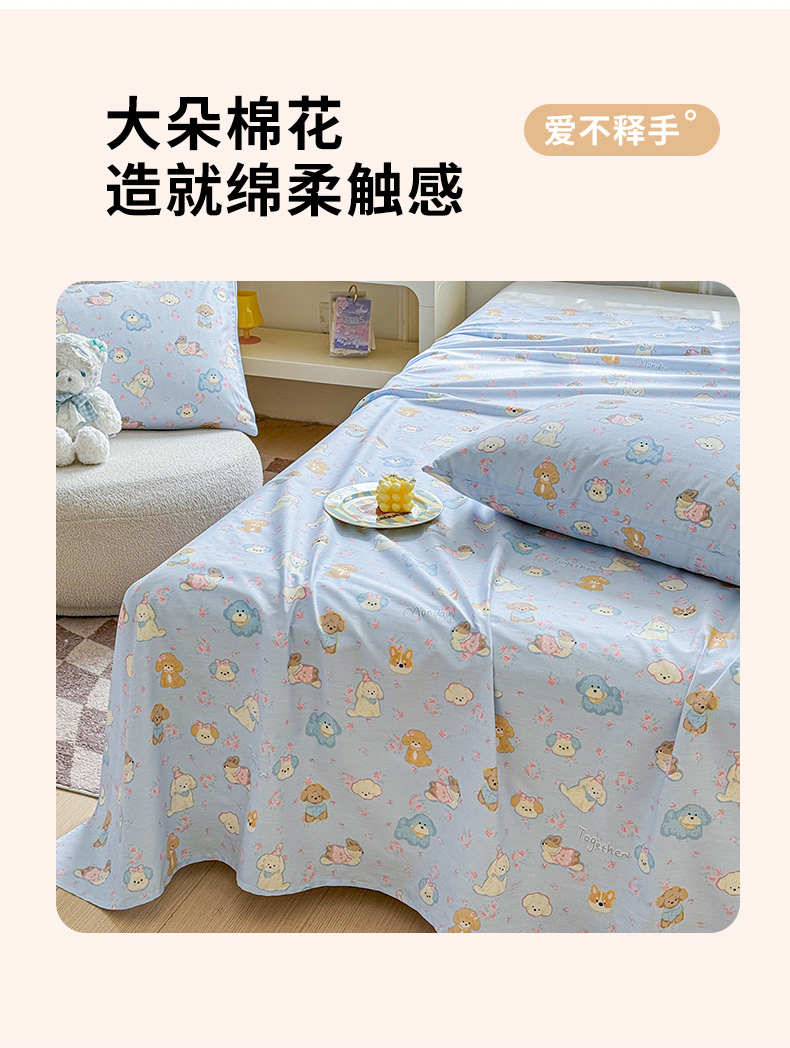 • 91家纺网 家纺一手货源 找家纺 2025新款全棉床单床笠 小奶狗 床笠款