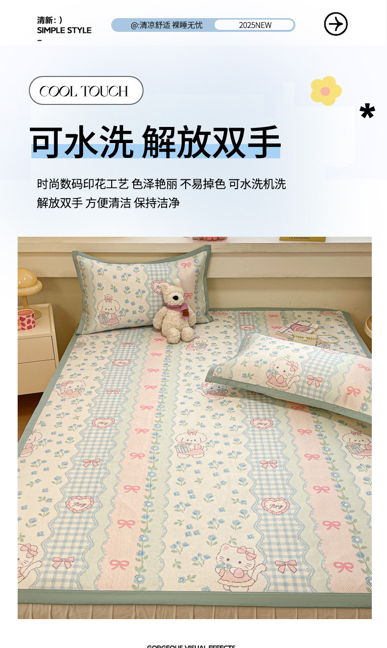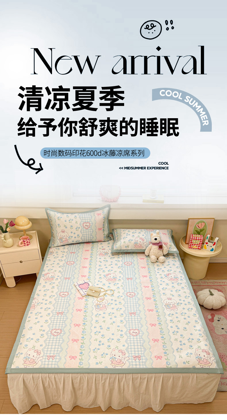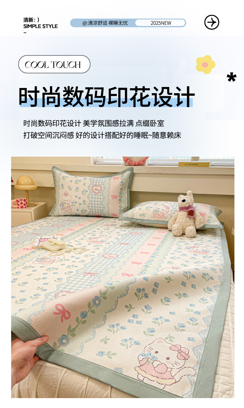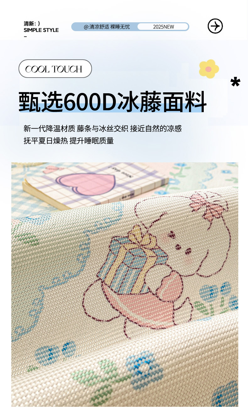 慕澄家纺 2025新款小清新印花真冰藤系列凉席床席款 床席-蓝系宠儿