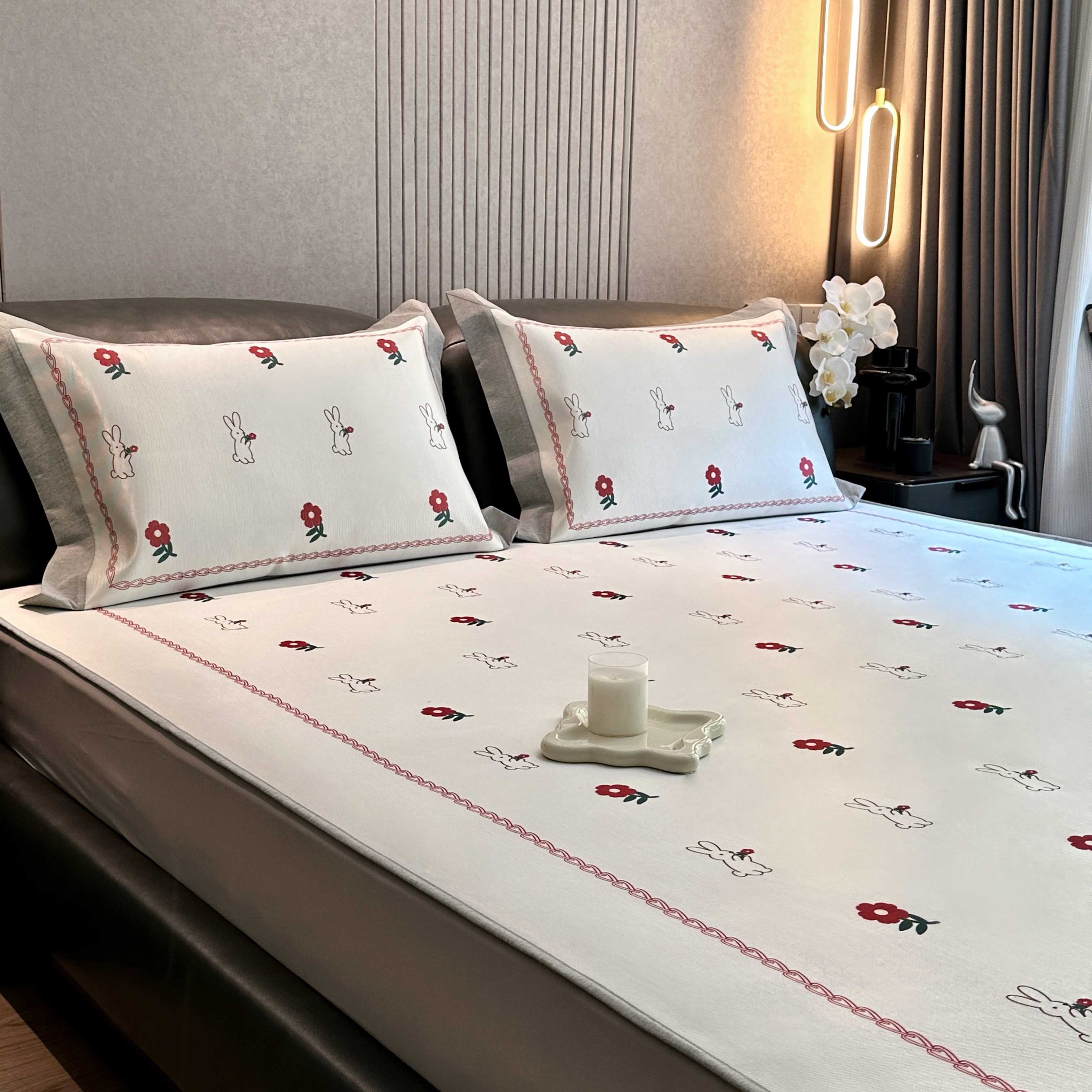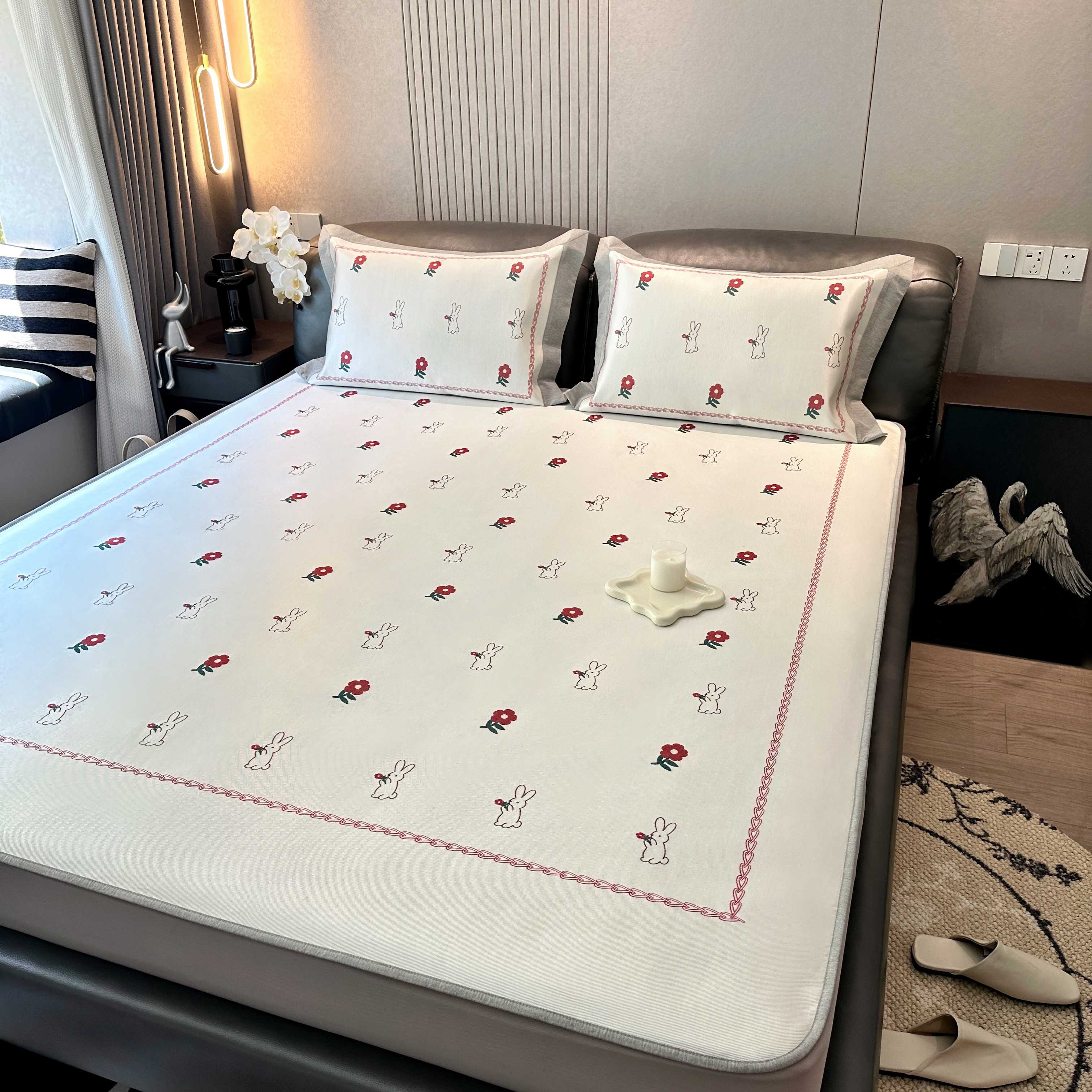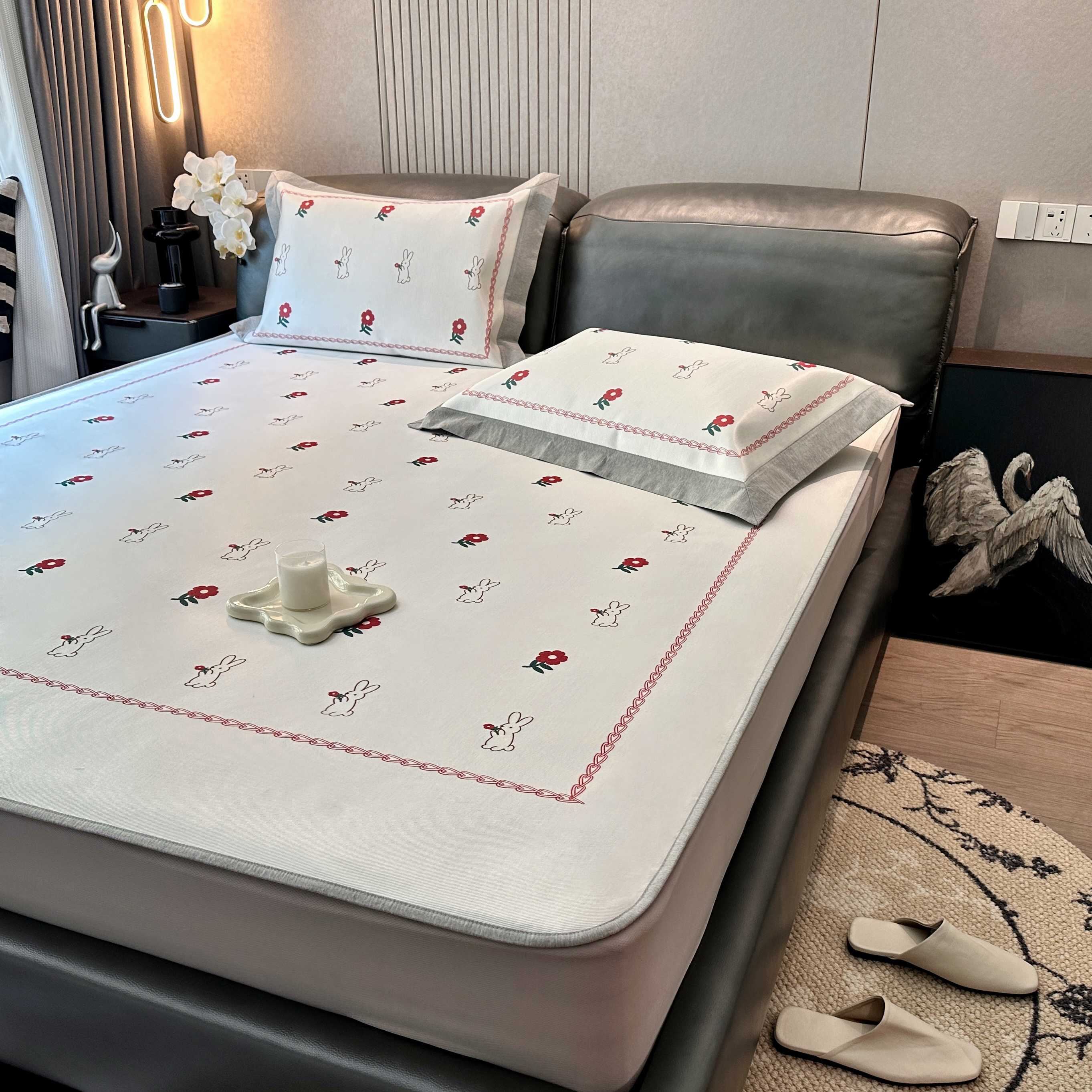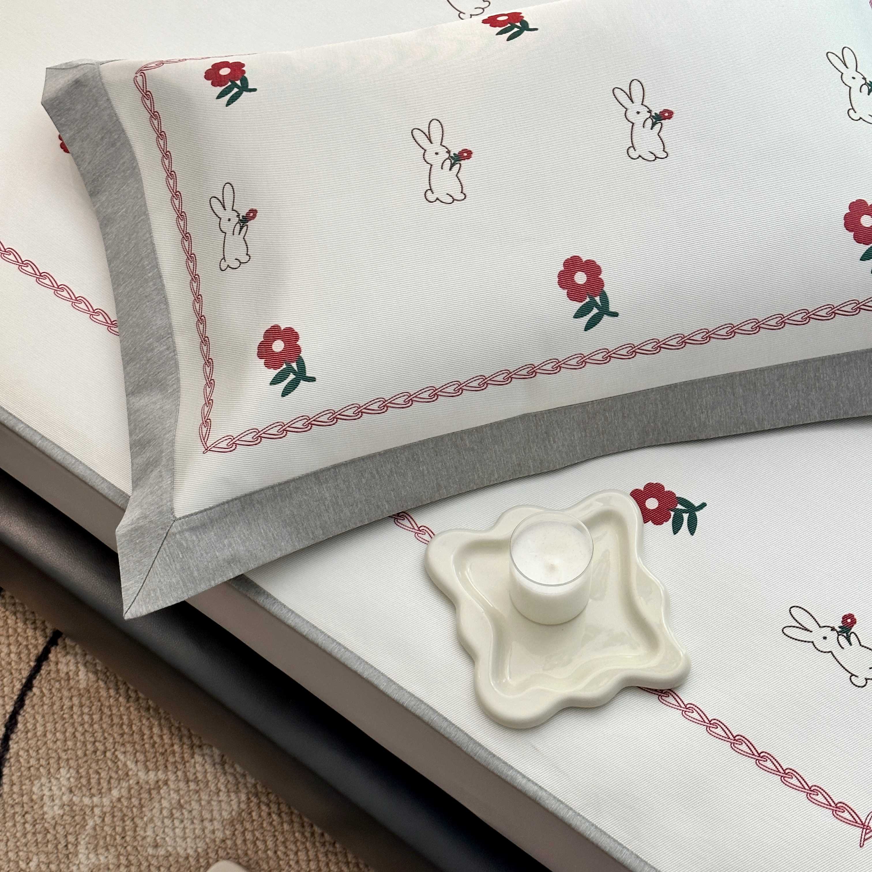 商品名称:JUICY 橘滋家纺 2025新款夏日高端轻奢数码冰丝奢简高级凉席床笠 兔梦花笺