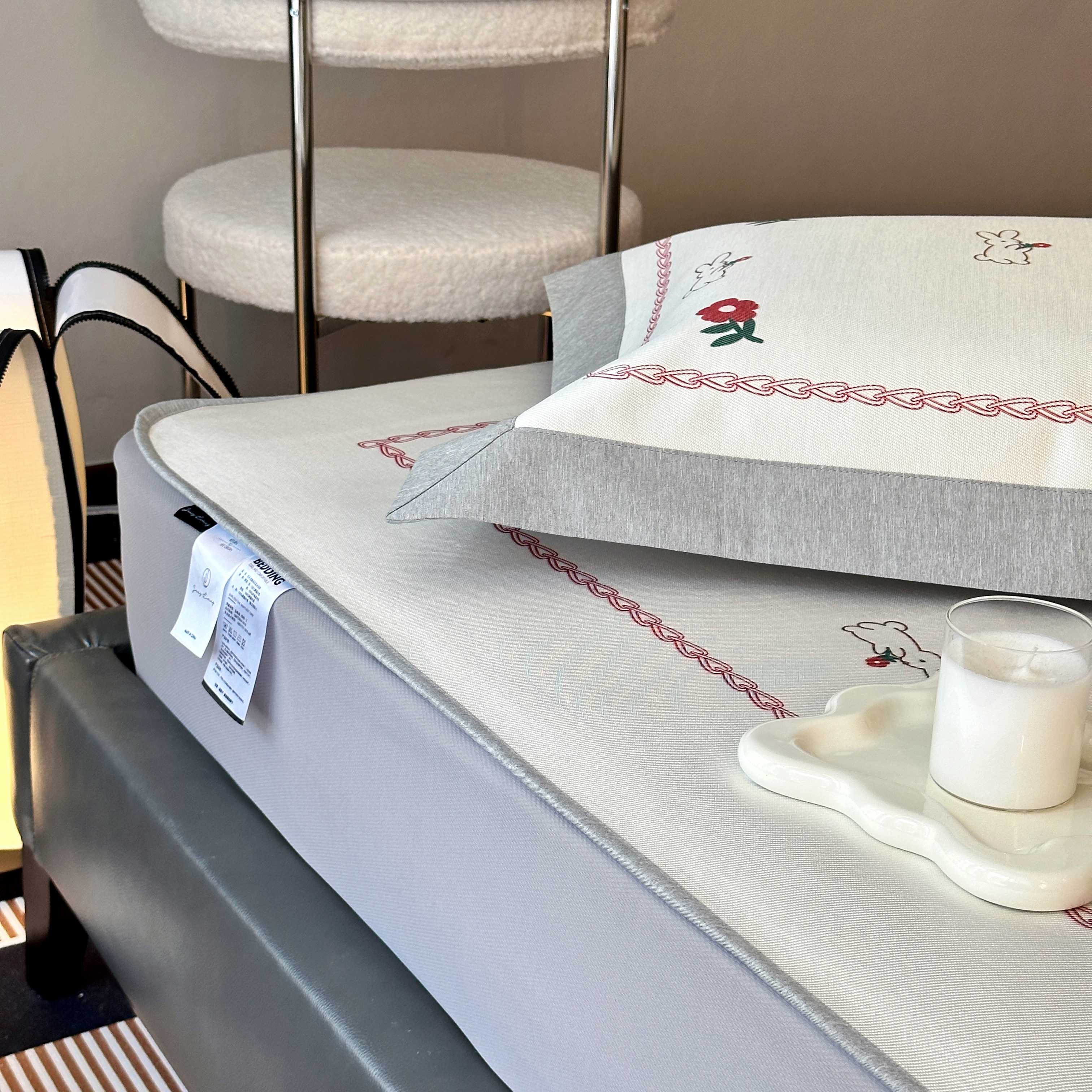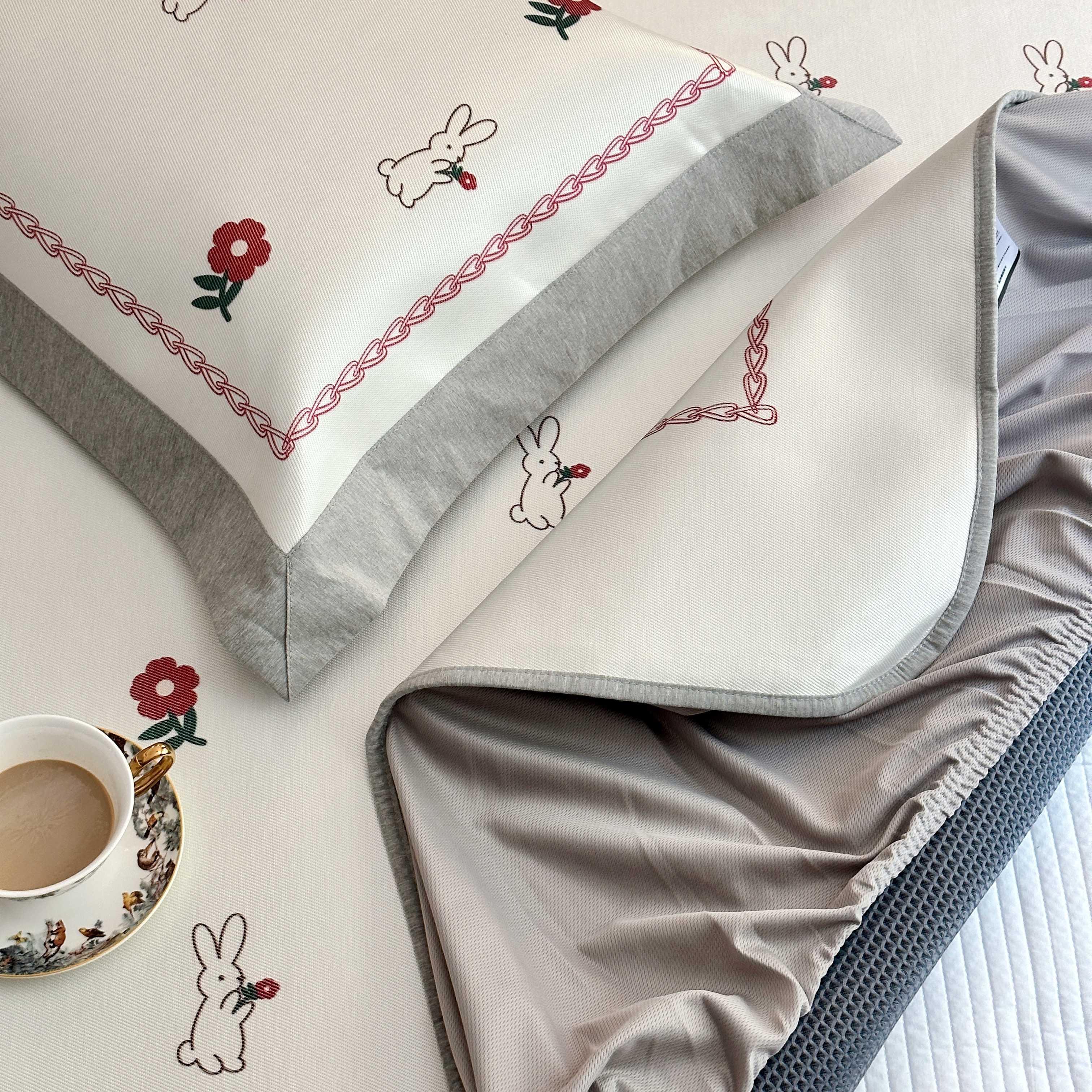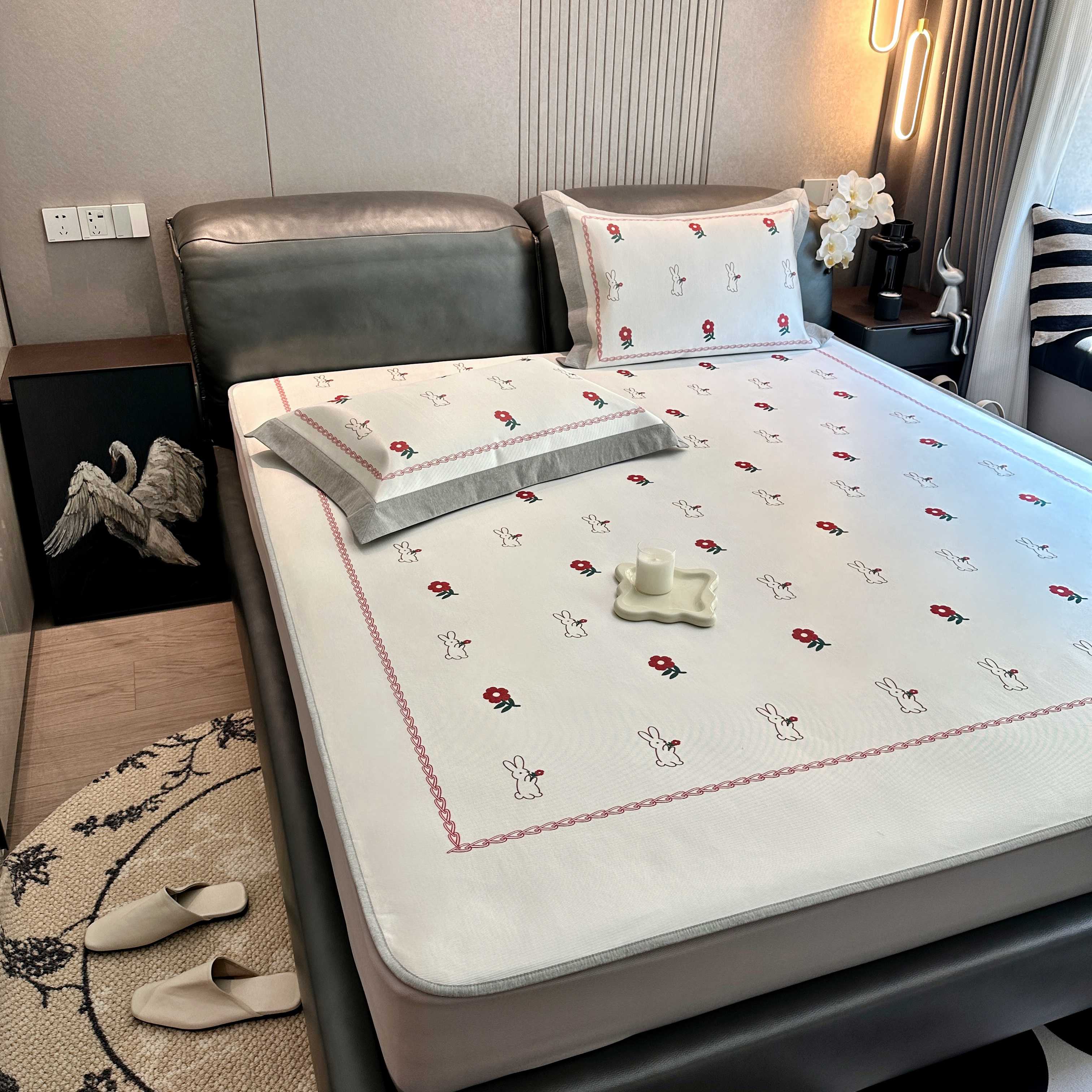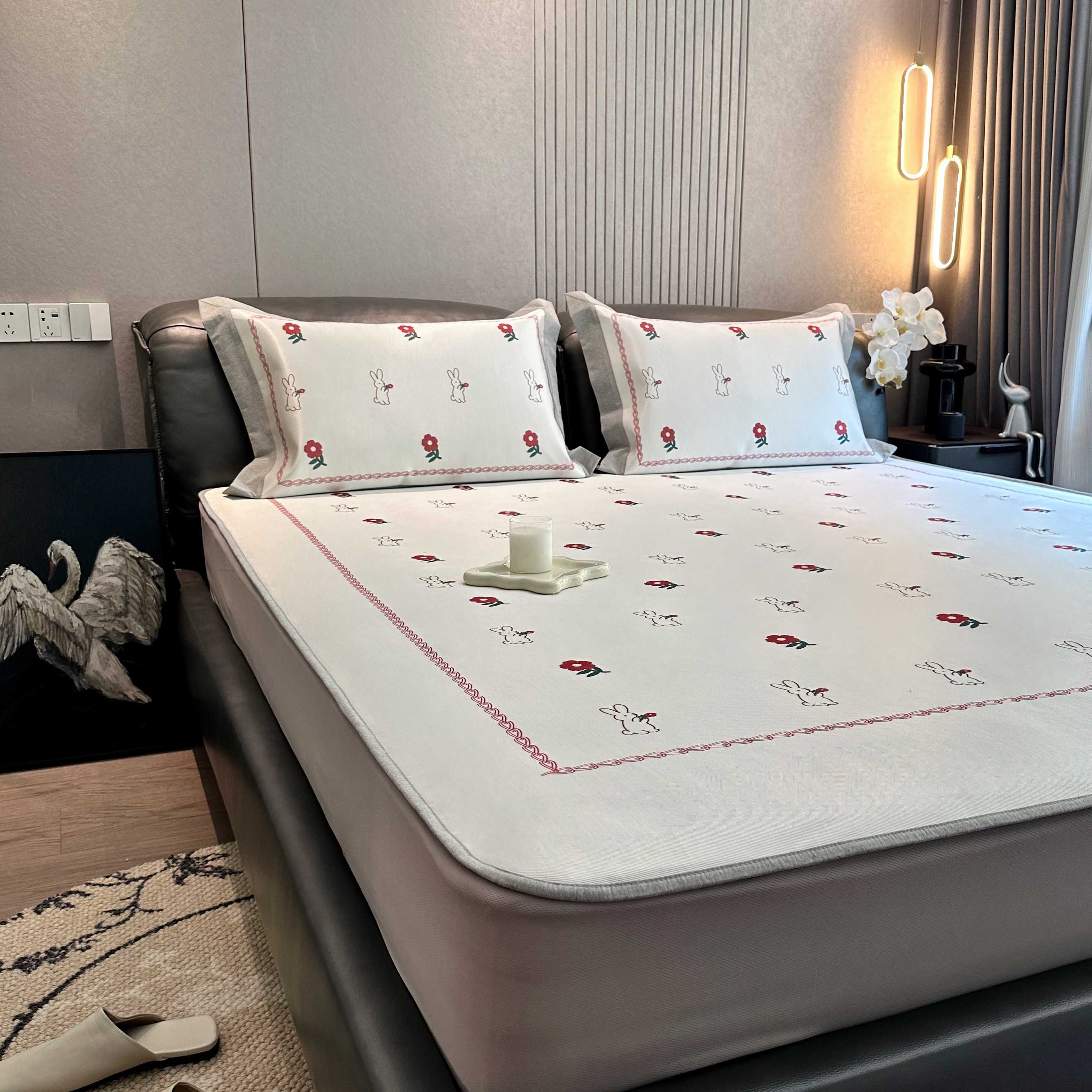 商品名称:JUICY 橘滋家纺 2025新款夏日高端轻奢数码冰丝奢简高级凉席床笠 兔梦花笺