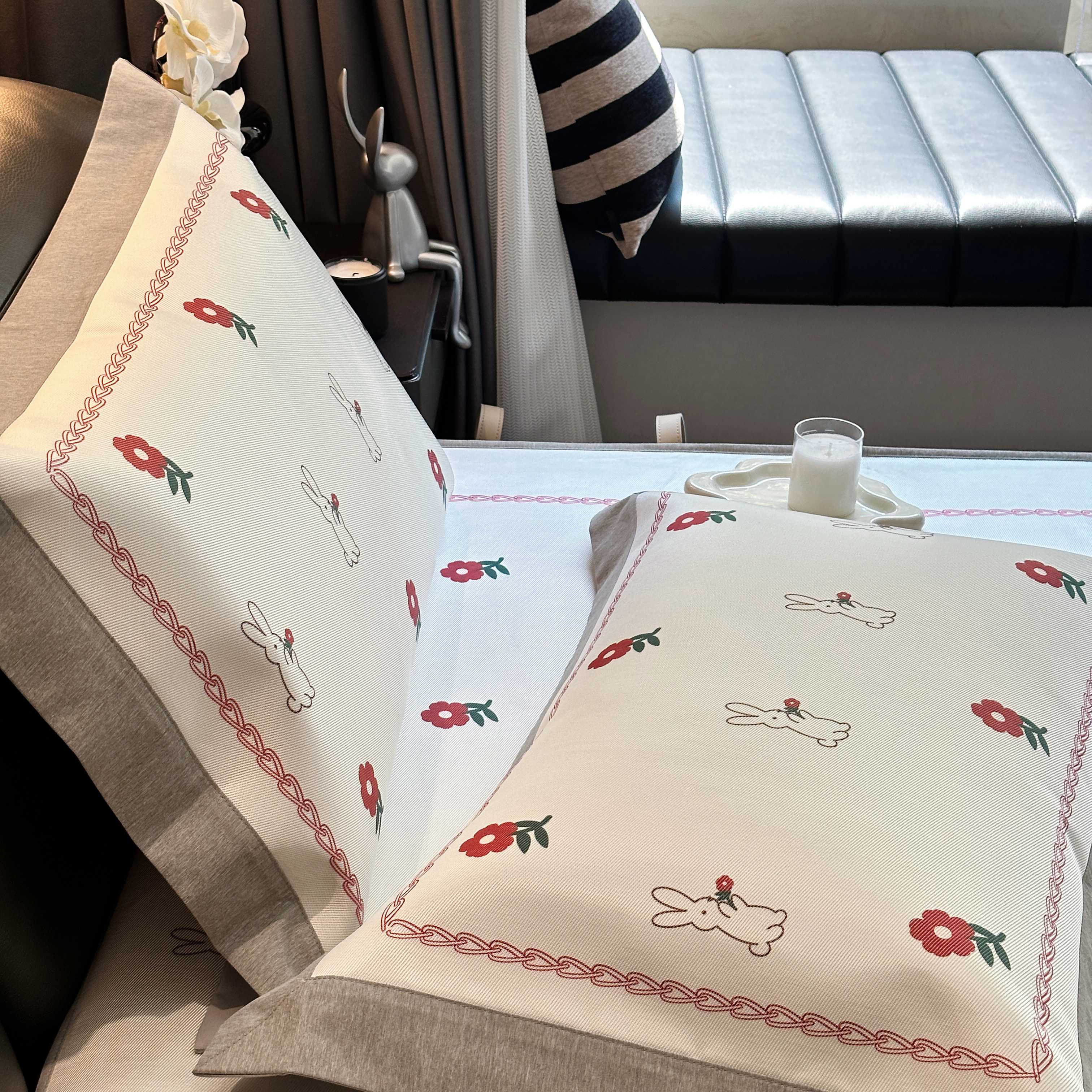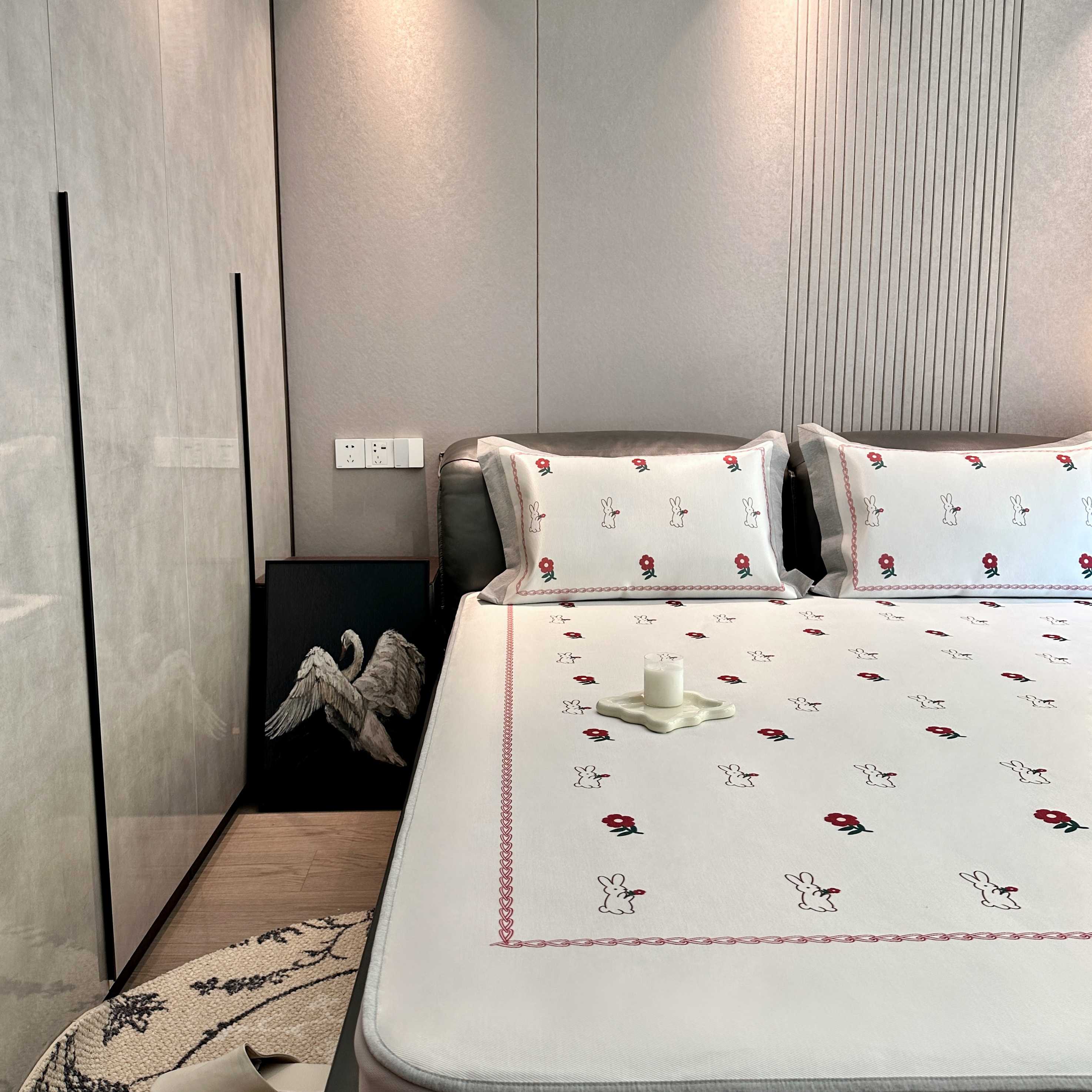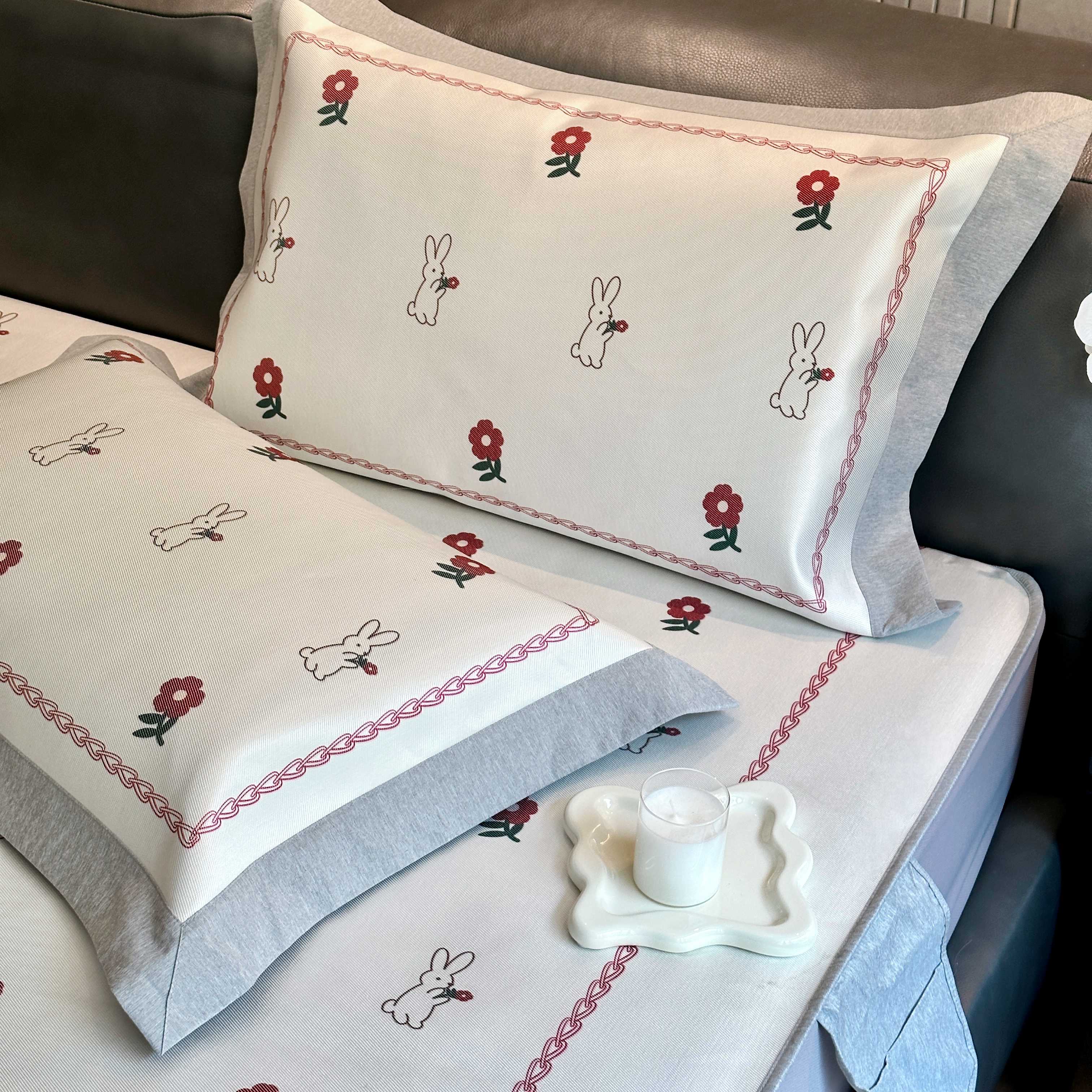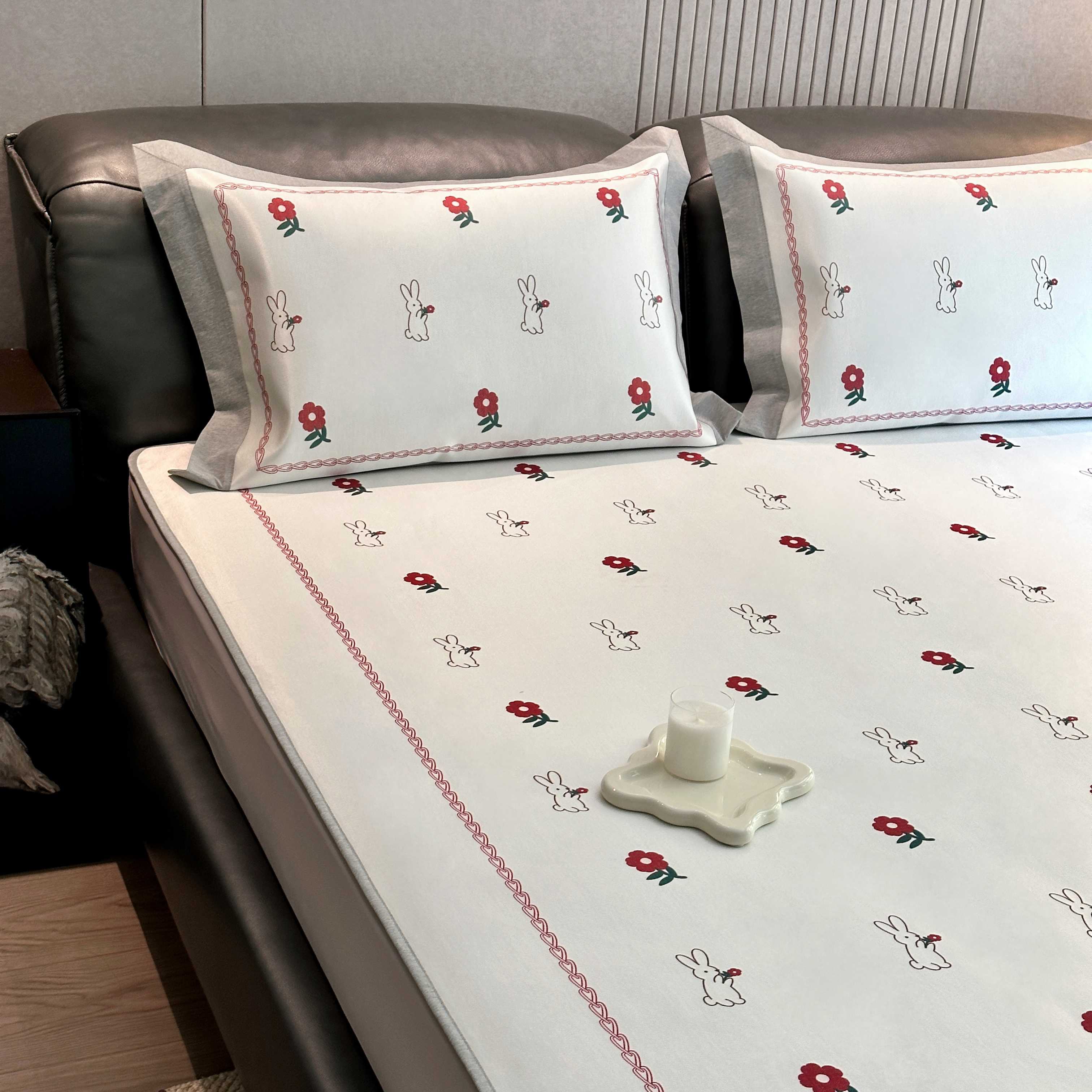 商品名称:JUICY 橘滋家纺 2025新款夏日高端轻奢数码冰丝奢简高级凉席床笠 兔梦花笺