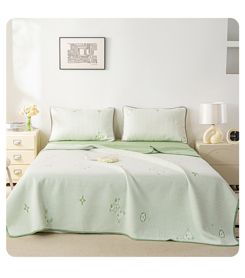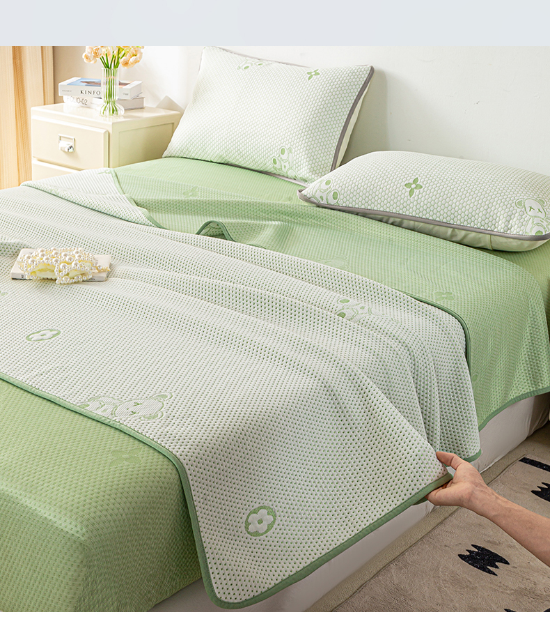 商品名称:梦初语 2025新款A类华夫格冰豆豆夏被子针织提花凉感夏凉被单双人空调被可机水洗 轻奢小熊-绿