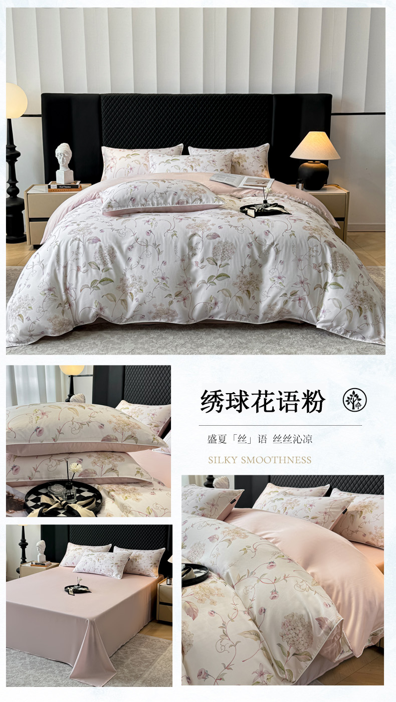 (总)芊寻家居 2025新款50支天丝数码麻绳款夏被四件套,翠影绿,蝶恋花紫,花仙子粉,华意盈香粉,静谧灰,流年兰,洛丽塔米,玫瑰雅韵,远山黛兰绿