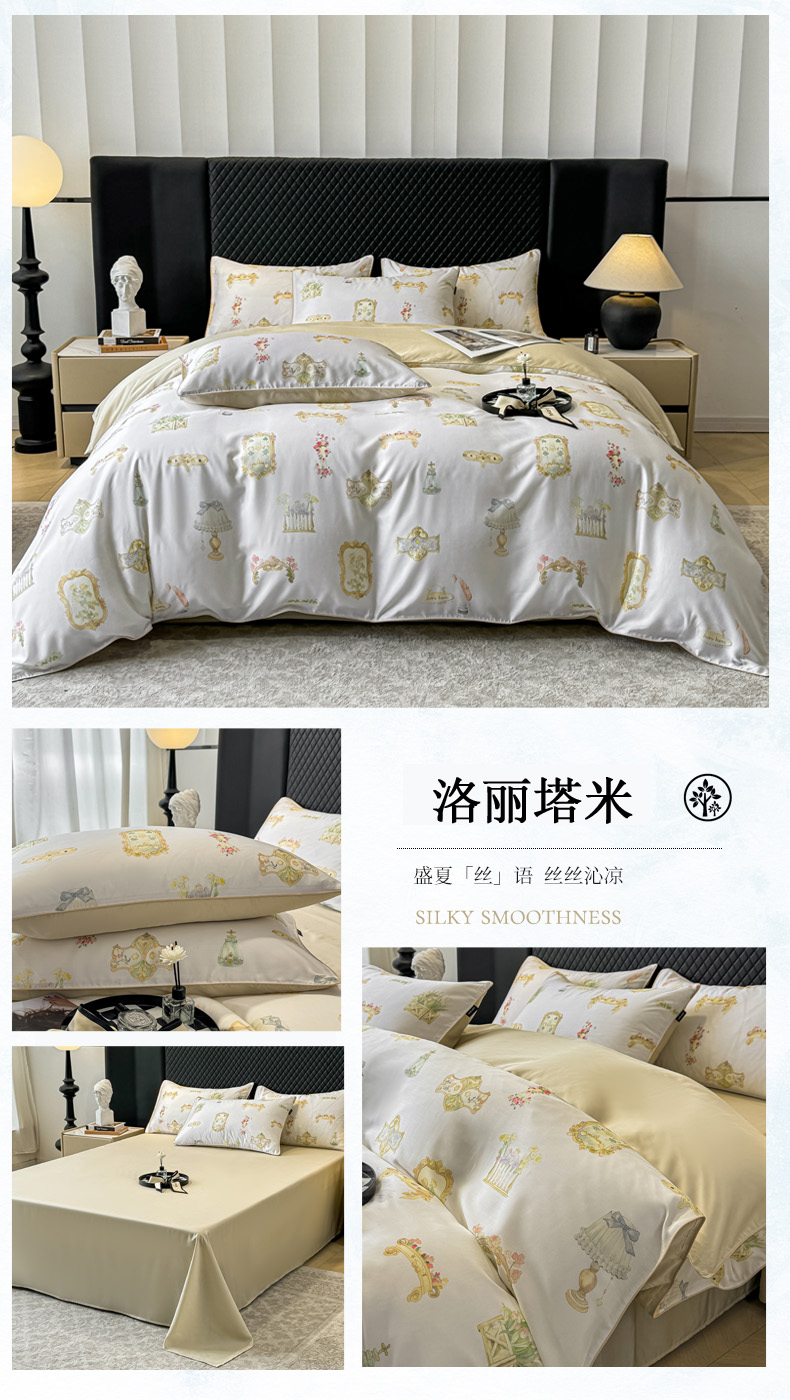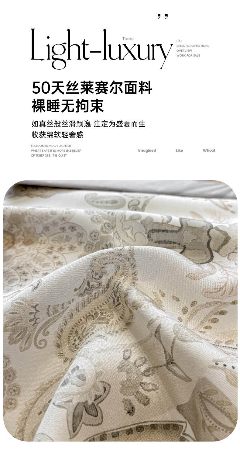 (总)芊寻家居 2025春夏新款50支莱赛尔天丝贡缎数码印花麻绳款四件套高端礼盒