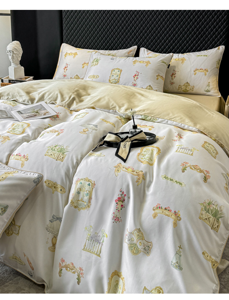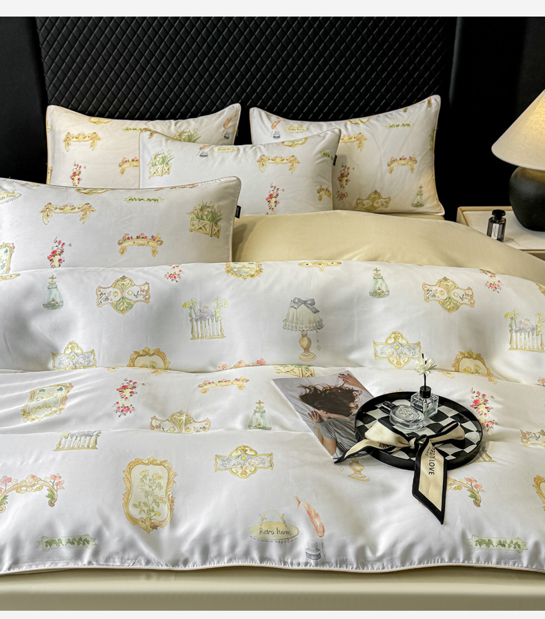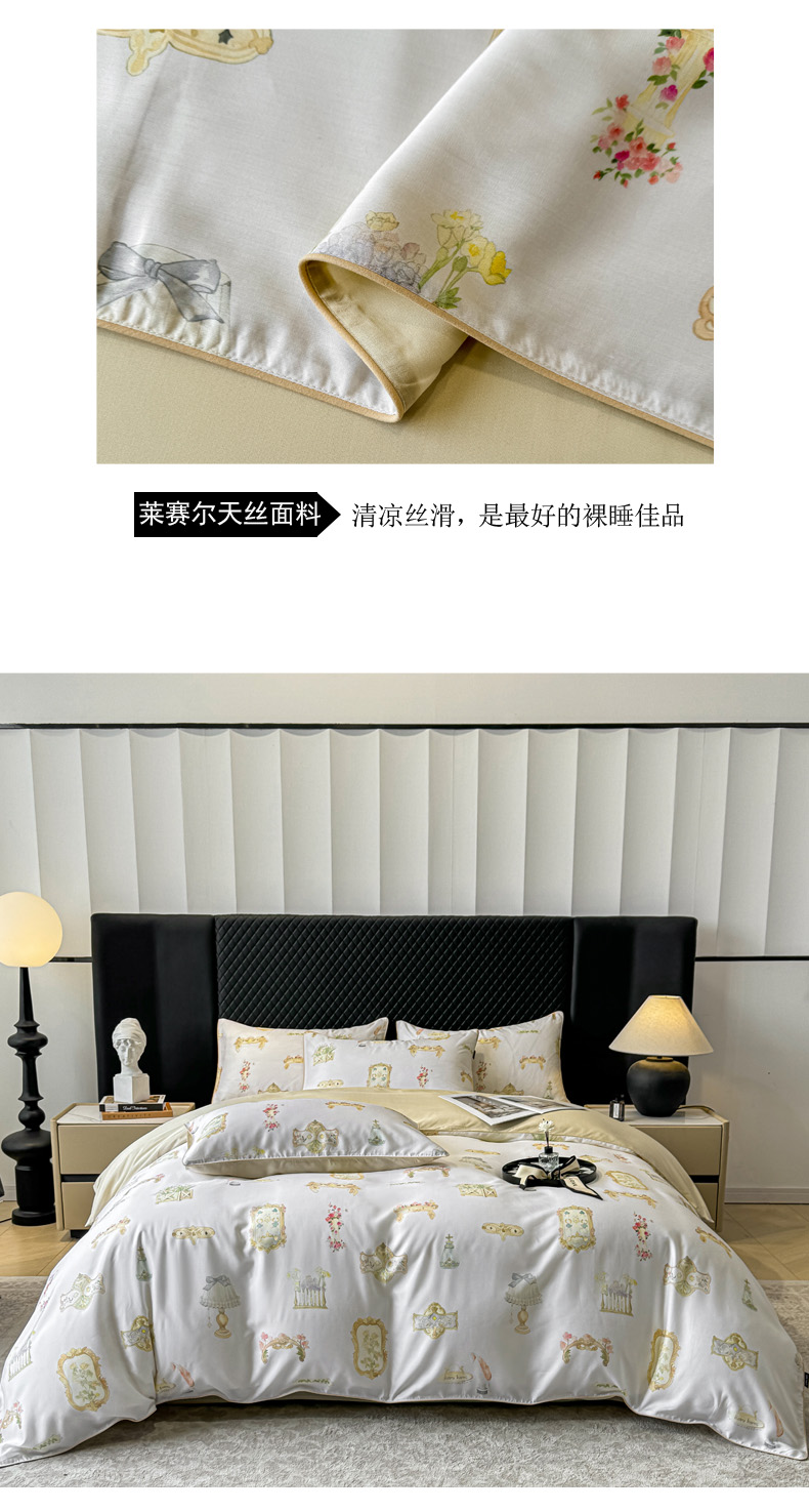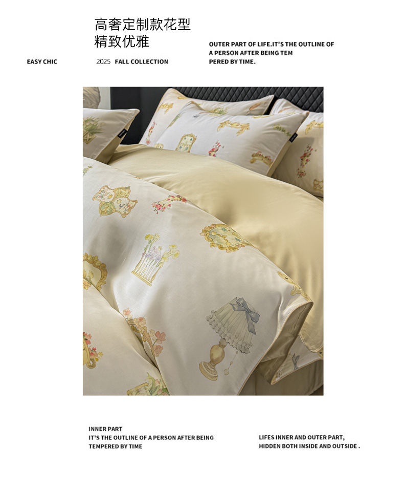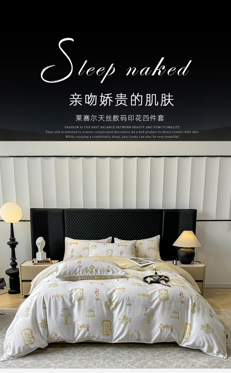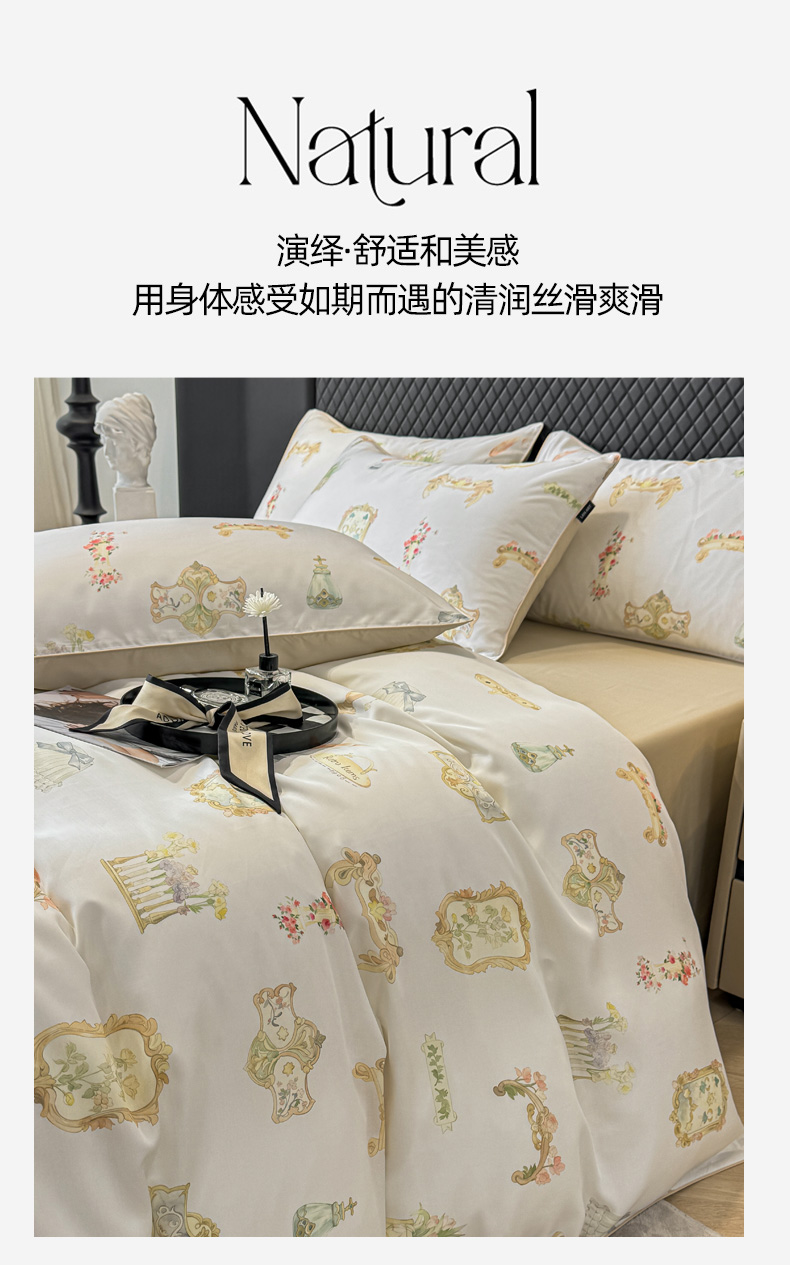 洺兰家居 2025春夏新款100支莱赛尔天丝贡缎数码印花麻绳款四件套高端礼盒 洛丽塔米