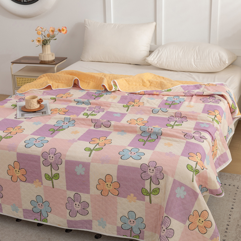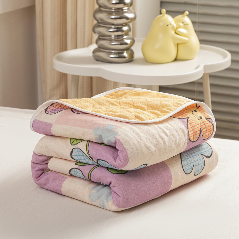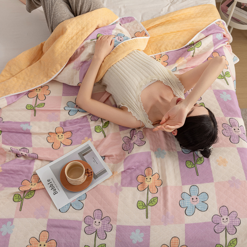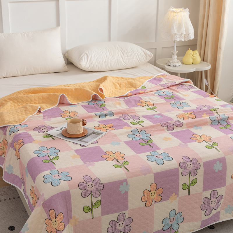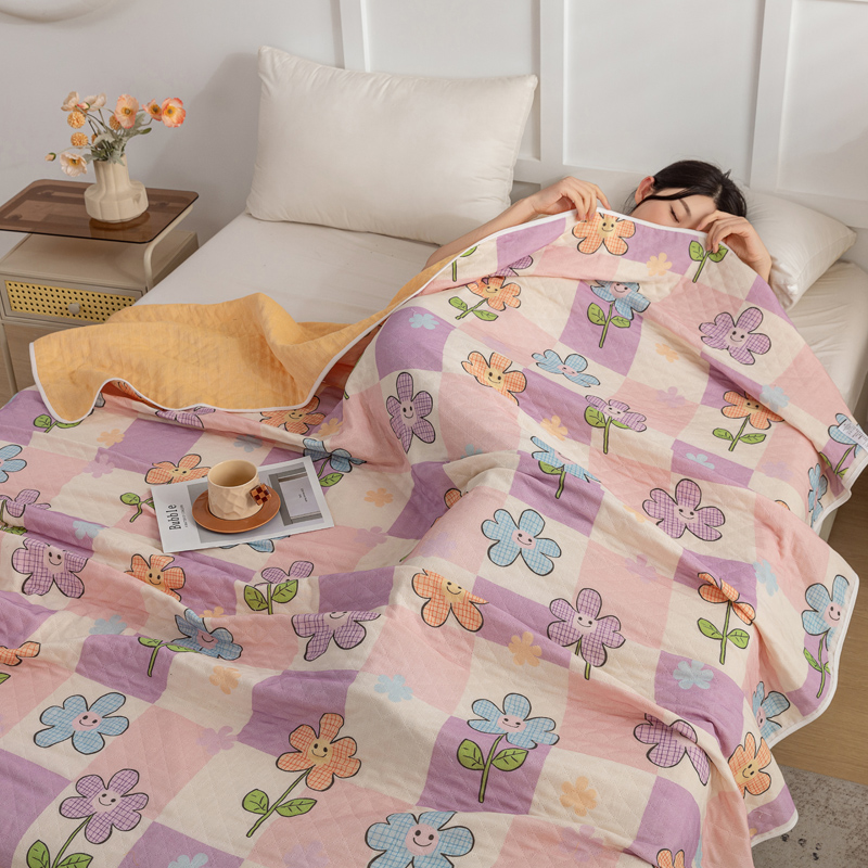 商品名称:乐家毛巾被(工厂自产自销) 2025新款A类全棉六层纱印花毛巾被 格子花花