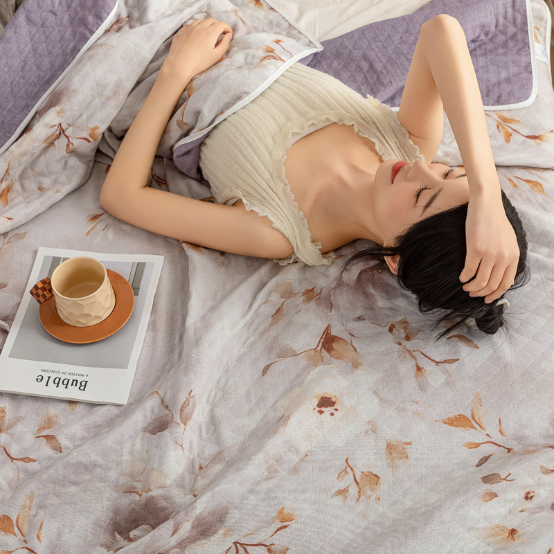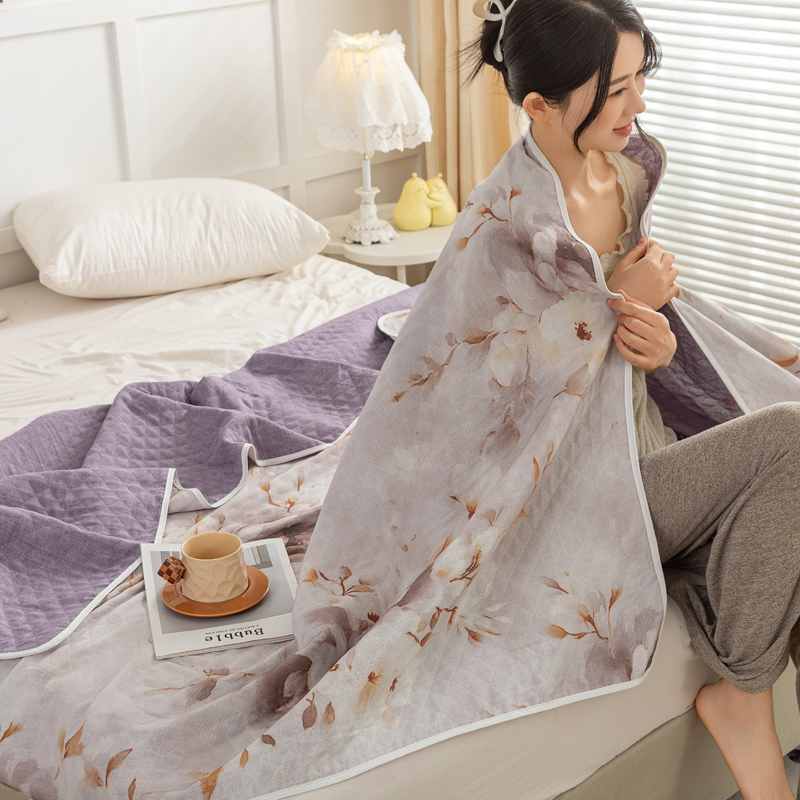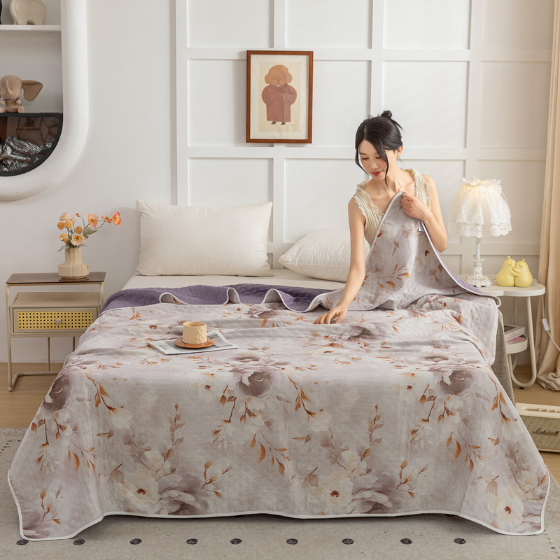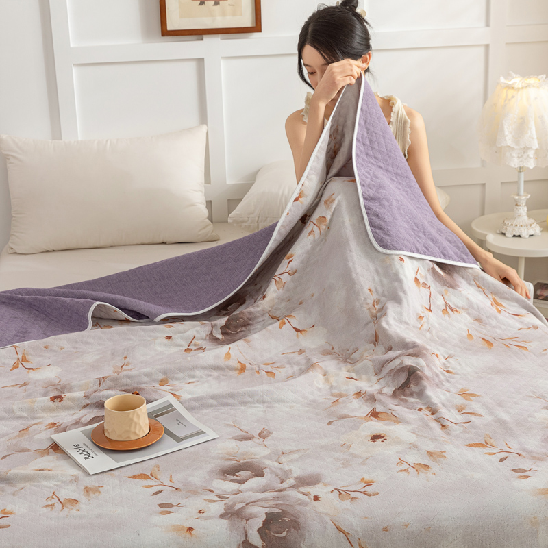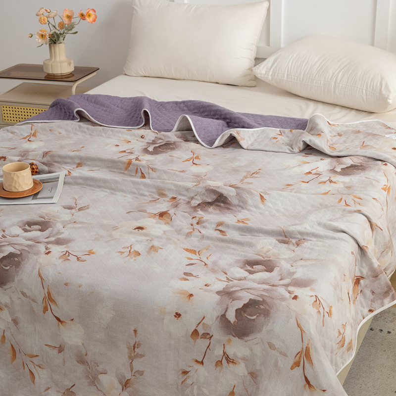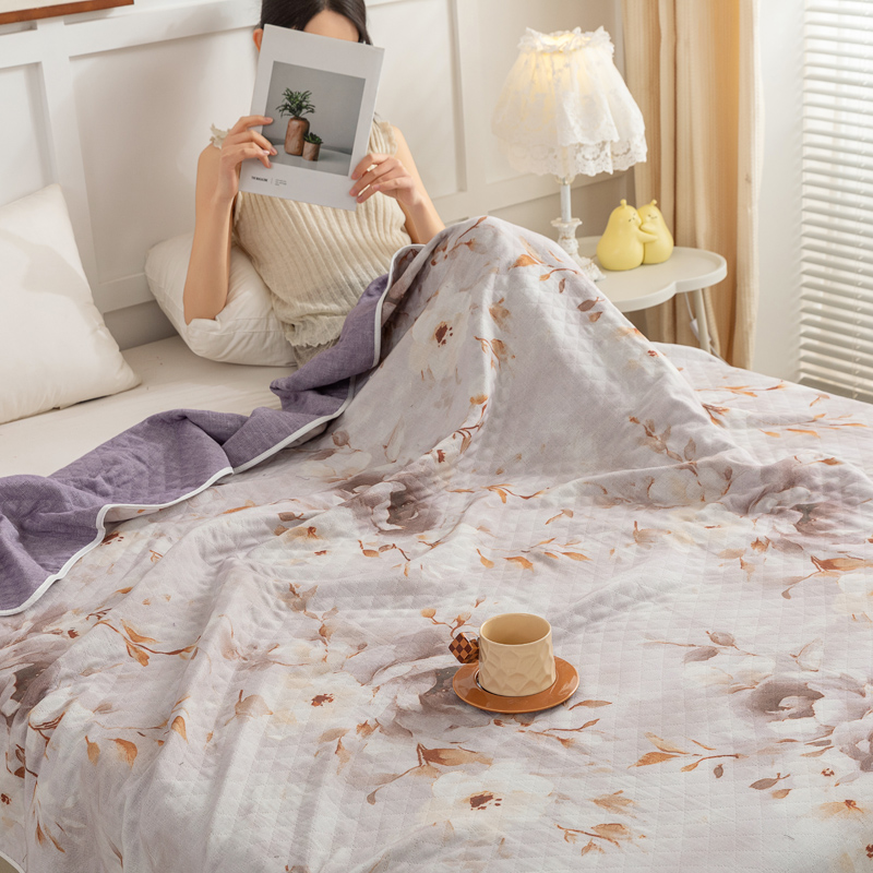 商品名称:乐家毛巾被(工厂自产自销) 2025新款A类全棉六层纱印花毛巾被 吴丹花开