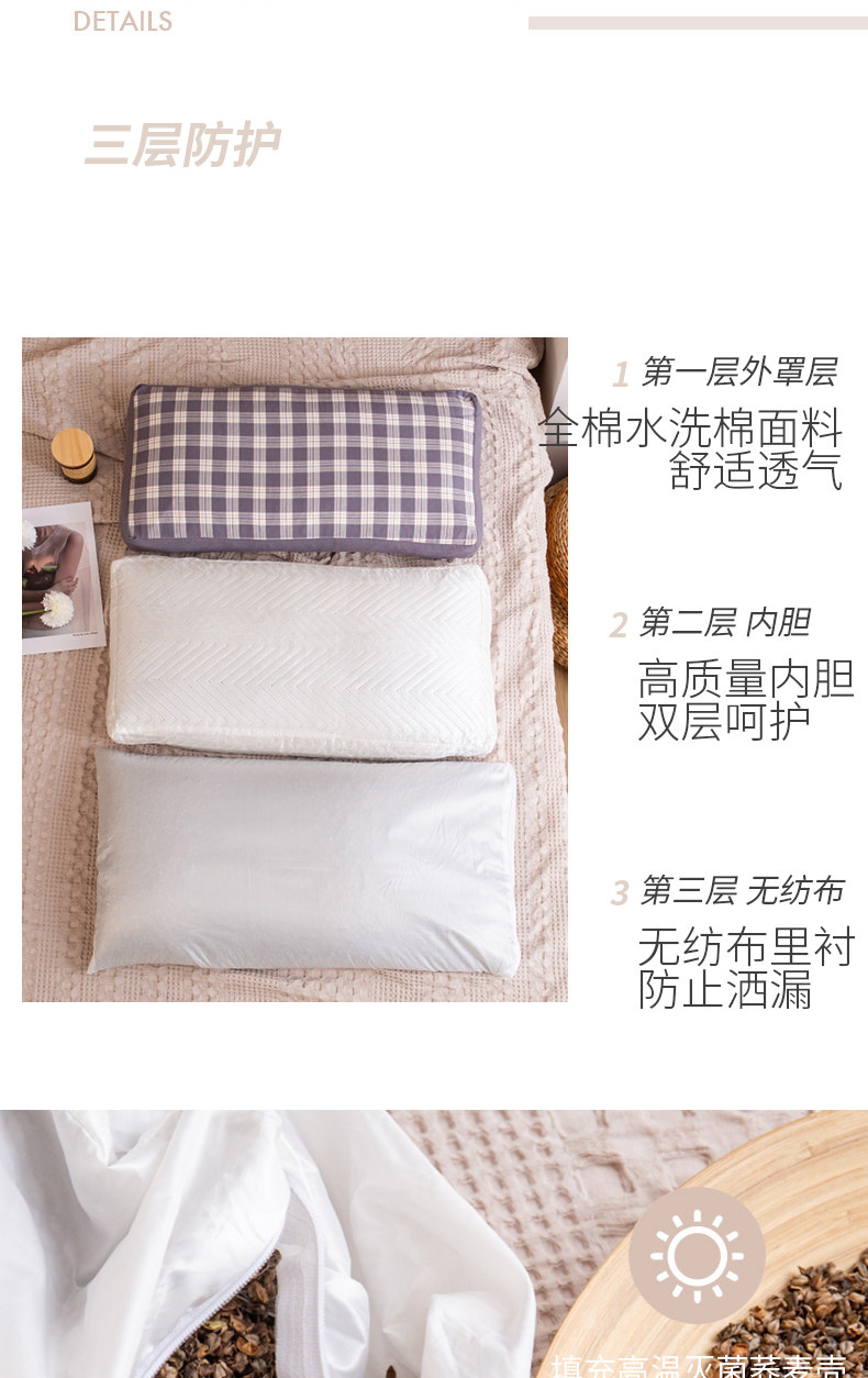 (总)明星枕业 2025新款棉麻荞麦枕高度可调节护颈椎枕头学生成人专用硬枕芯单枕芯,初秋花园 30x60cm单枕/只,梦想庄园 30x60cm单枕/只,组合图仅供展示 30x60cm单枕/只