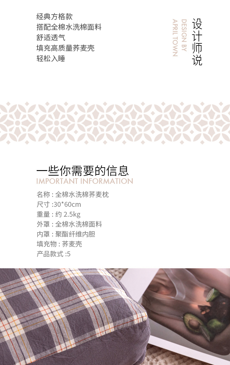 商品名称:(总)明星枕业 2025新款水洗棉格子长方枕荞麦枕