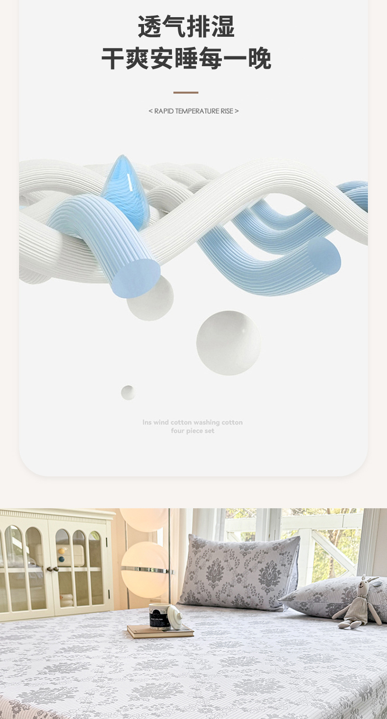 • 91家纺网 家纺一手货源 找家纺 韩巢家纺 2025新款全棉纯棉田园小清新花卉老粗布席子凉席夏季凉席席子床笠款床套 花开富贵-灰