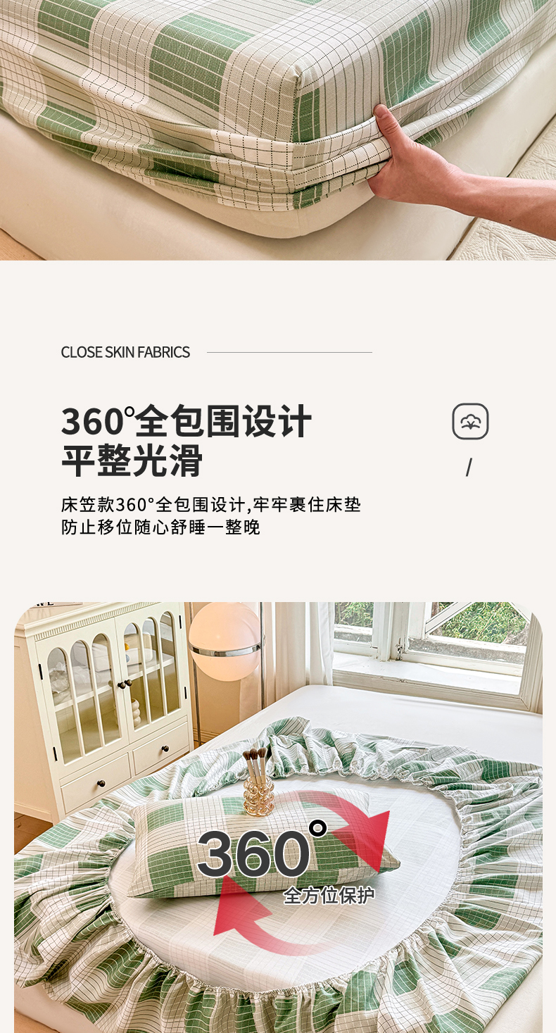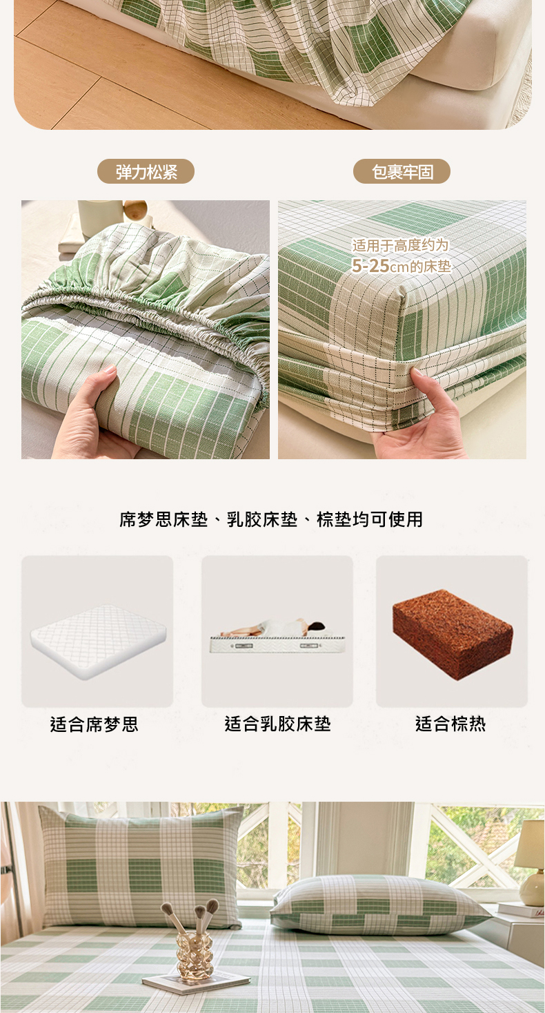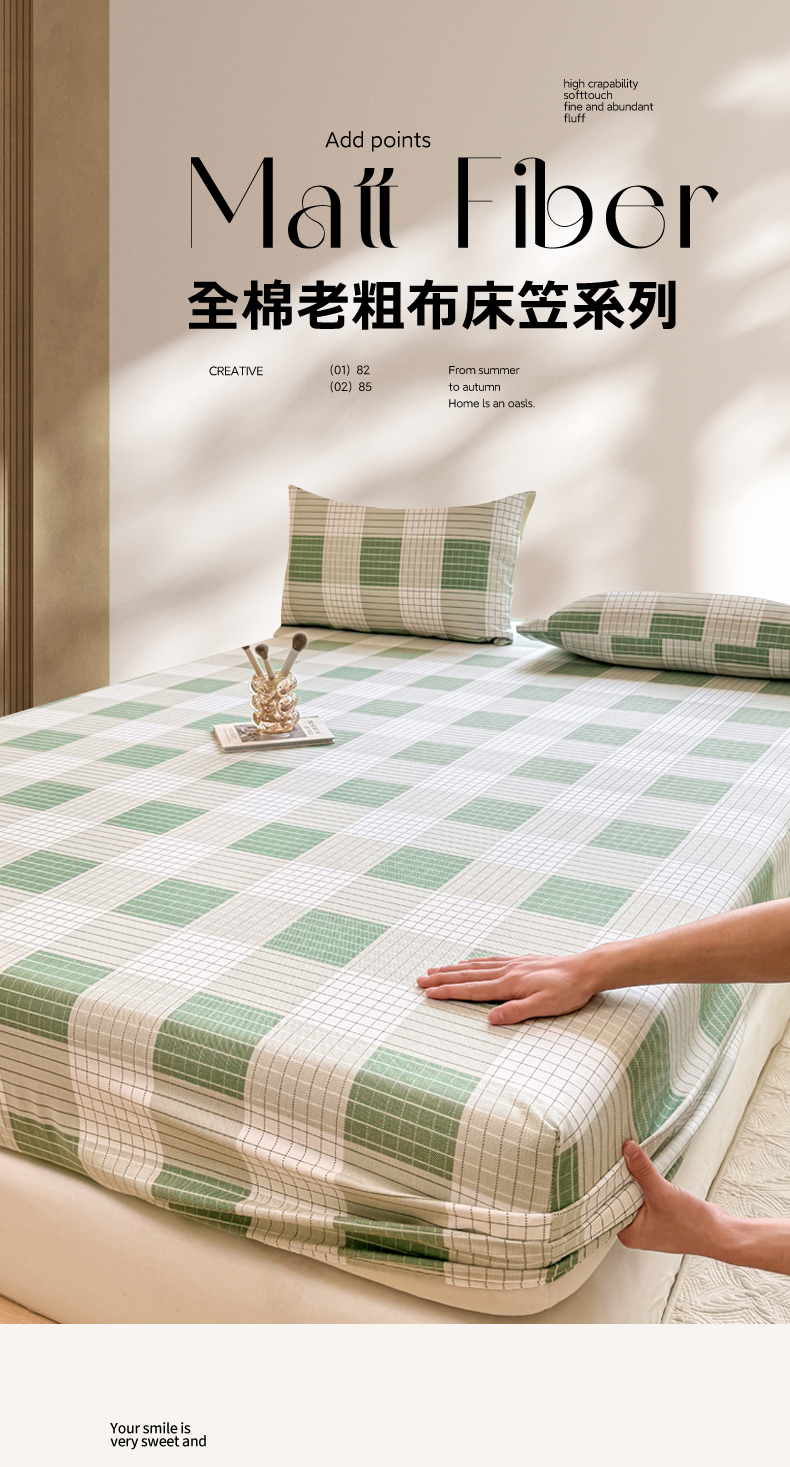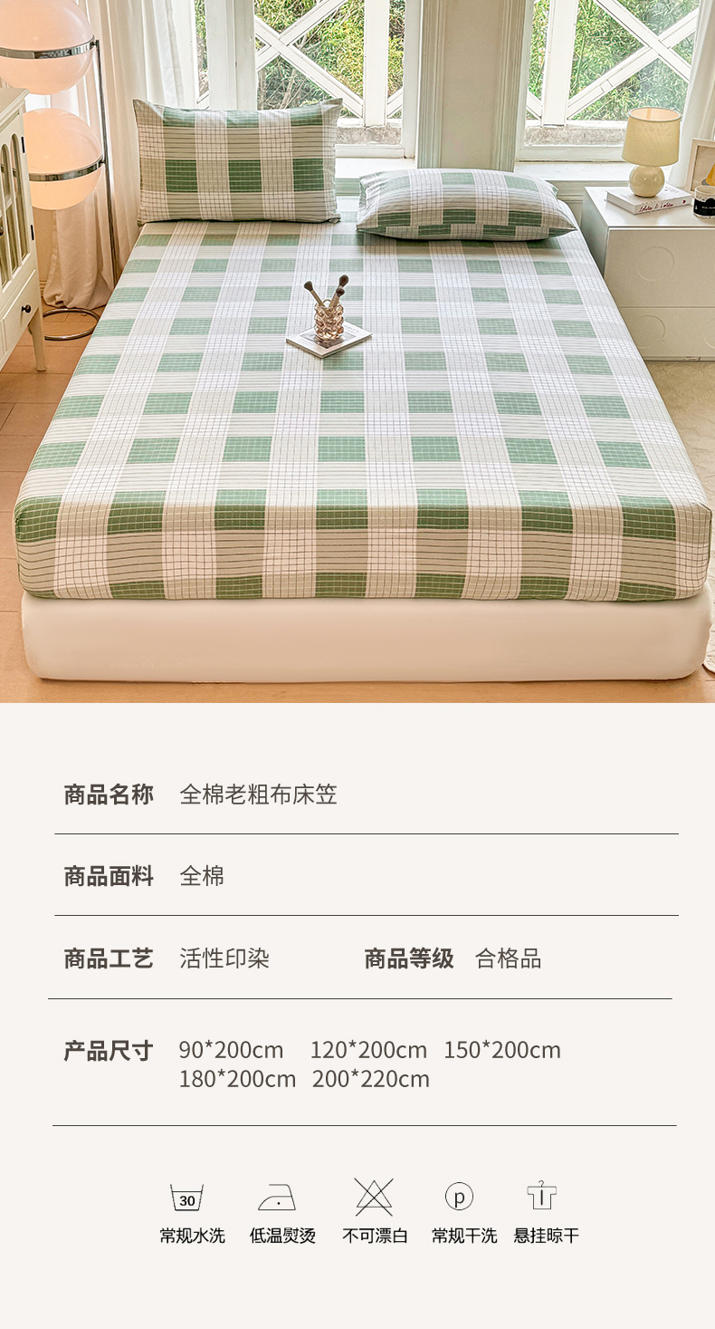 • 91家纺网 家纺一手货源 找家纺 韩巢家纺 2025新款全棉纯棉田园小清新花卉老粗布席子凉席夏季凉席席子床笠款床套 休闲生活-绿