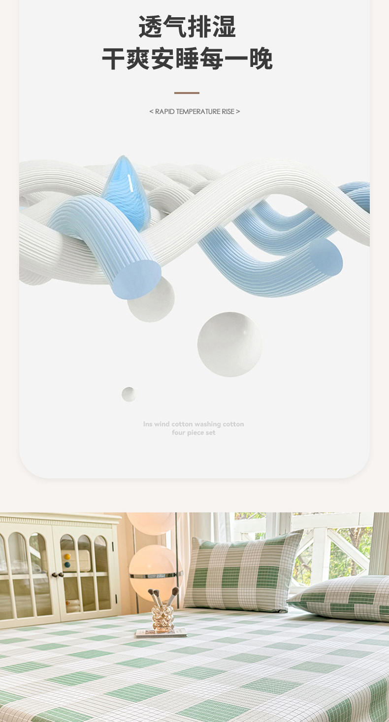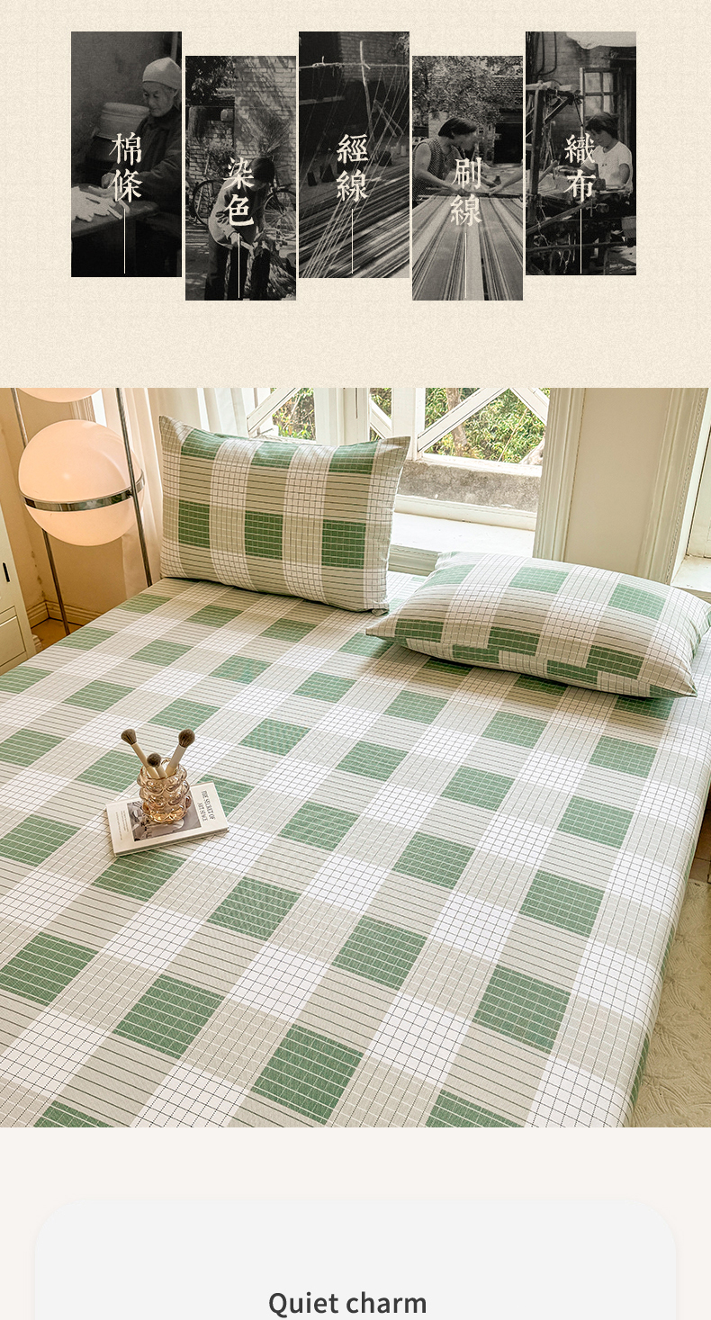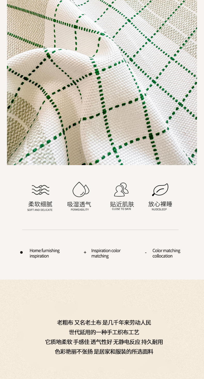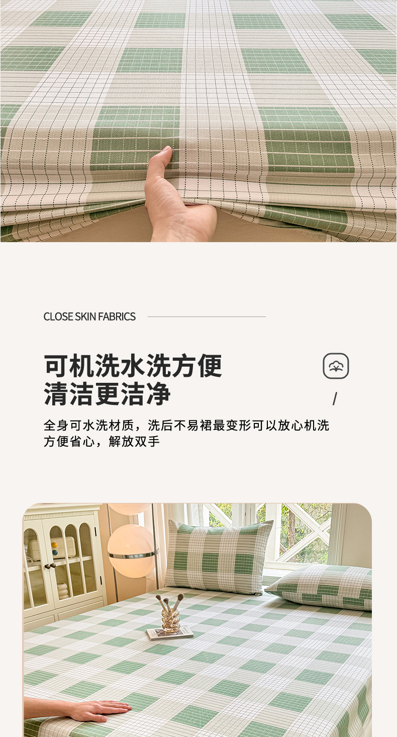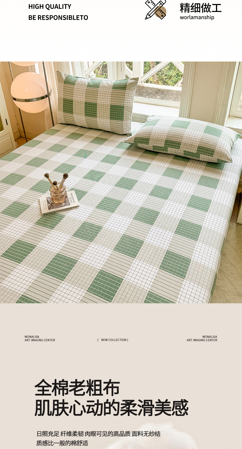 • 91家纺网 家纺一手货源 找家纺 韩巢家纺 2025新款全棉纯棉田园小清新花卉老粗布席子凉席夏季凉席席子床笠款床套 休闲生活-绿