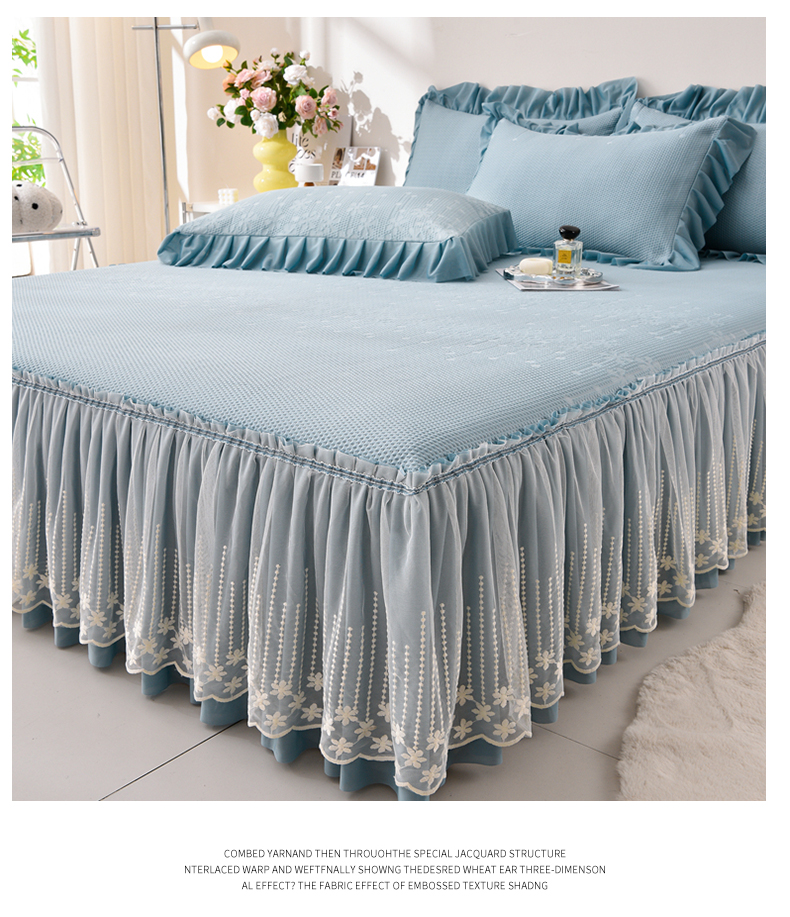 商品名称:铠畅家纺 2025新款凉感豆豆床裙夏被四件套--幸运草 幸运花-宾利兰