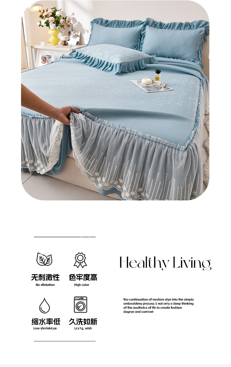 铠畅家纺 2025新款凉感豆豆床裙夏被四件套--幸运草 幸运花-宾利兰