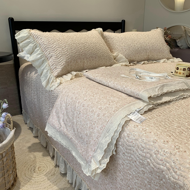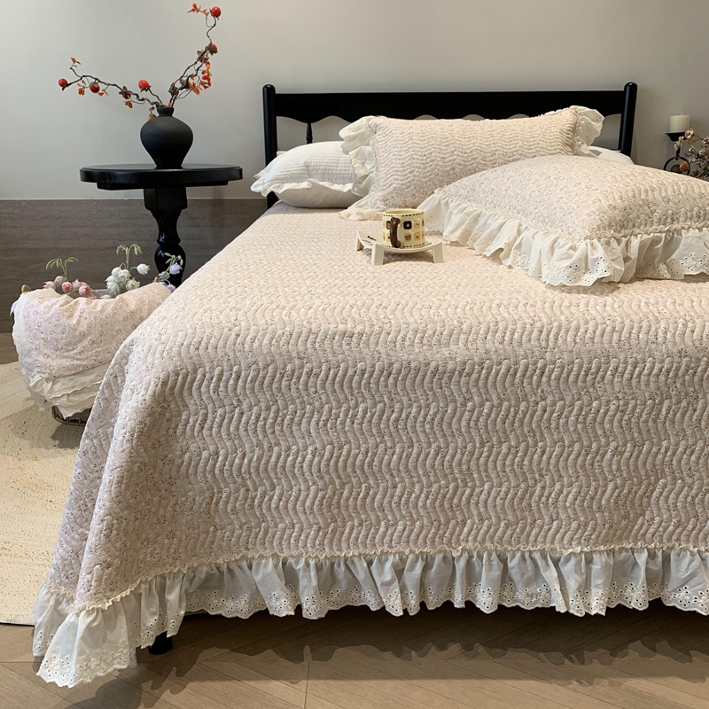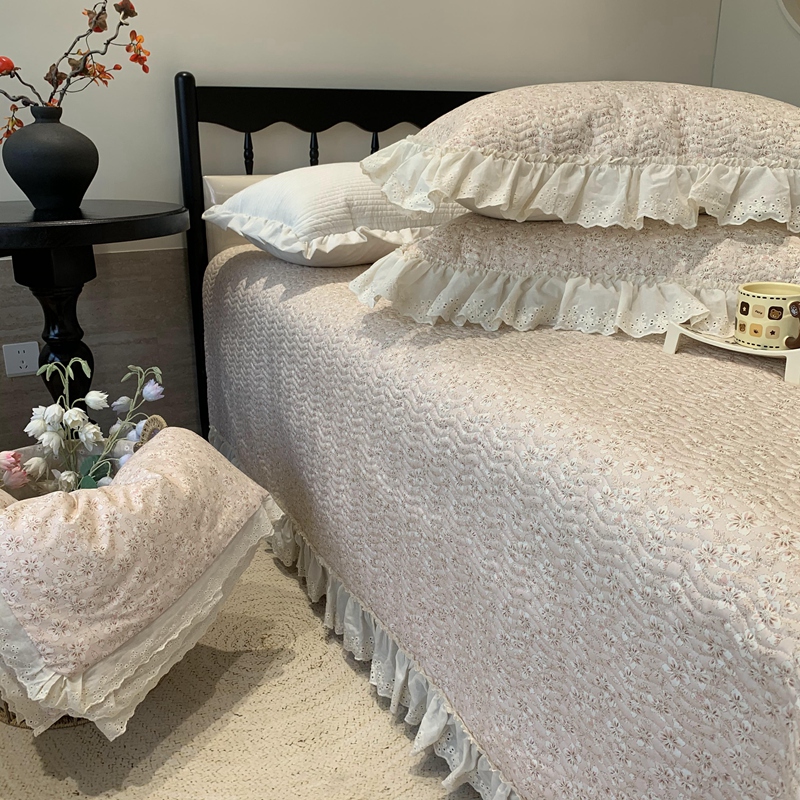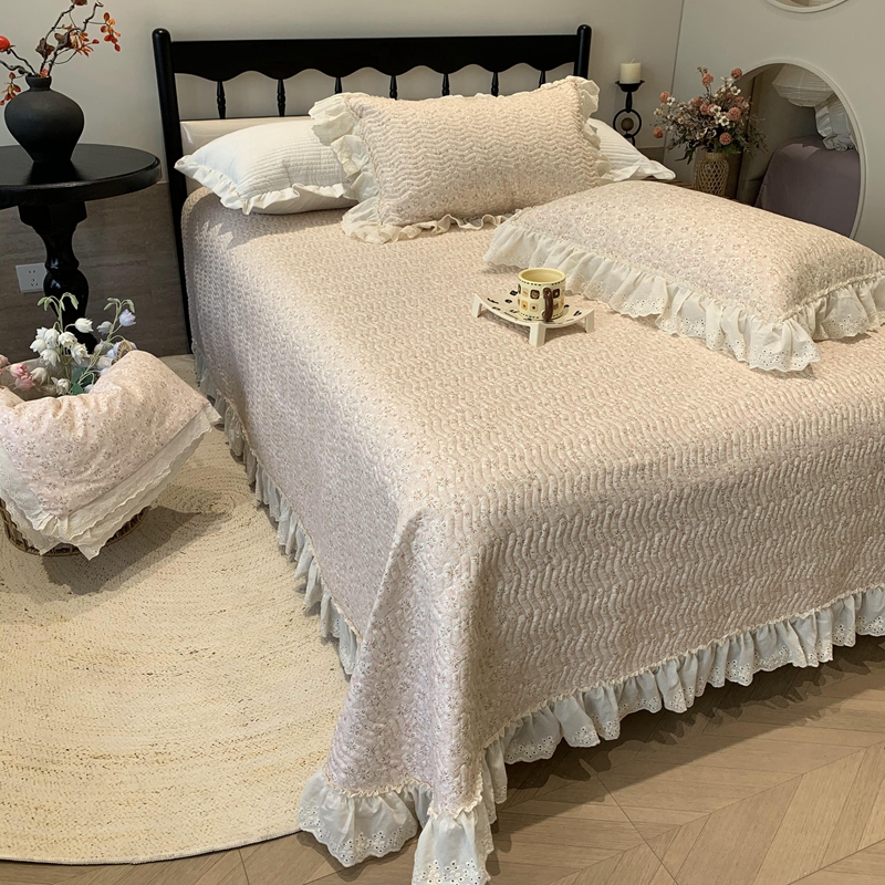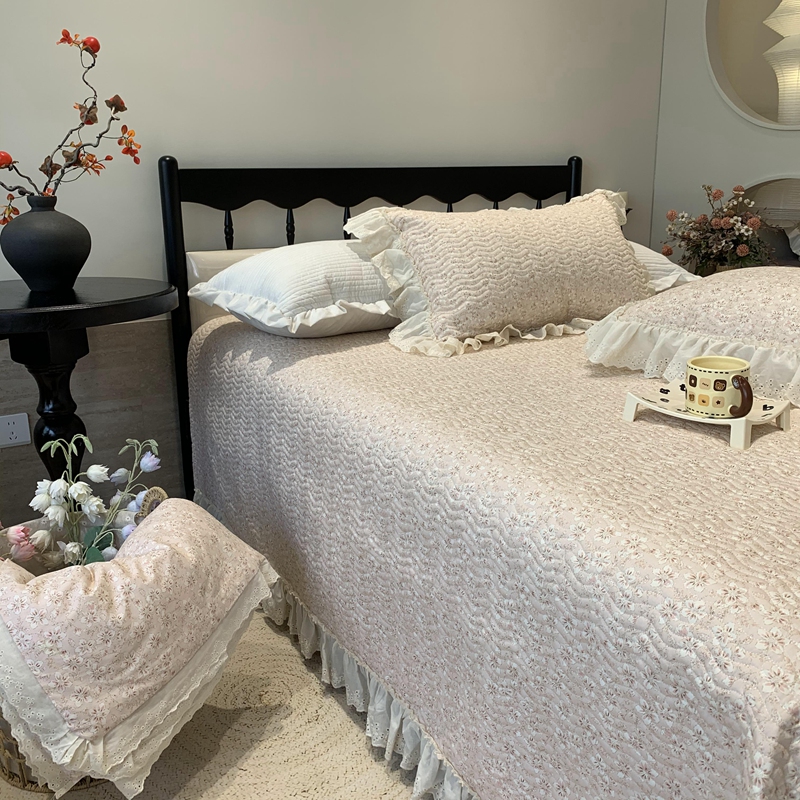 奈萝家纺 2025春夏新款全棉纯棉蕾丝花边款床盖三件套 樱花