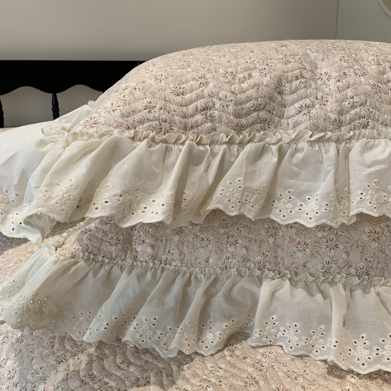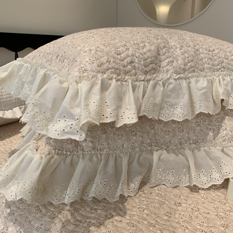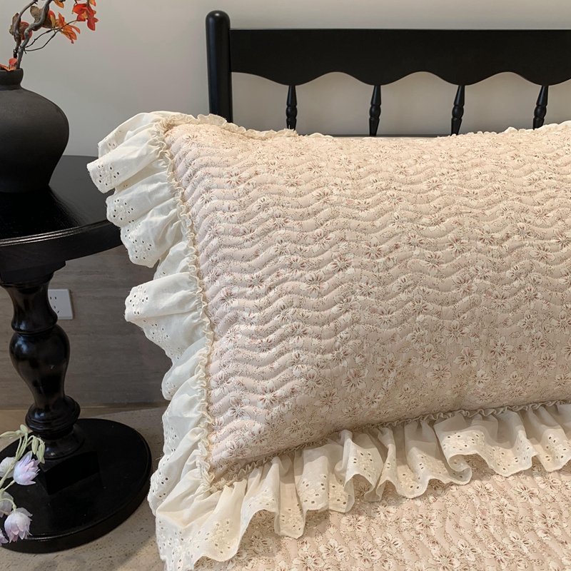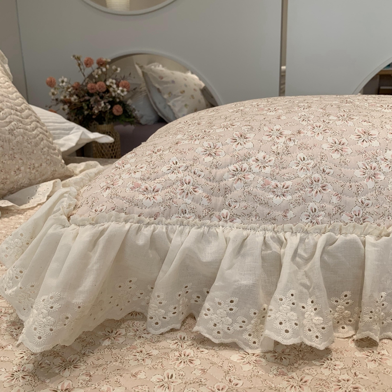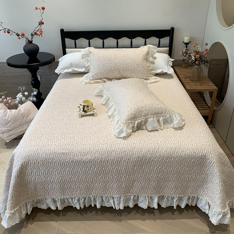 奈萝家纺 2025春夏新款全棉纯棉蕾丝花边款床盖三件套 樱花