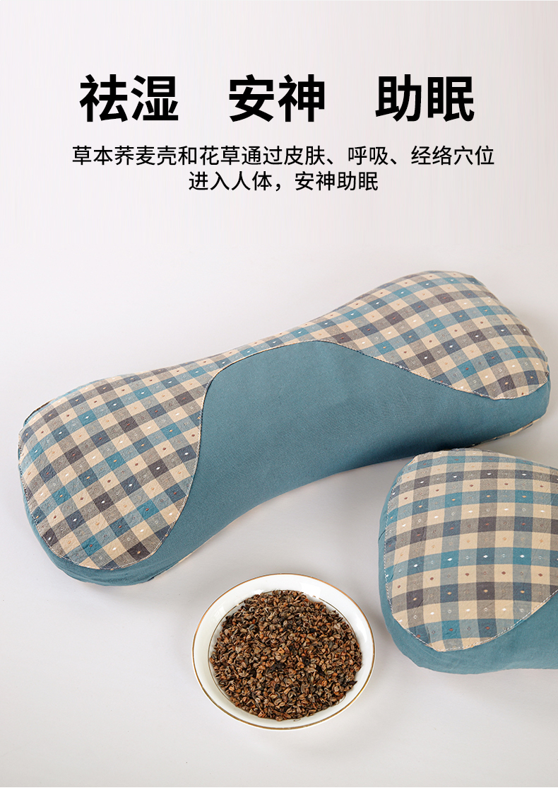 骨头枕雾蓝50*20+8+-2cm【12味花草+荞麦壳】
