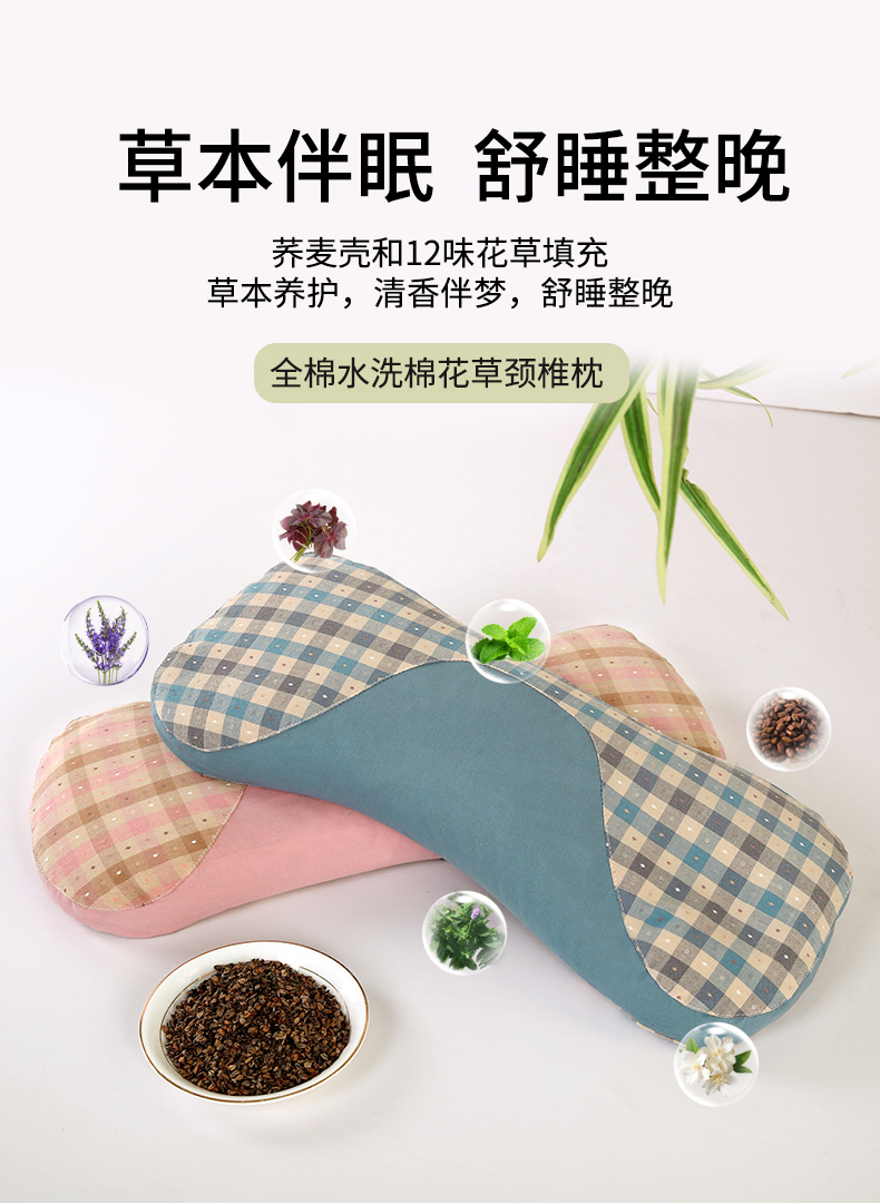 商品名称:(总)明星枕业 2025新款全棉荞麦颈椎枕头睡眠花草枕纯荞麦壳护颈枕芯可拆洗