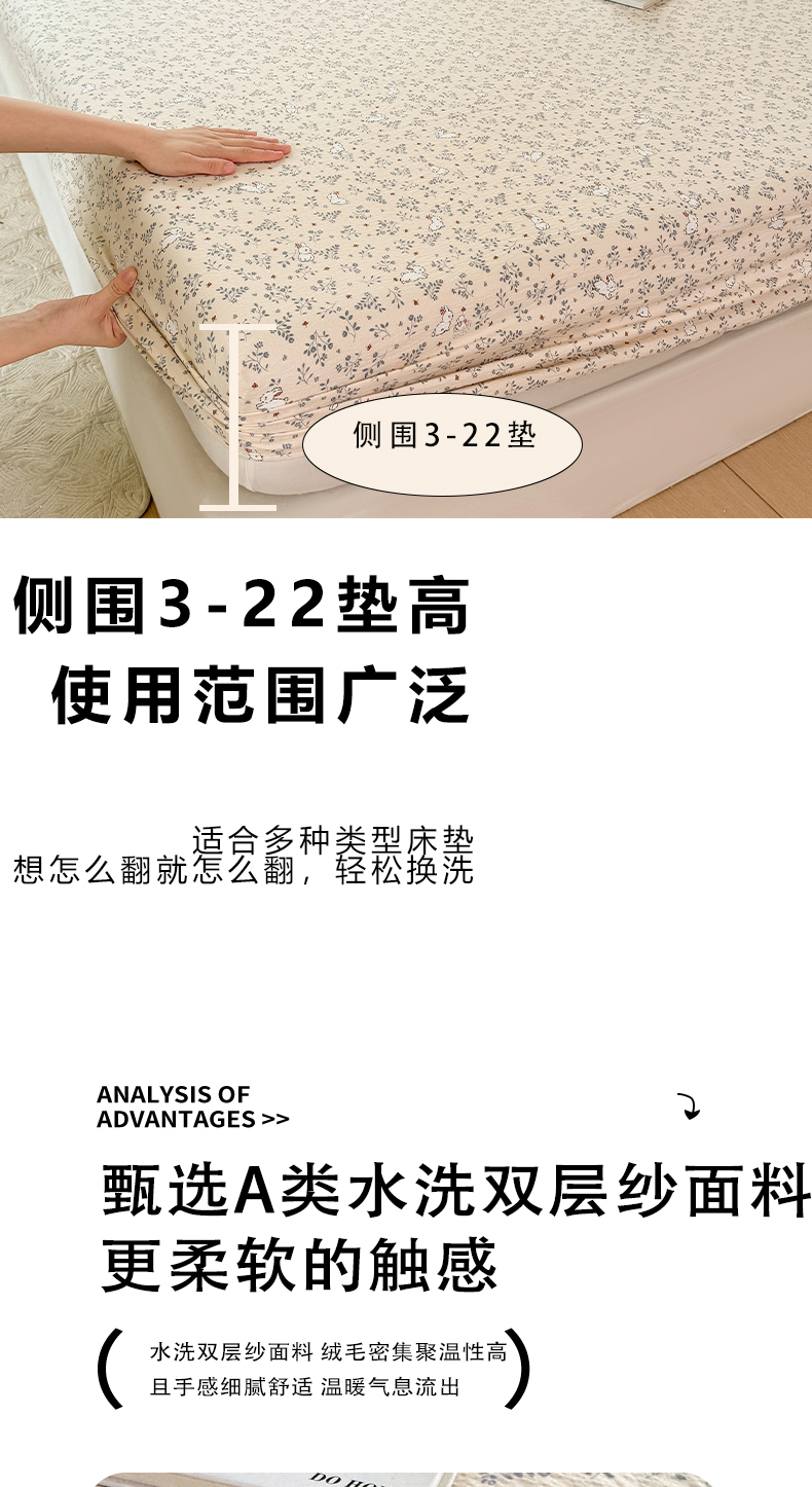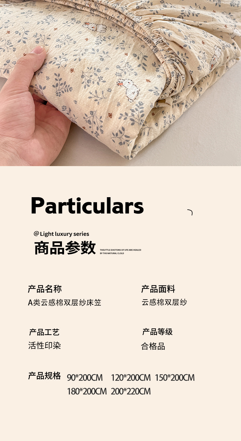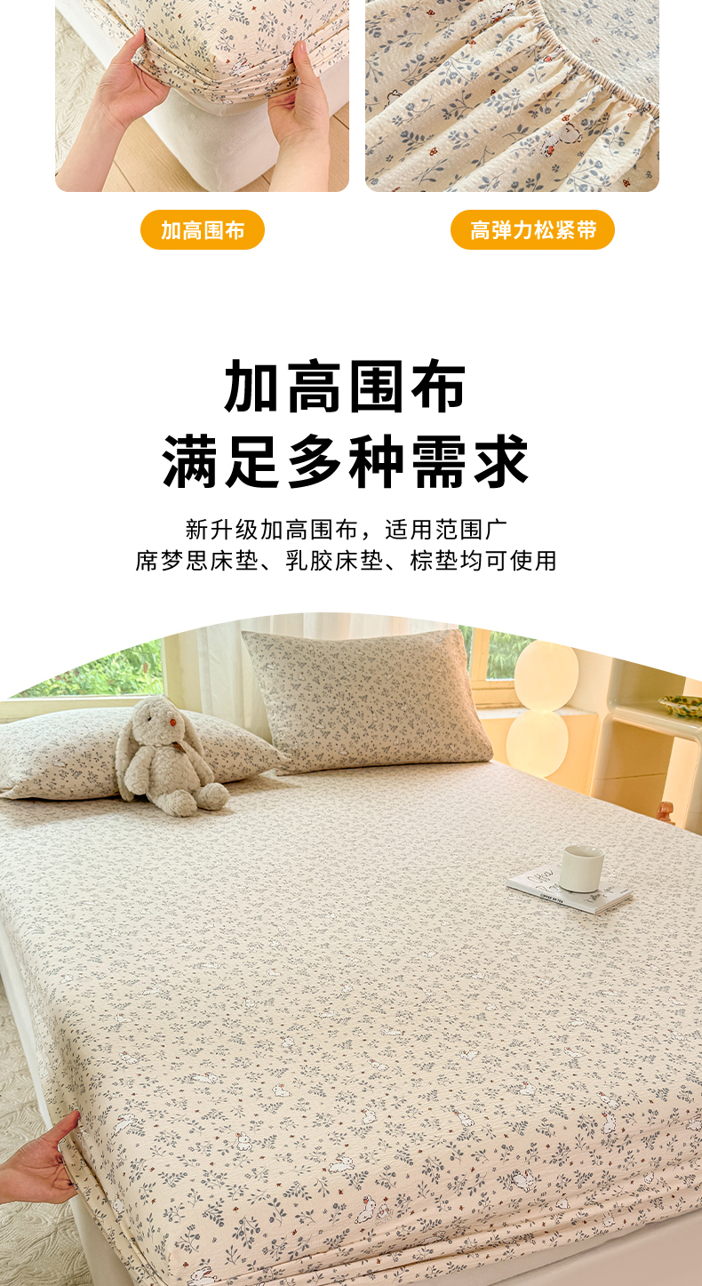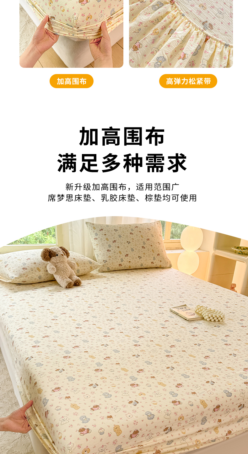 商品名称:仟网汇 2025新款云感棉双层纱床笠 彩波点