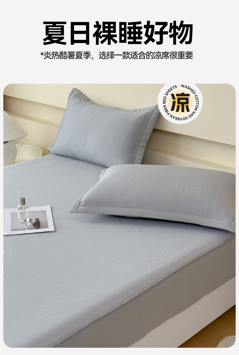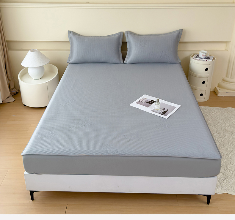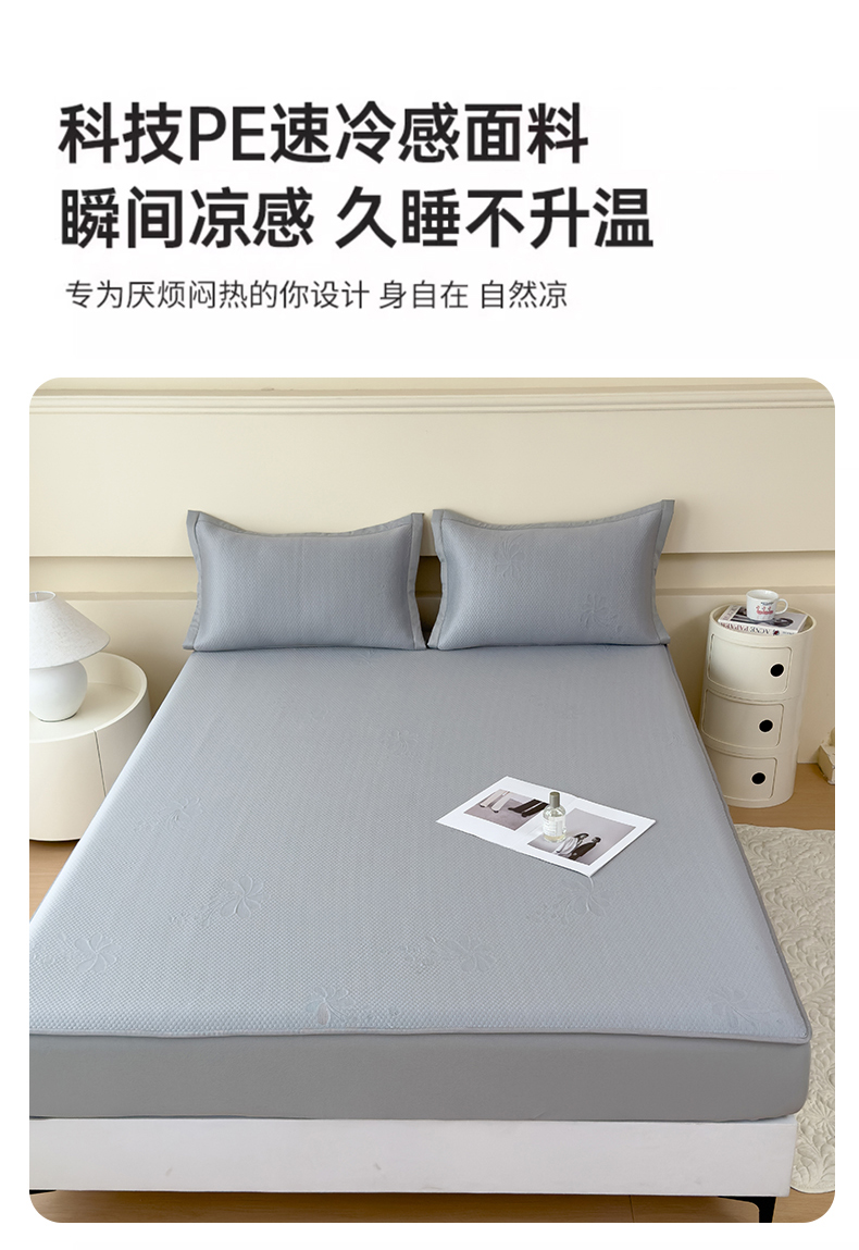 瑞兴纺 2025新款高分子PE软凉席绣花款床笠款 床笠款-花之语-灰